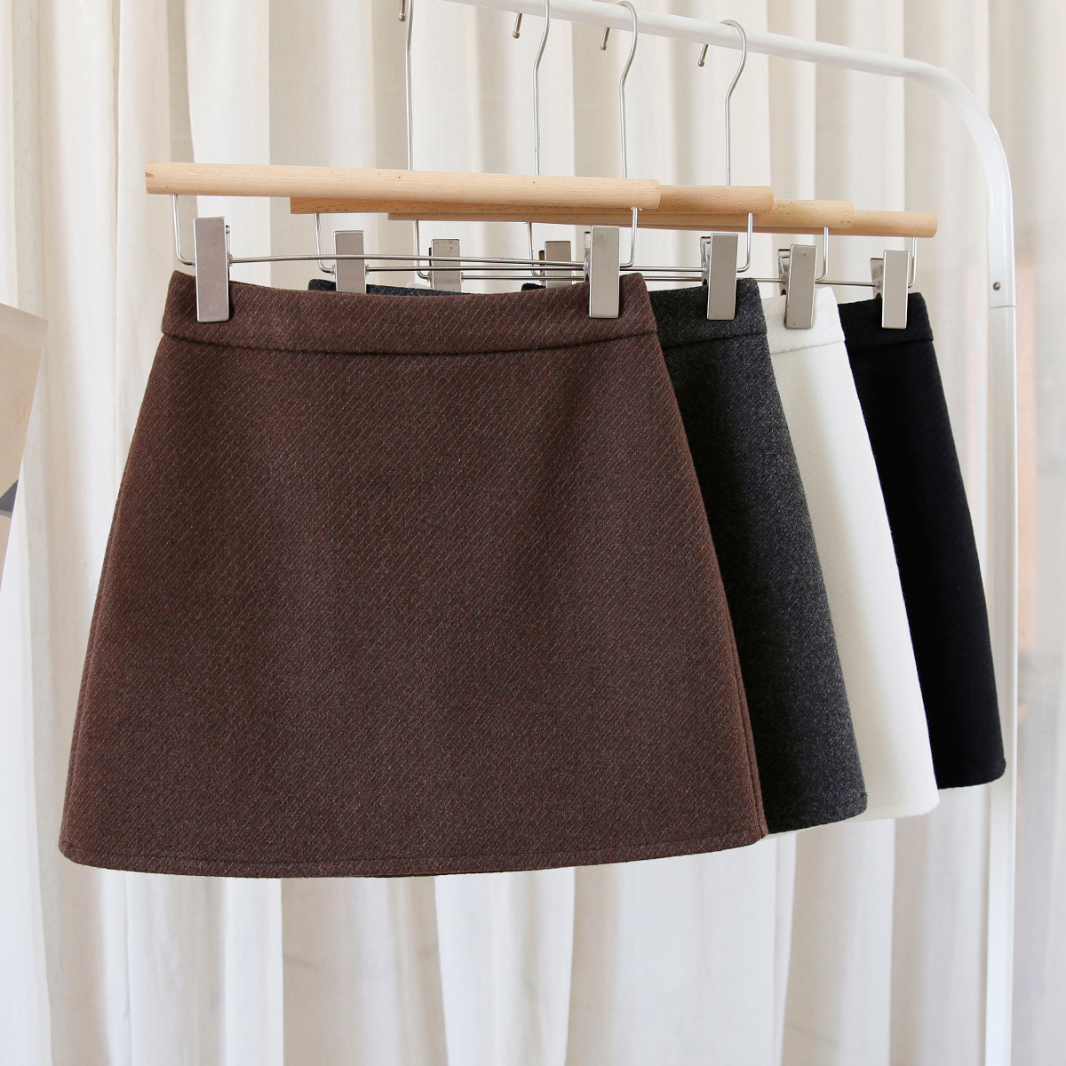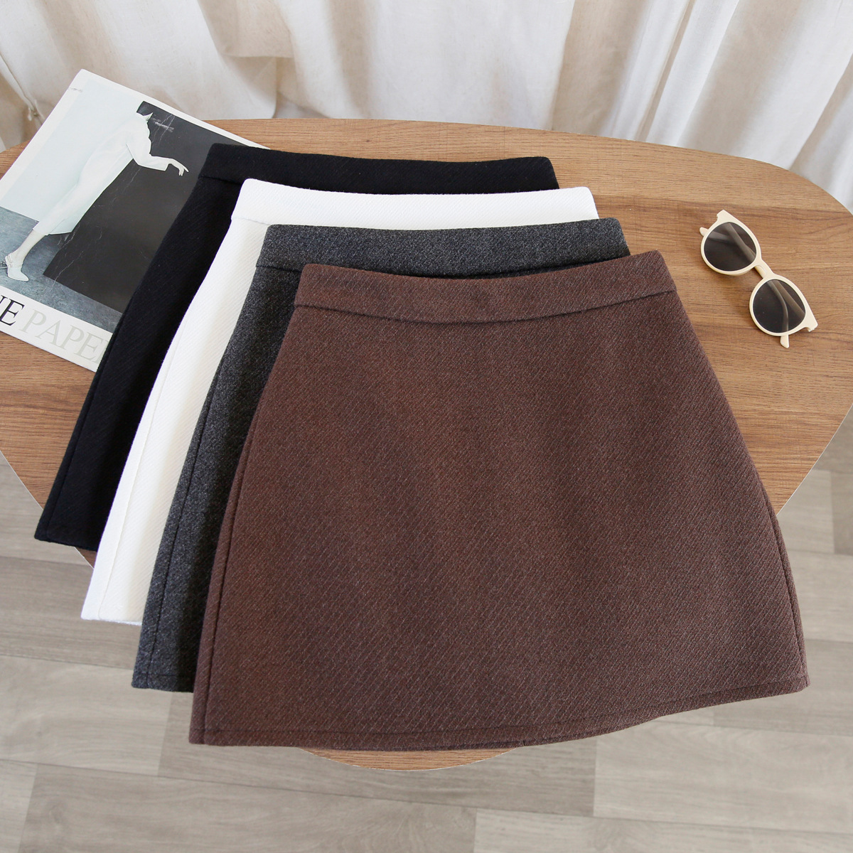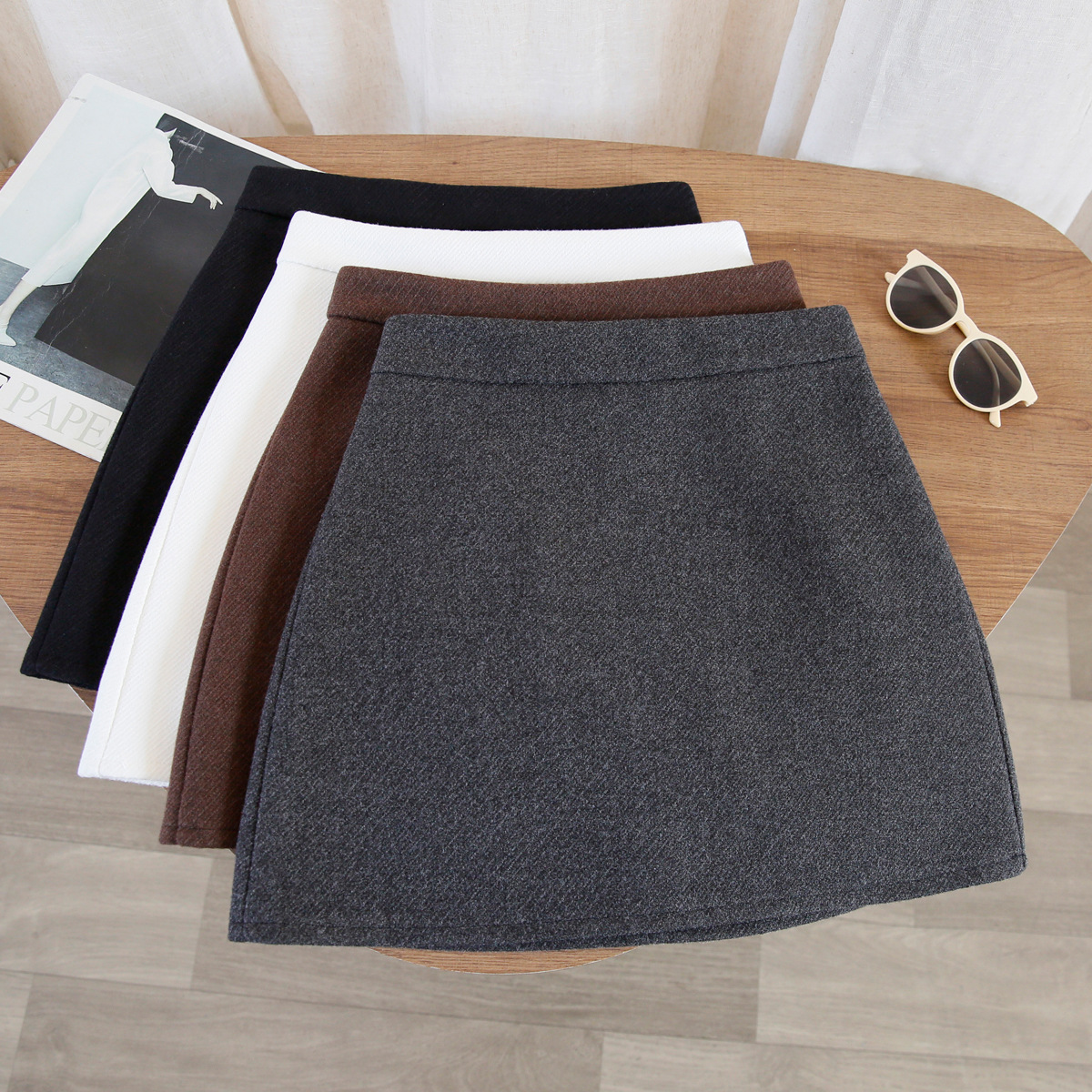 Тонкая юбка-юбка из шерсти шерстяная юбка женская осень-зима короткая юбка 2024 новая юбка с высокой талией бедра юбка юбка коричневый шрифт юбка