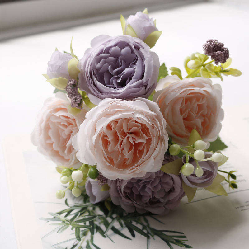 5 цветов/пучок розового + фиолетового искусственного цвета; 5 цветов/пучок белых искусственных цветов