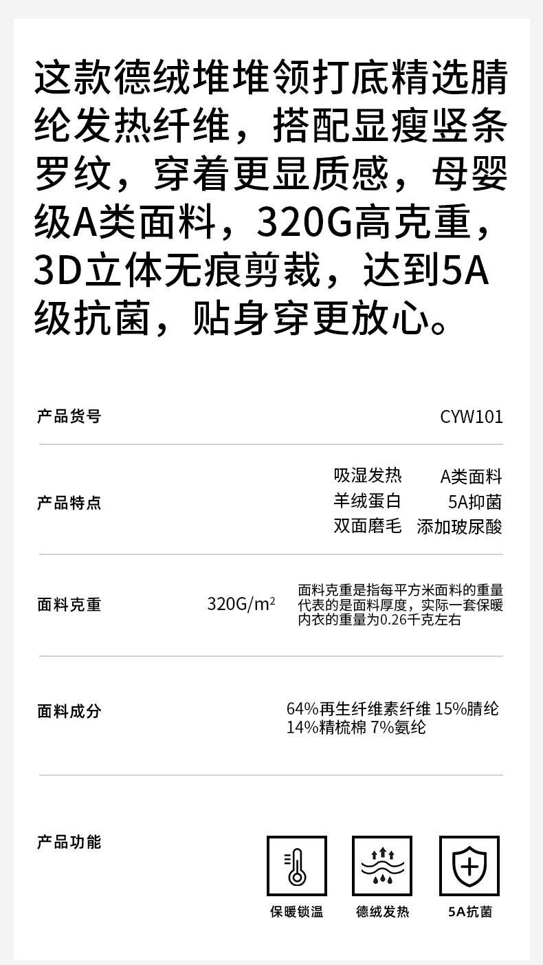 Дежурная рубашка Derong нижняя одежда для женщин высокого уровня гиалуроновая кислота класса A высокой бомбы 5A антибактериальное термобелье