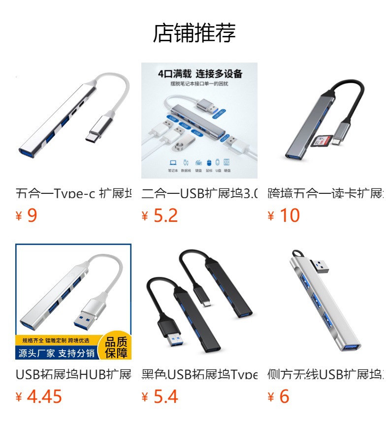 接口形式:Type-C 转 1XUSB3.0+3XUSB2.0