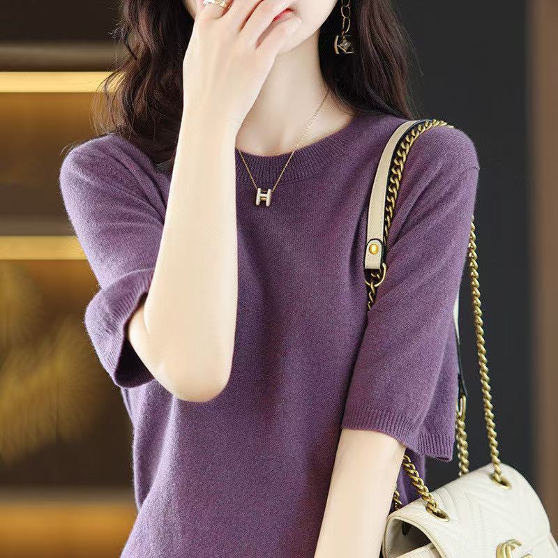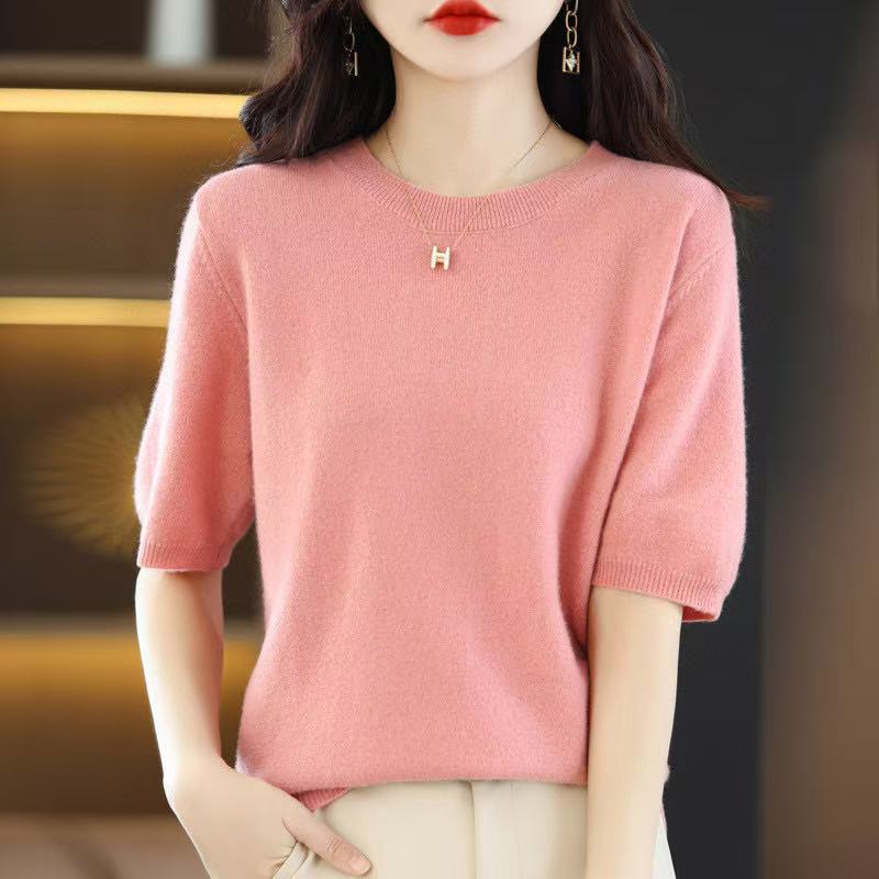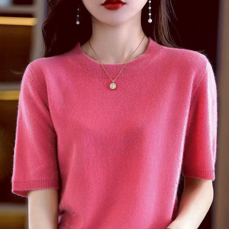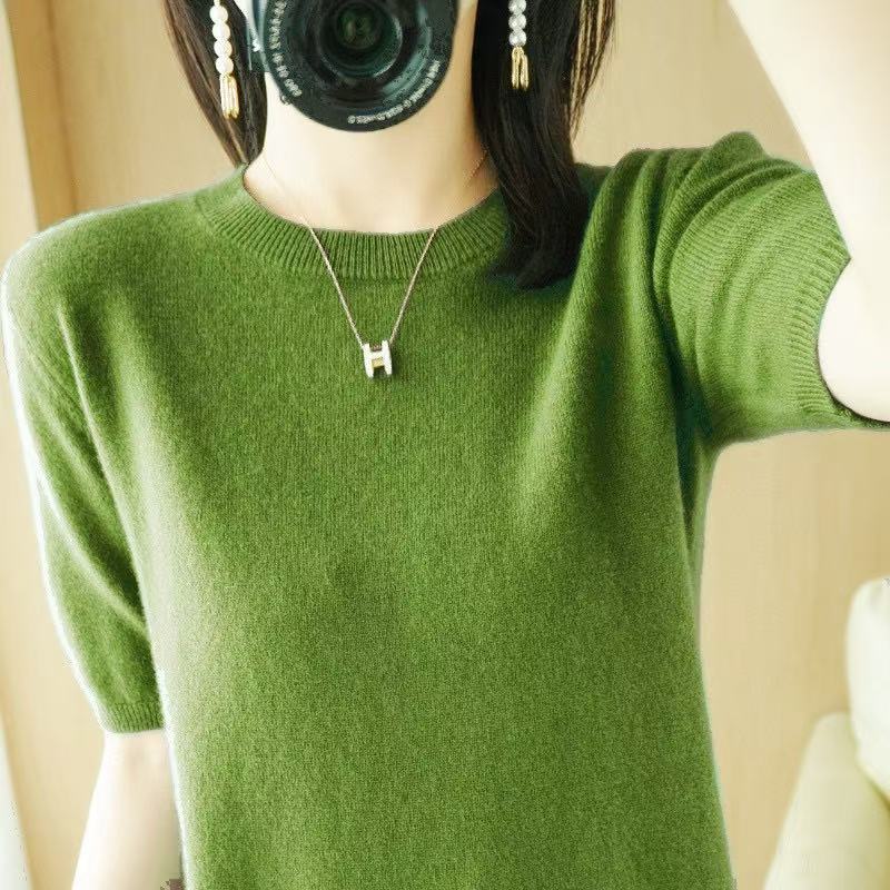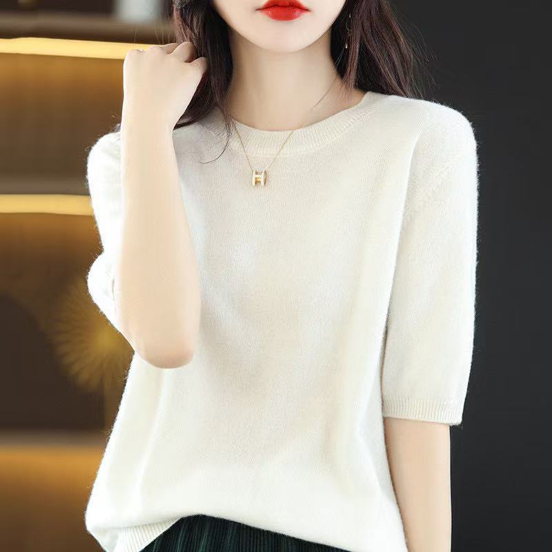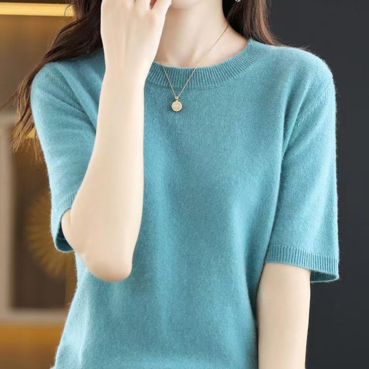 Новинка Весна/Лето 2025: Вязаный женский пуловер с круглым вырезом, короткий рукав, свободный крой, базовая модель