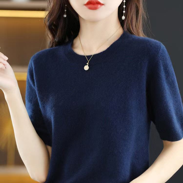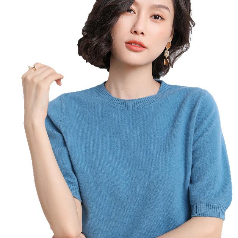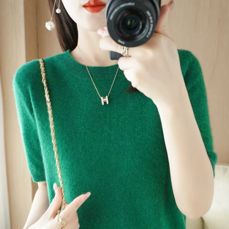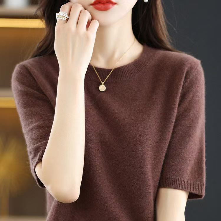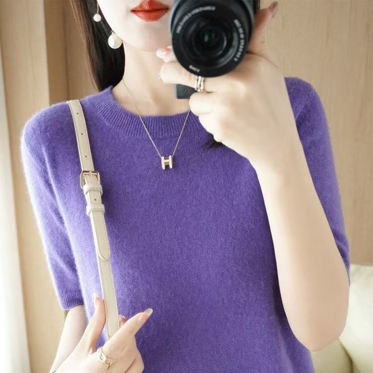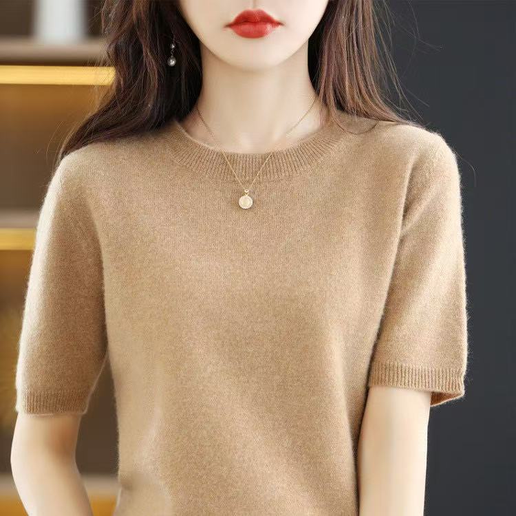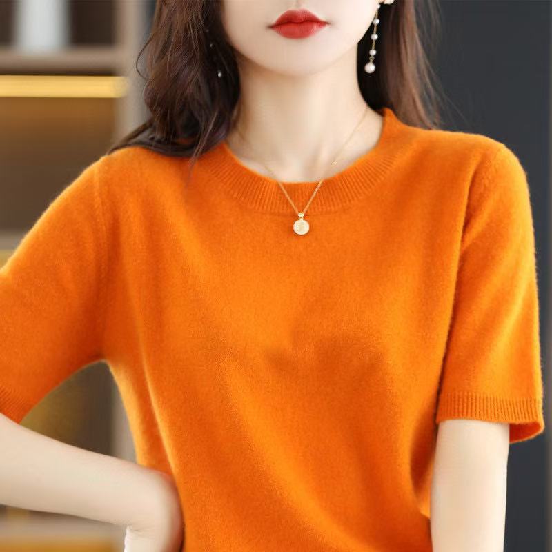 Новинка Весна/Лето 2025: Вязаный женский пуловер с круглым вырезом, короткий рукав, свободный крой, базовая модель
