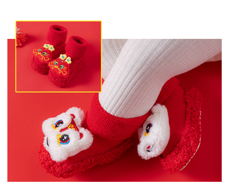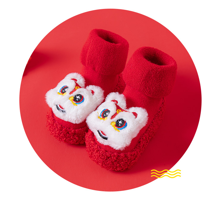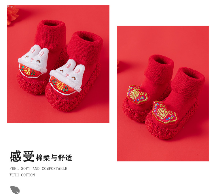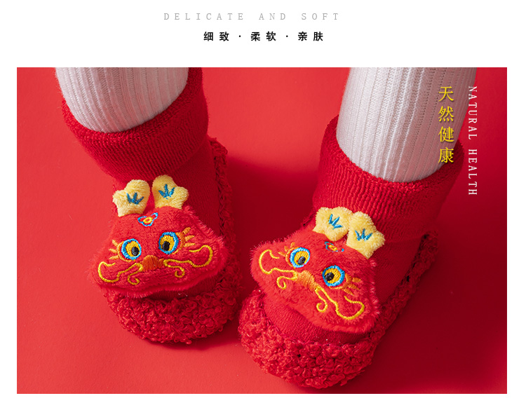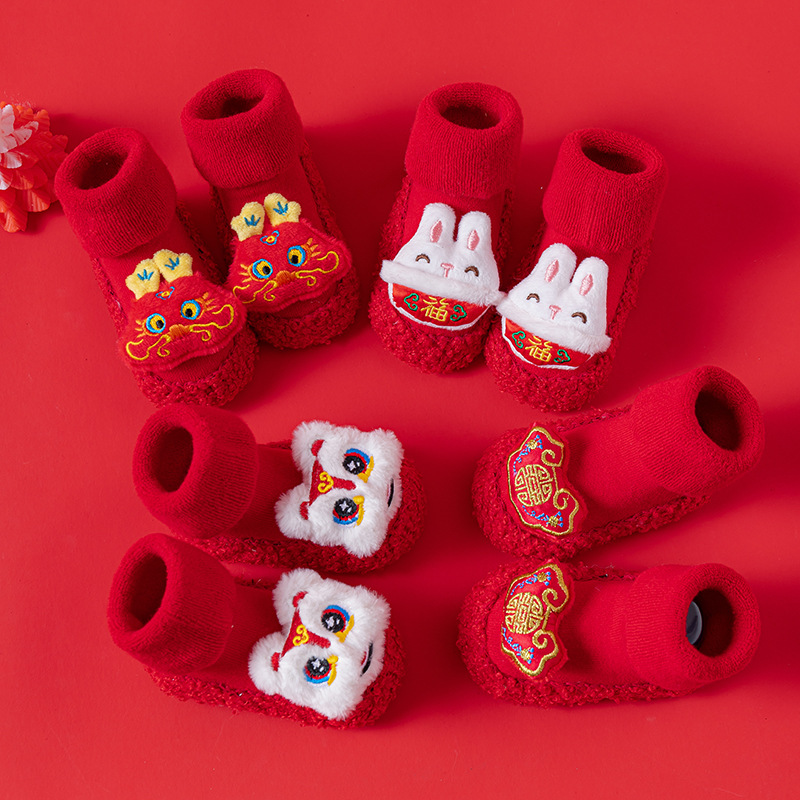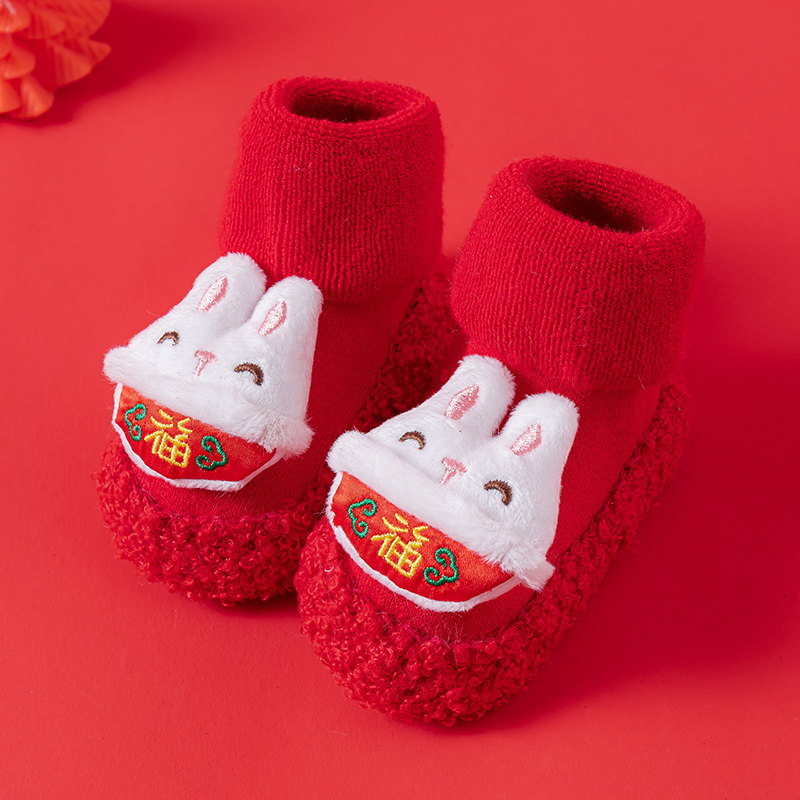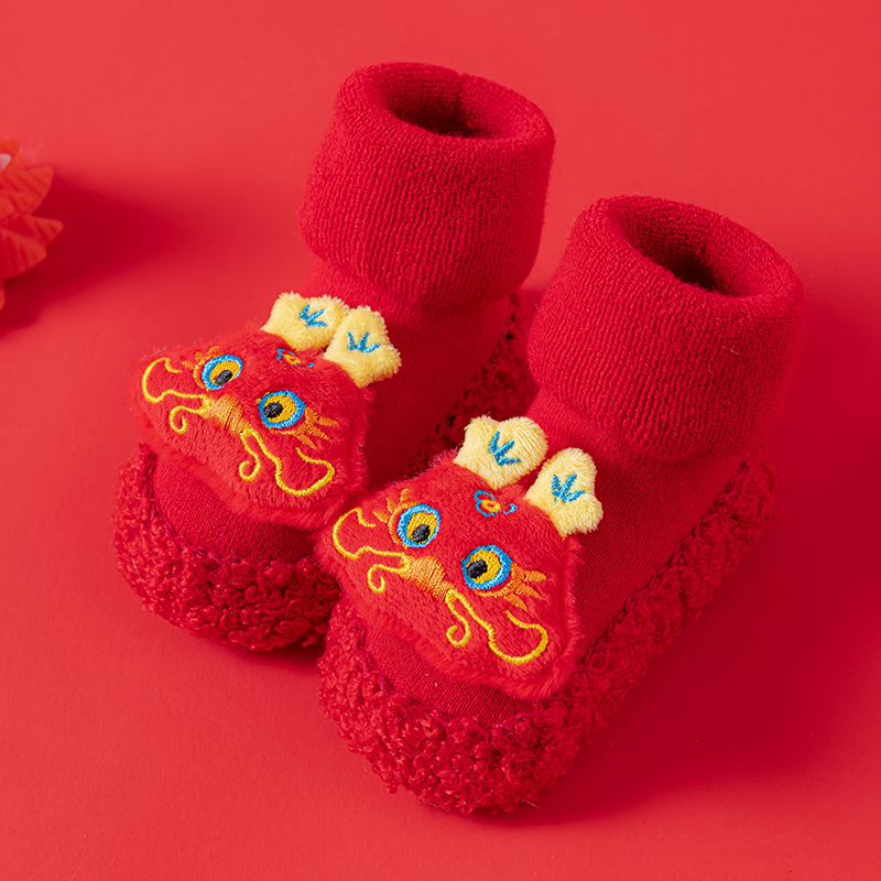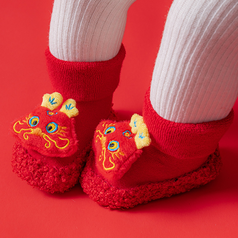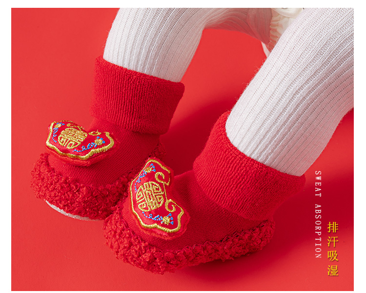 Детские напольные туфли и носки осенью и зимой толстые махры средние трубочки красные новогодние детские нескользящие мягкие напольные носки