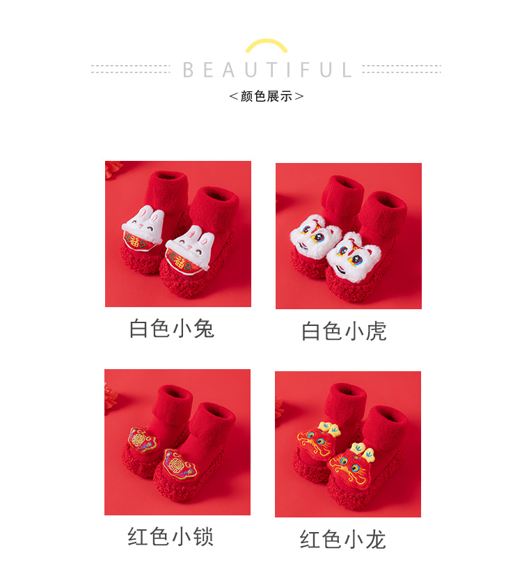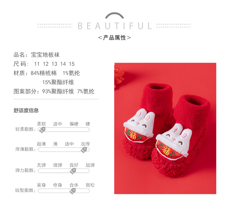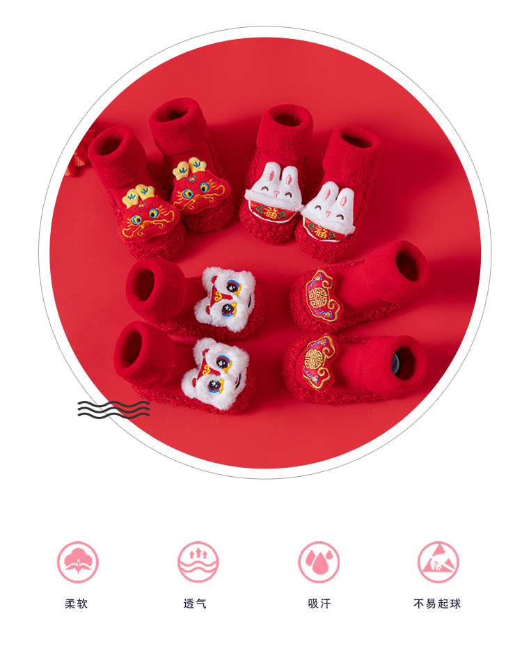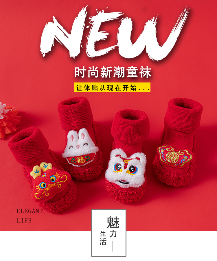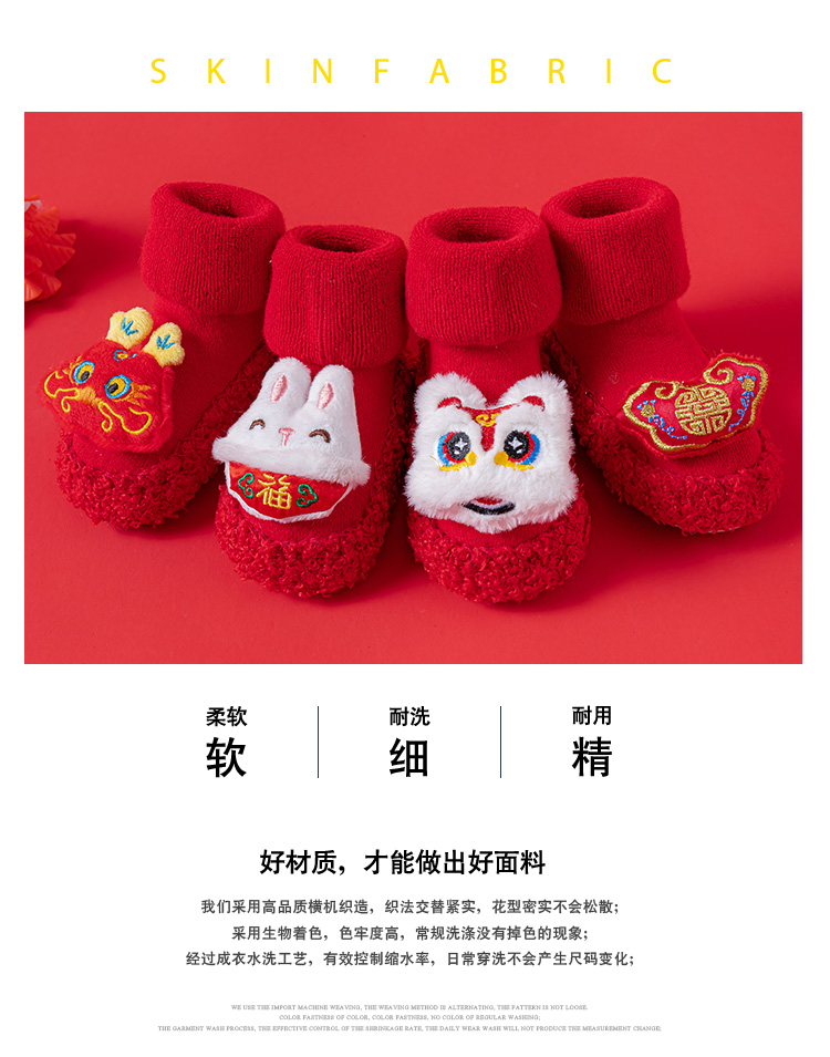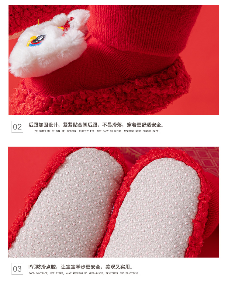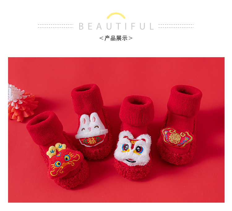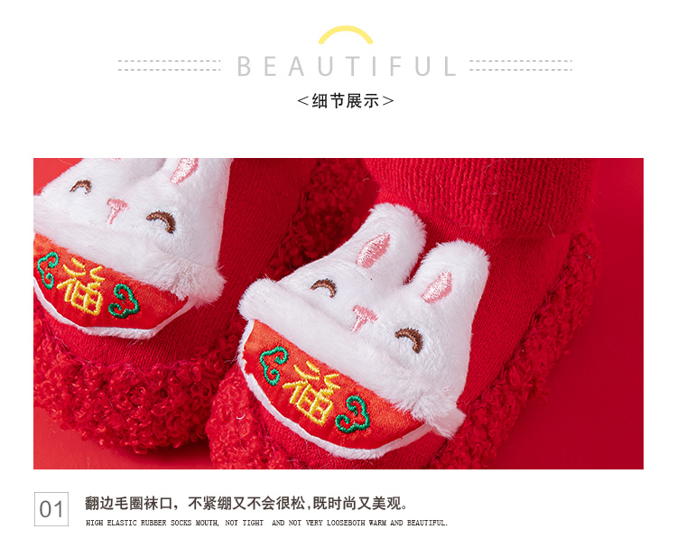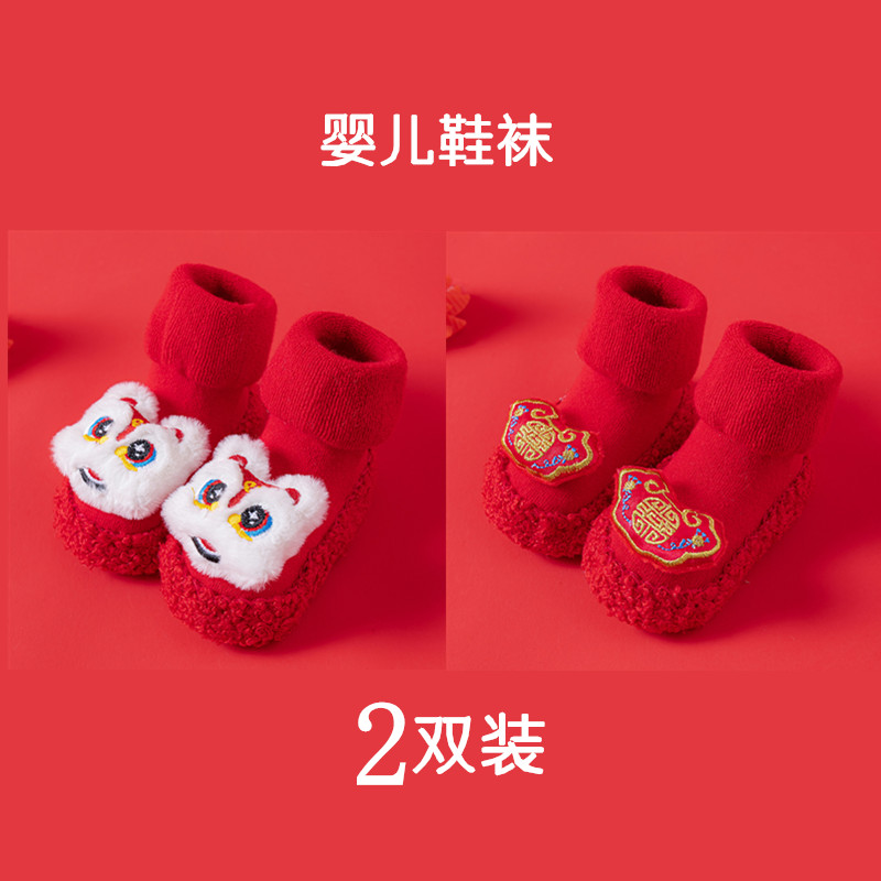 Детские напольные туфли и носки осенью и зимой толстые махры средние трубочки красные новогодние детские нескользящие мягкие напольные носки