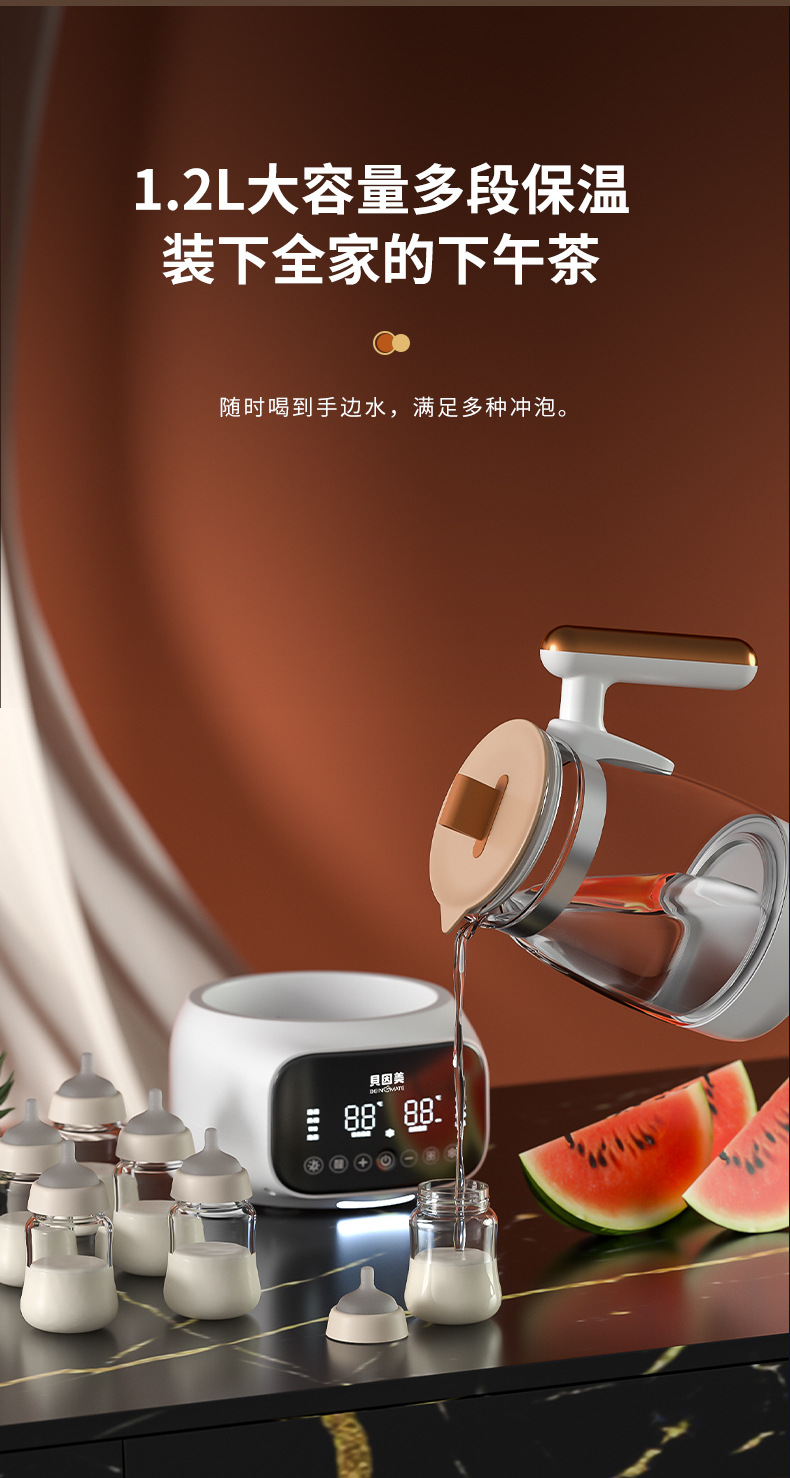 Термостатический горшок, полный стеклянный OEM-этикетка, заводская обработка, персонализированная чайница, стеклянный чайник для воды, горячая вода, теплая подача молока, умная изоляция, машина для пробивания молока, сухое молоко