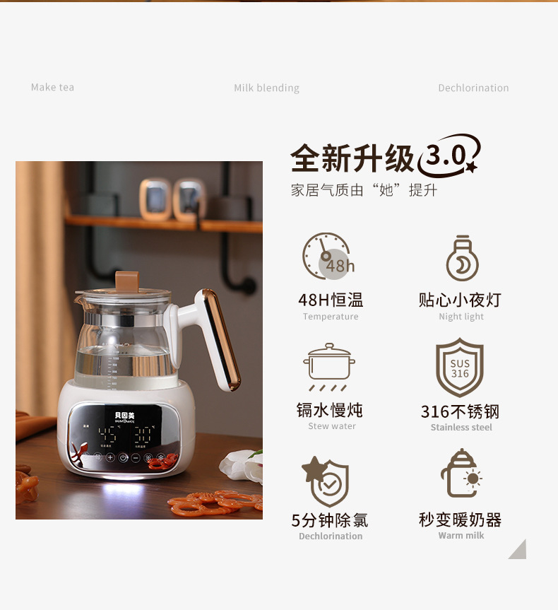 Поддержка OEM персонализированная OEM-маркировка оптом офисный чайник для здоровья чайник для воды чайник с горячей водой регулятор груди удаление кипячения хлора дезинфекция регулировка молока постоянная температура теплый чай из молочной пены