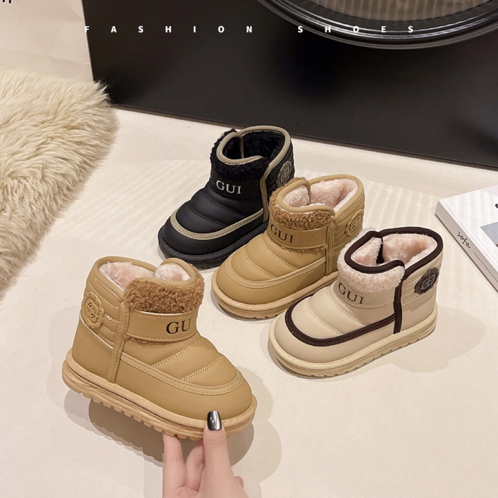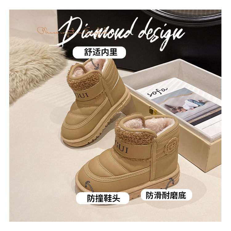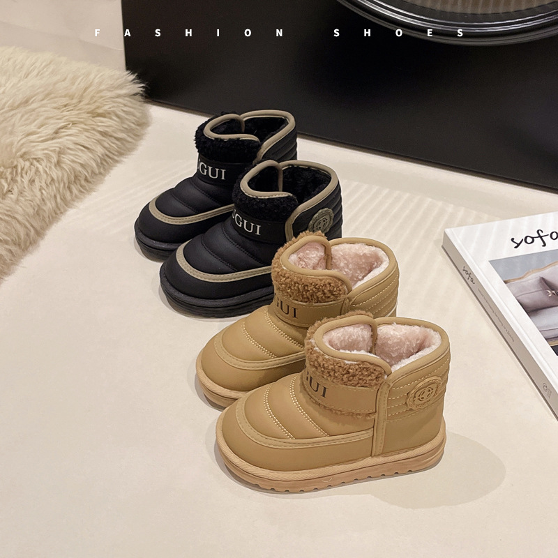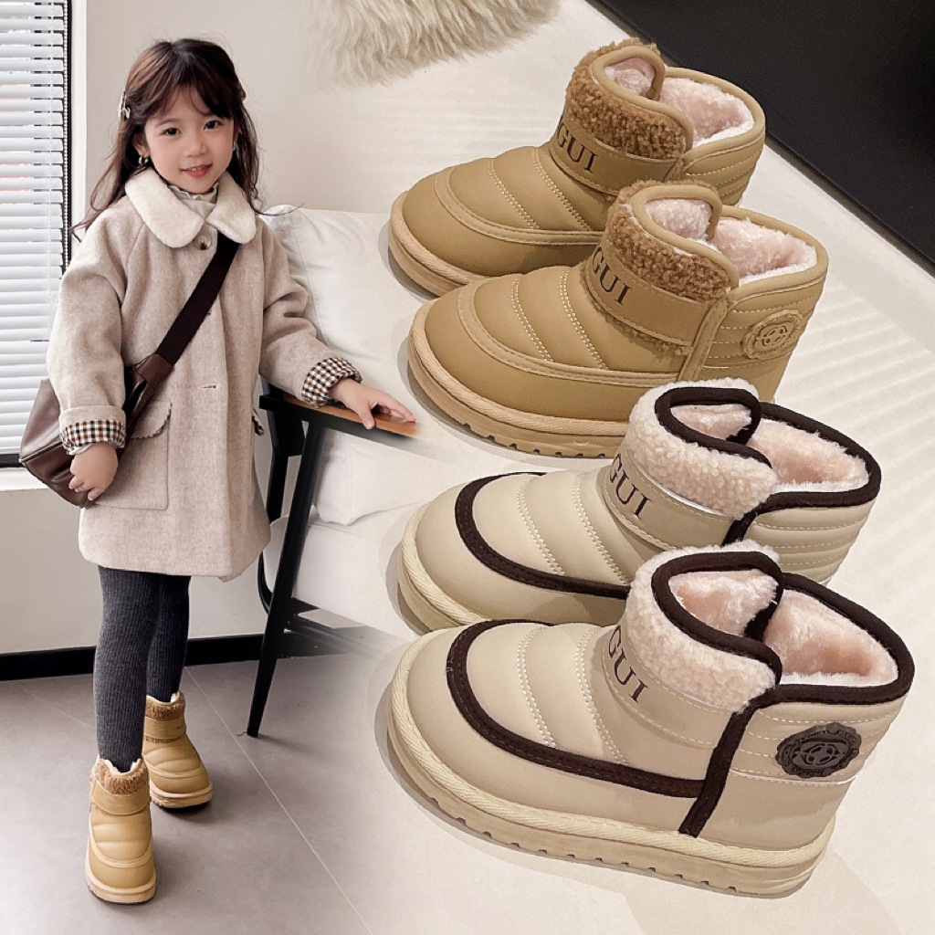 Детские снежные сапоги бархатные утолщенные водонепроницаемые сапоги для мальчиков 2024 новые зимние туфли для девочек снежные хлопковые хлебные туфли