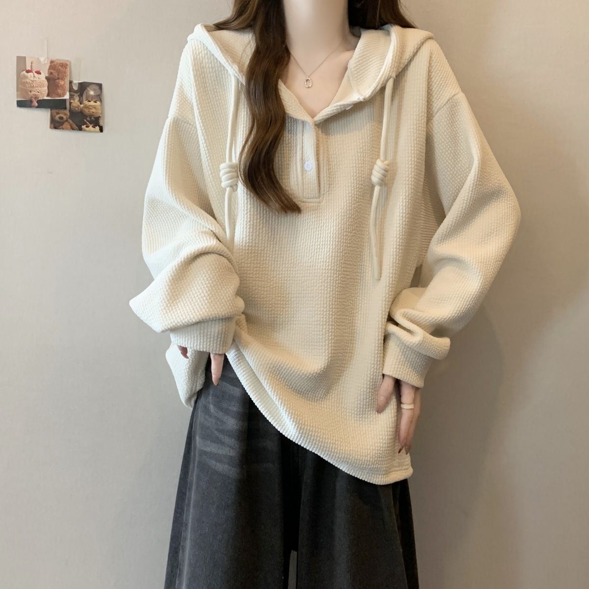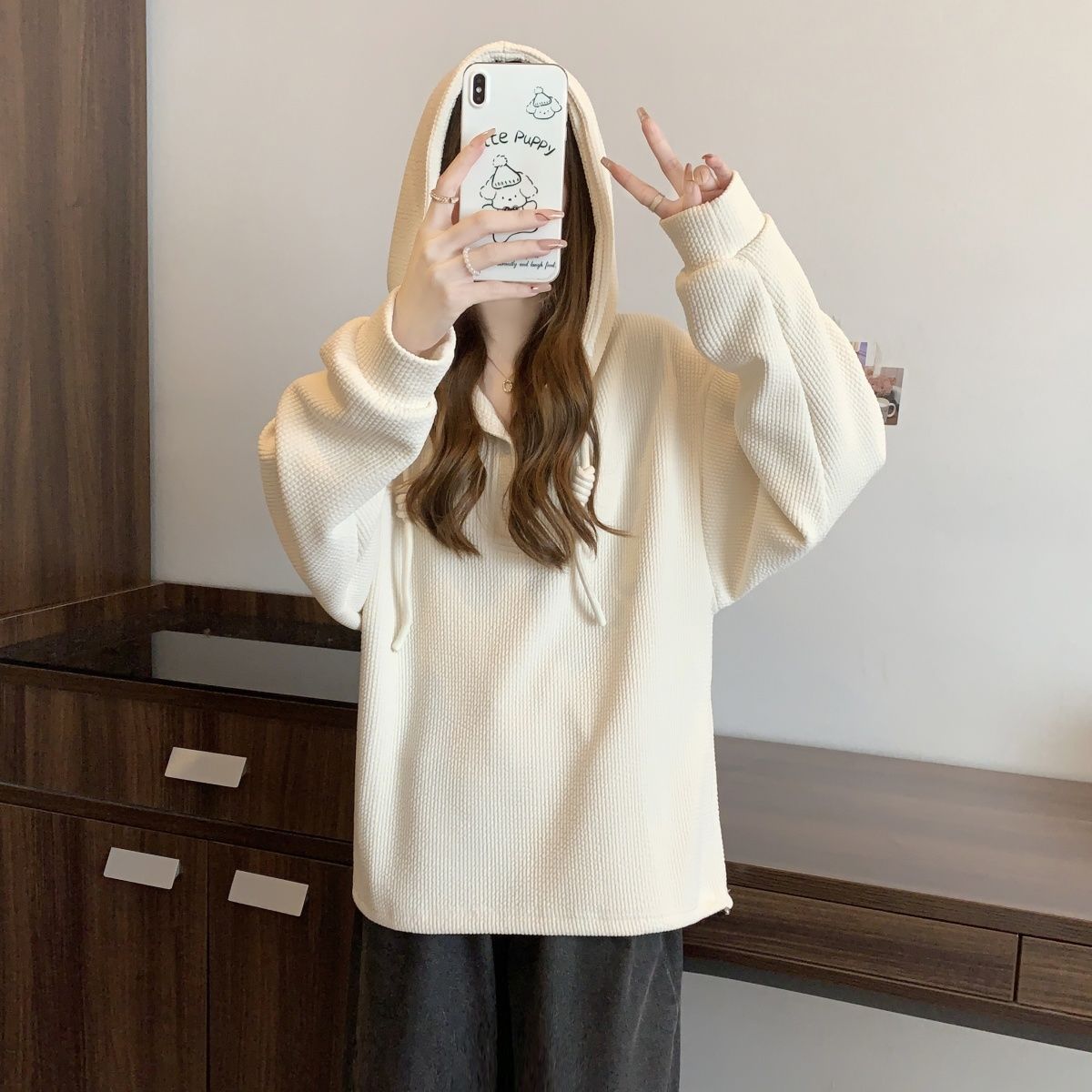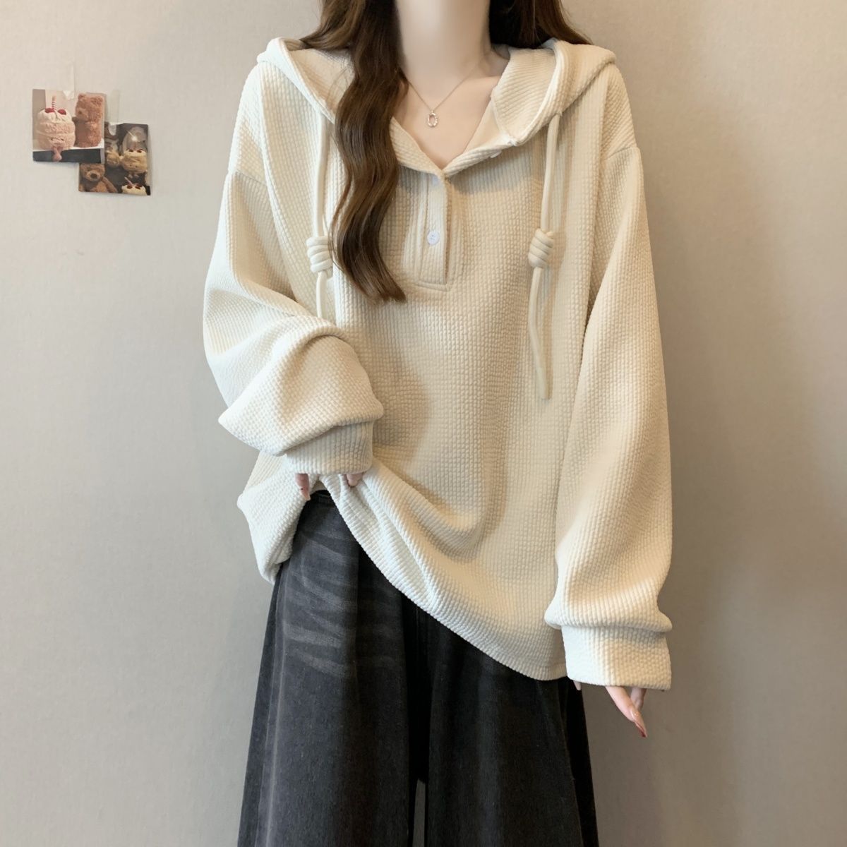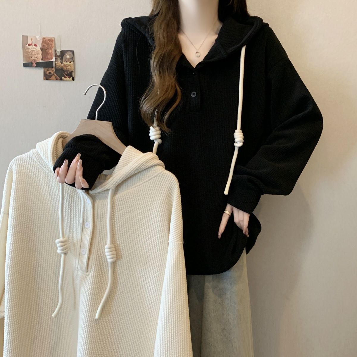 200 фунтов большой размер текстуры ямы с капюшоном футболка женская весна и осень 2025 новая свободная тонкая мода топ женская