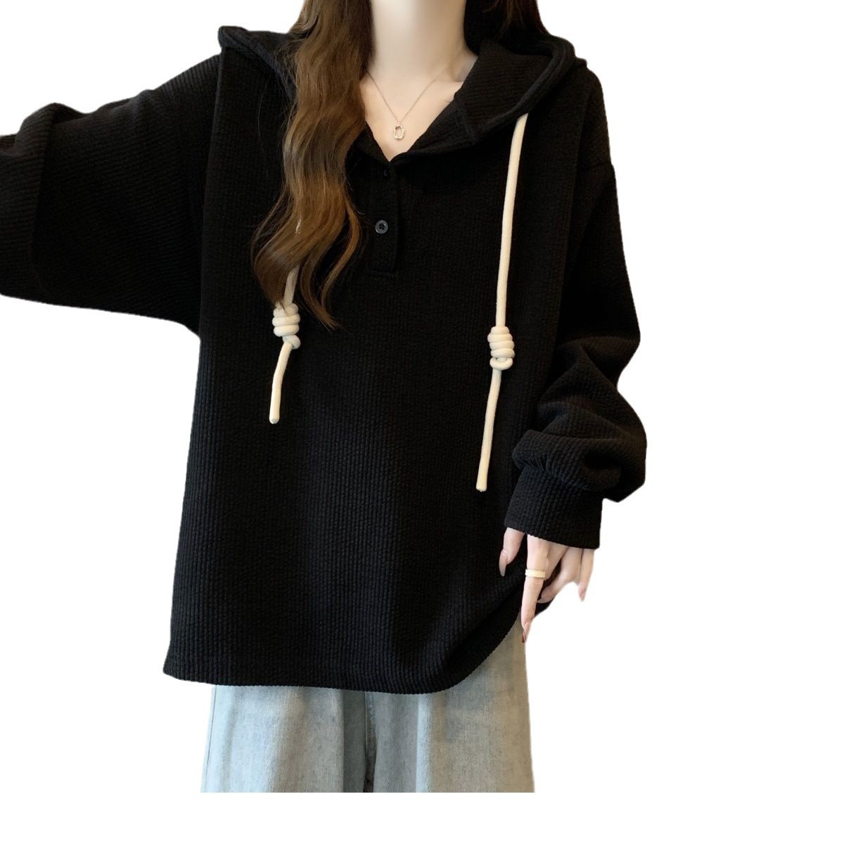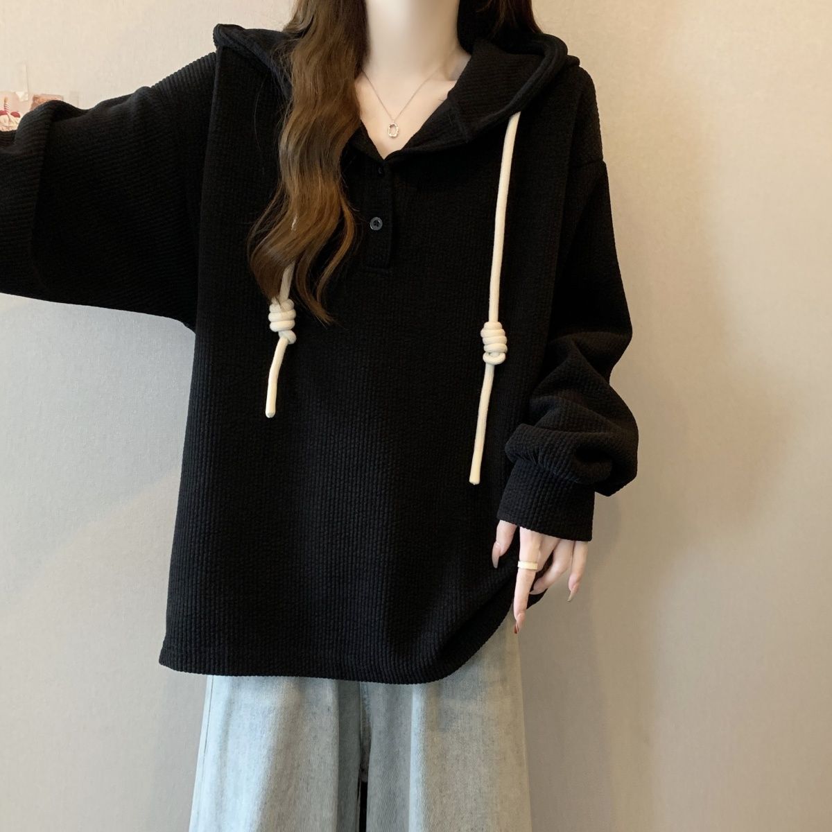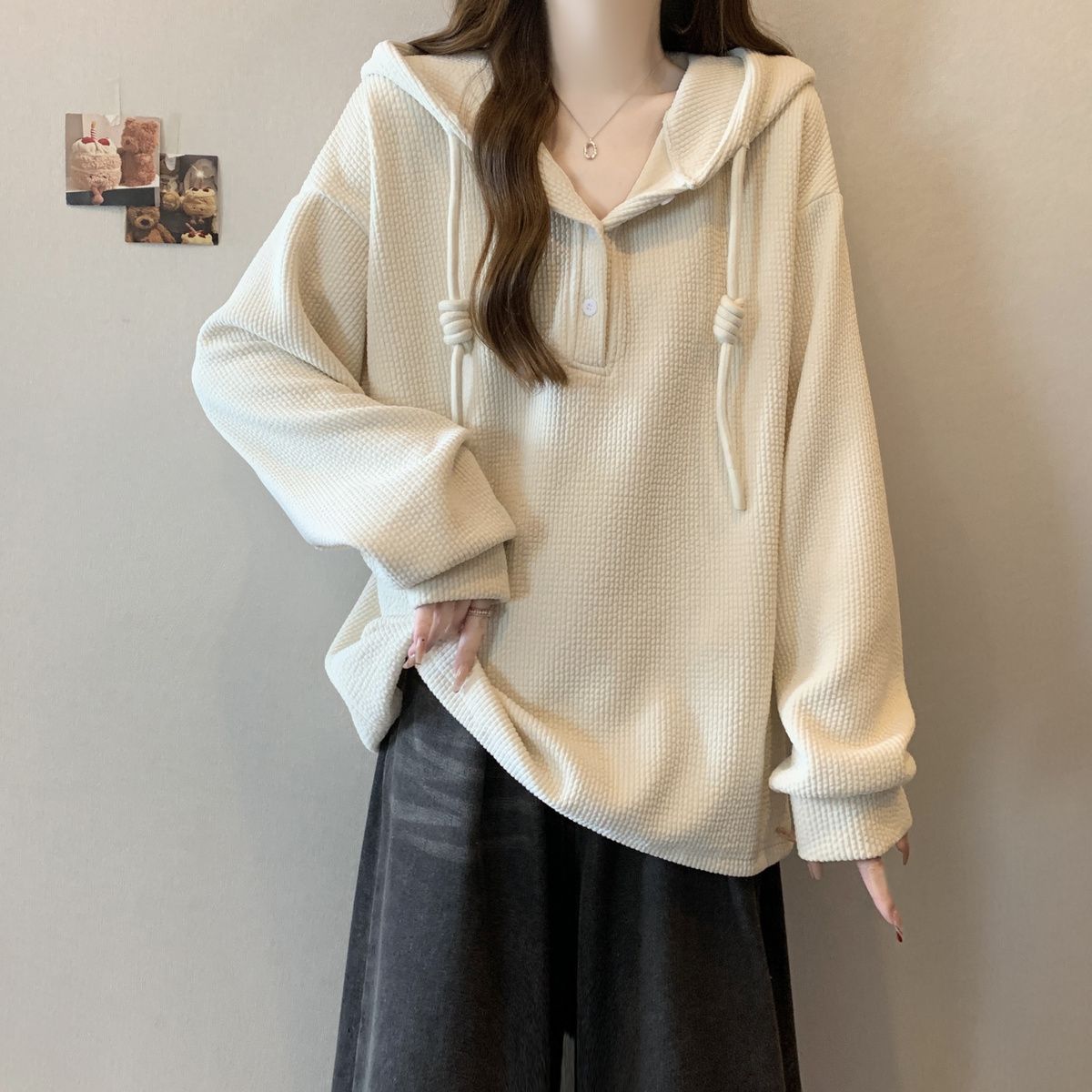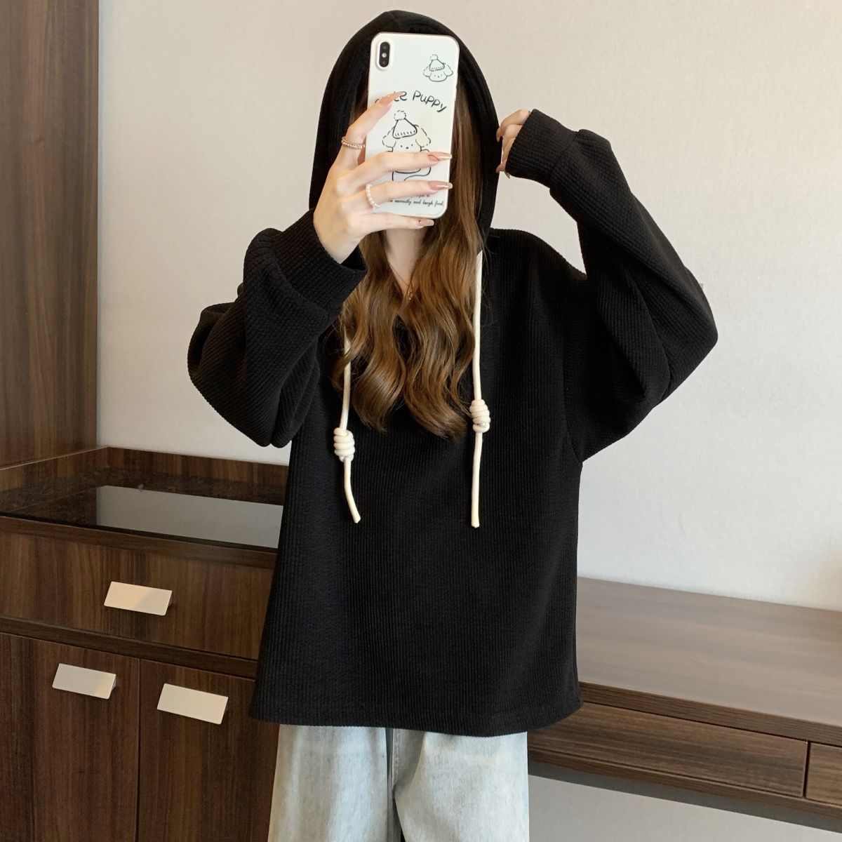200 фунтов большой размер текстуры ямы с капюшоном футболка женская весна и осень 2025 новая свободная тонкая мода топ женская