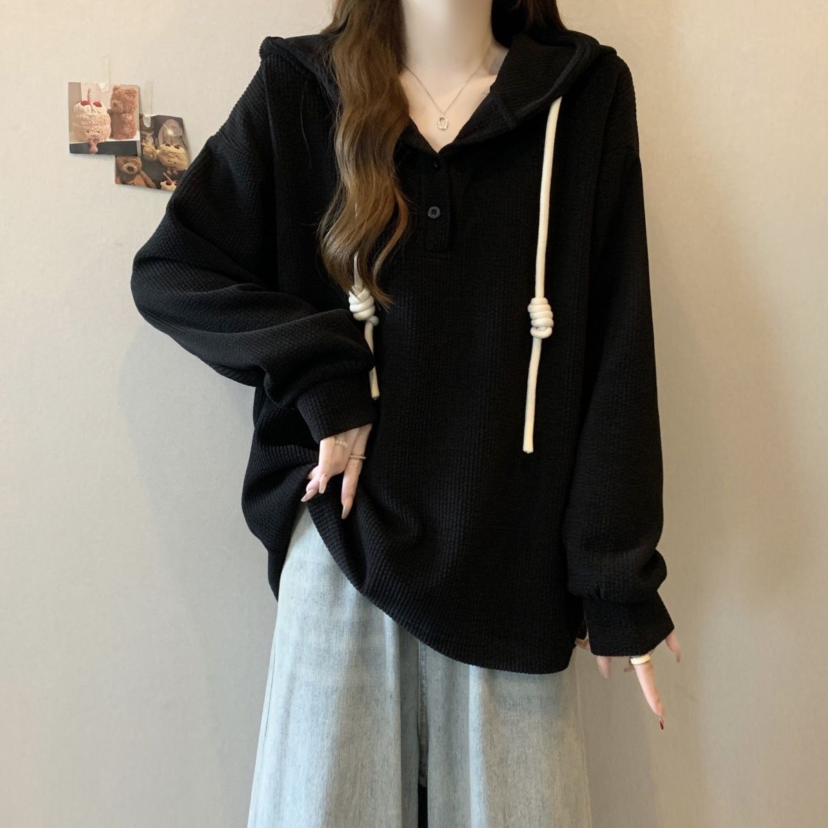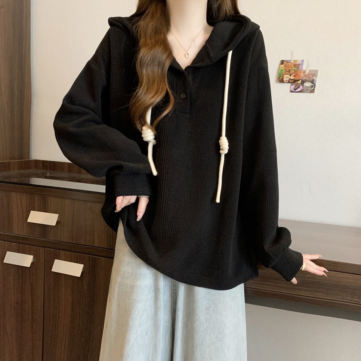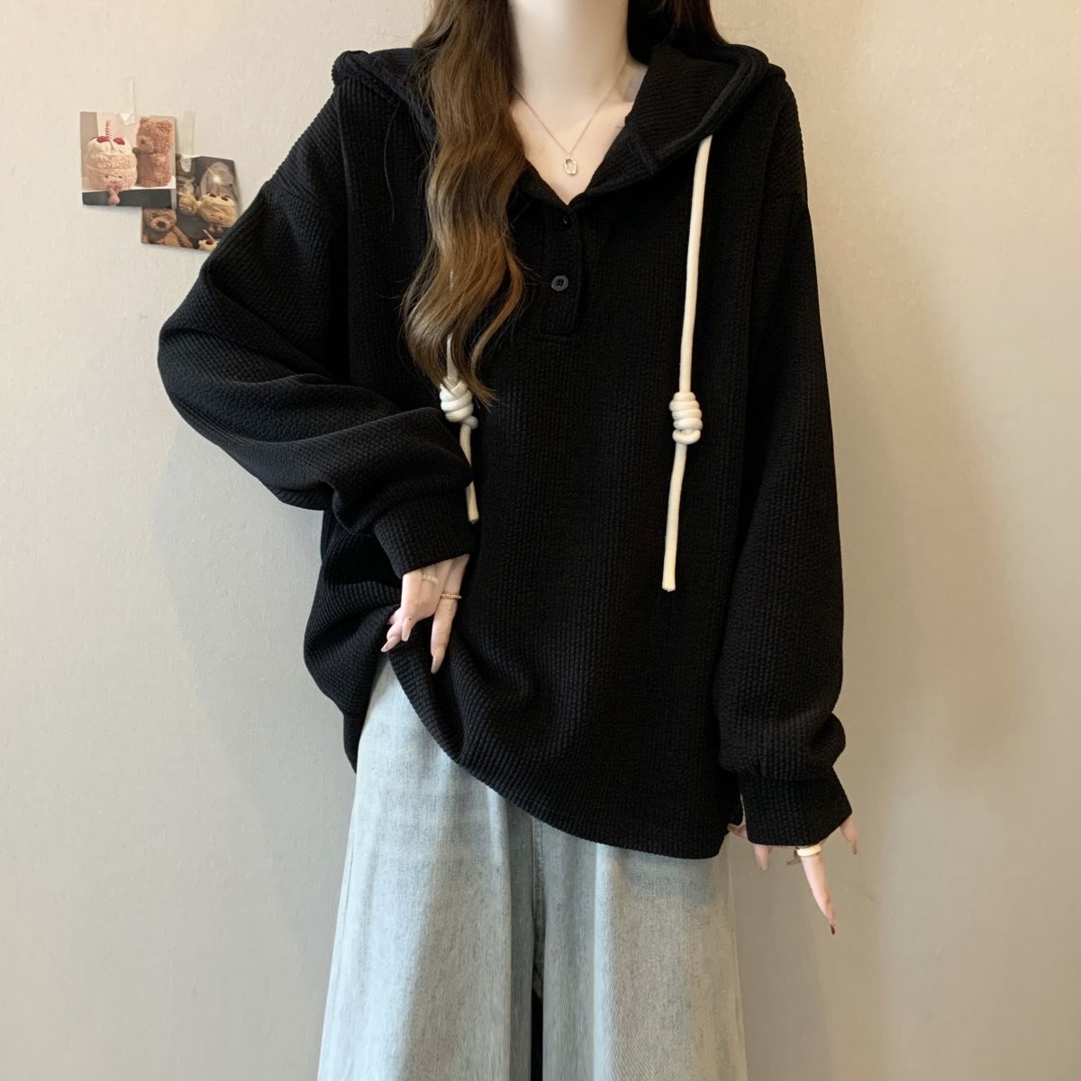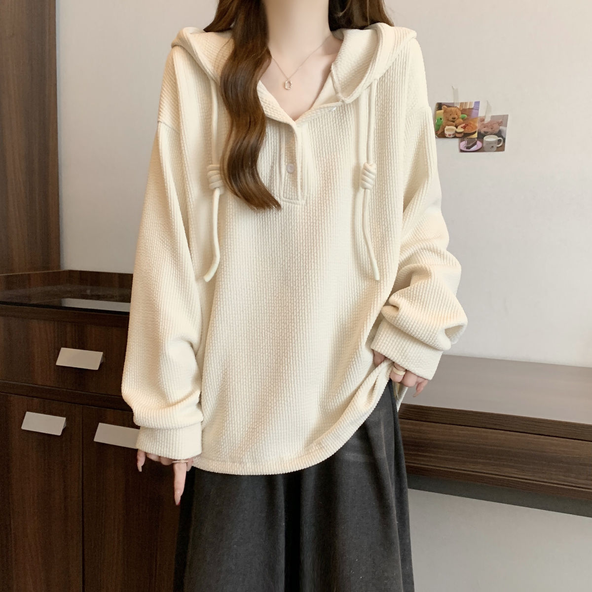200 фунтов большой размер текстуры ямы с капюшоном футболка женская весна и осень 2025 новая свободная тонкая мода топ женская