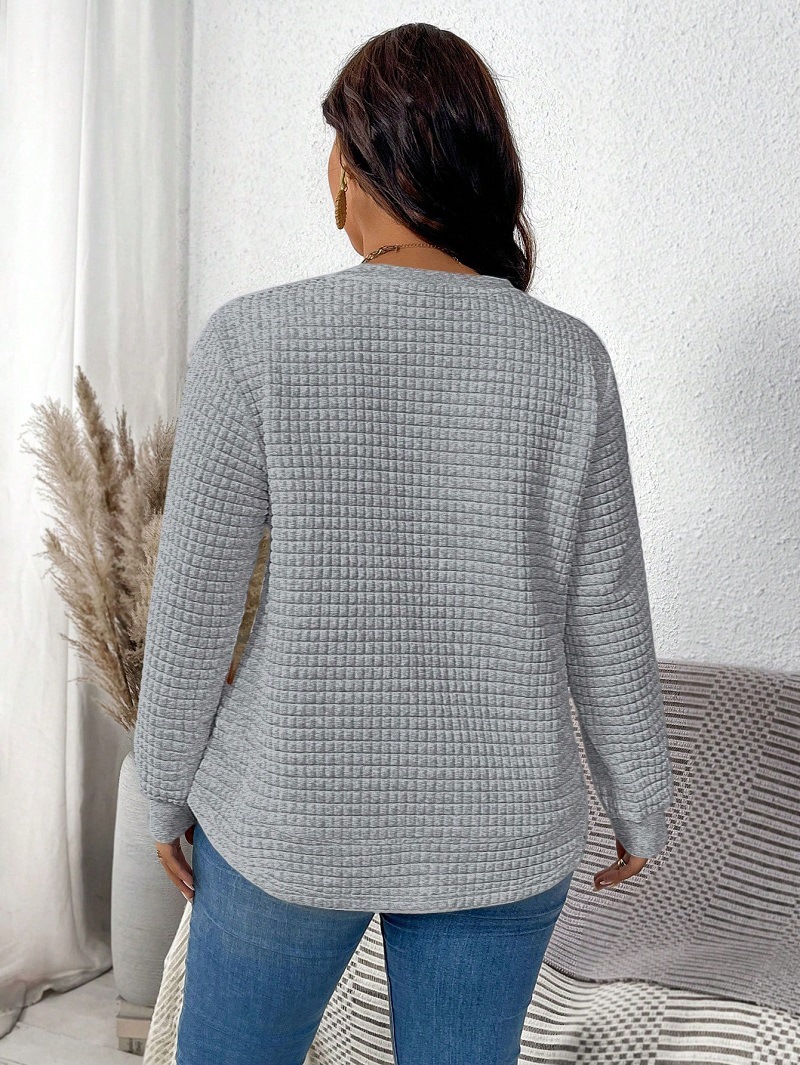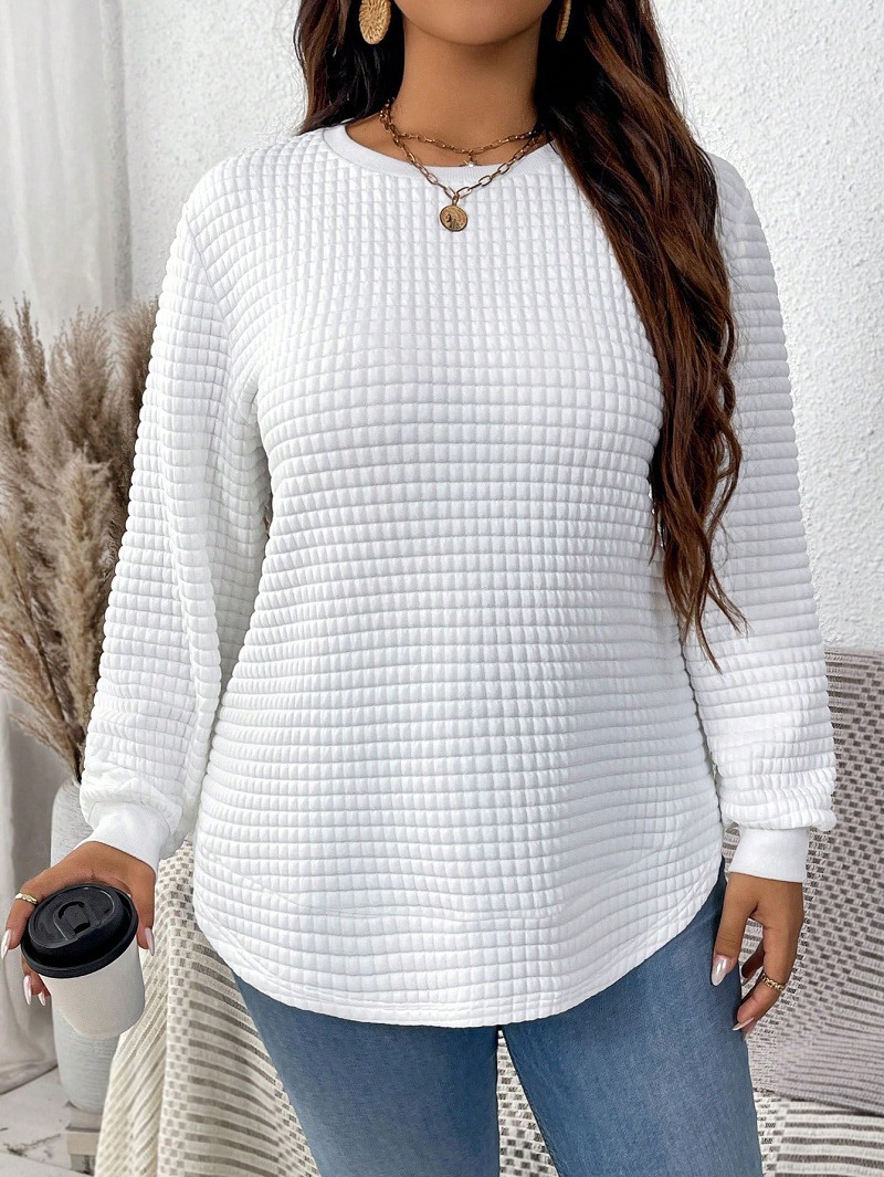 Женская футболка оверсайз с длинным рукавом, однотонная, в клетку, с изогнутым низом, новая коллекция Весна 2025