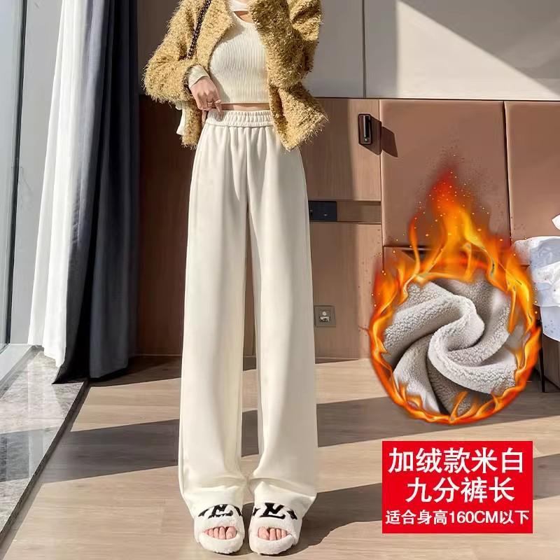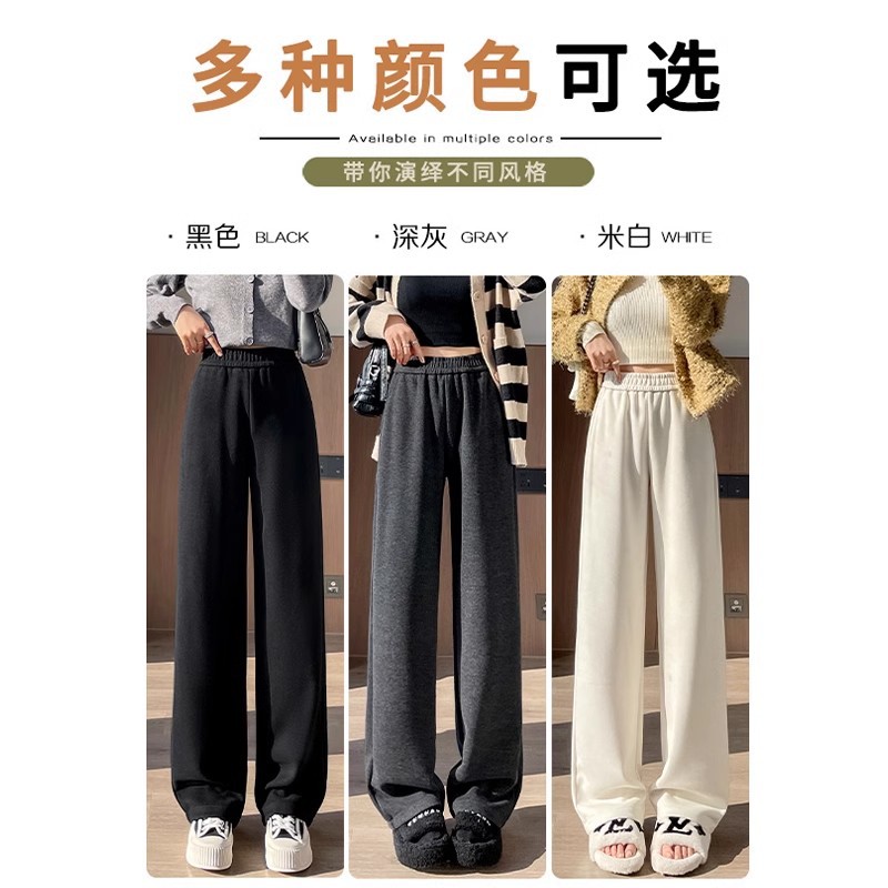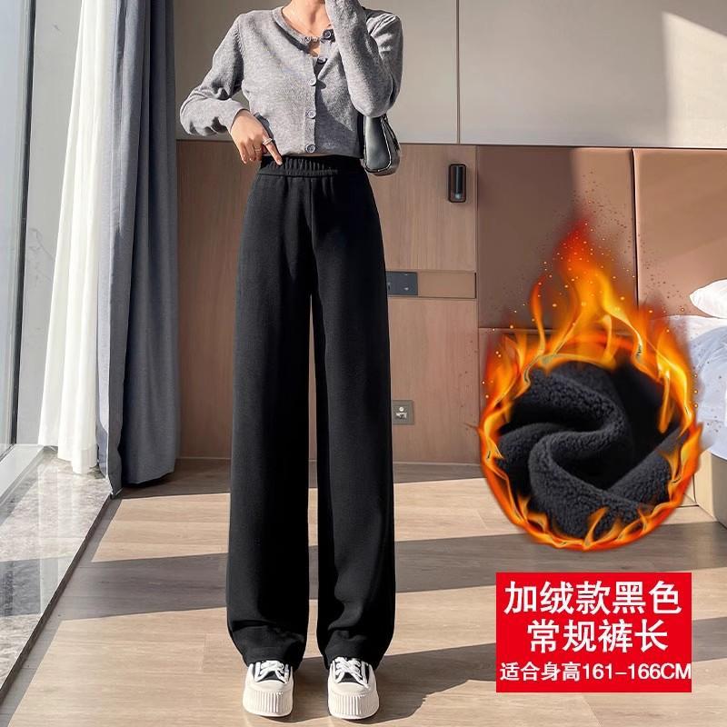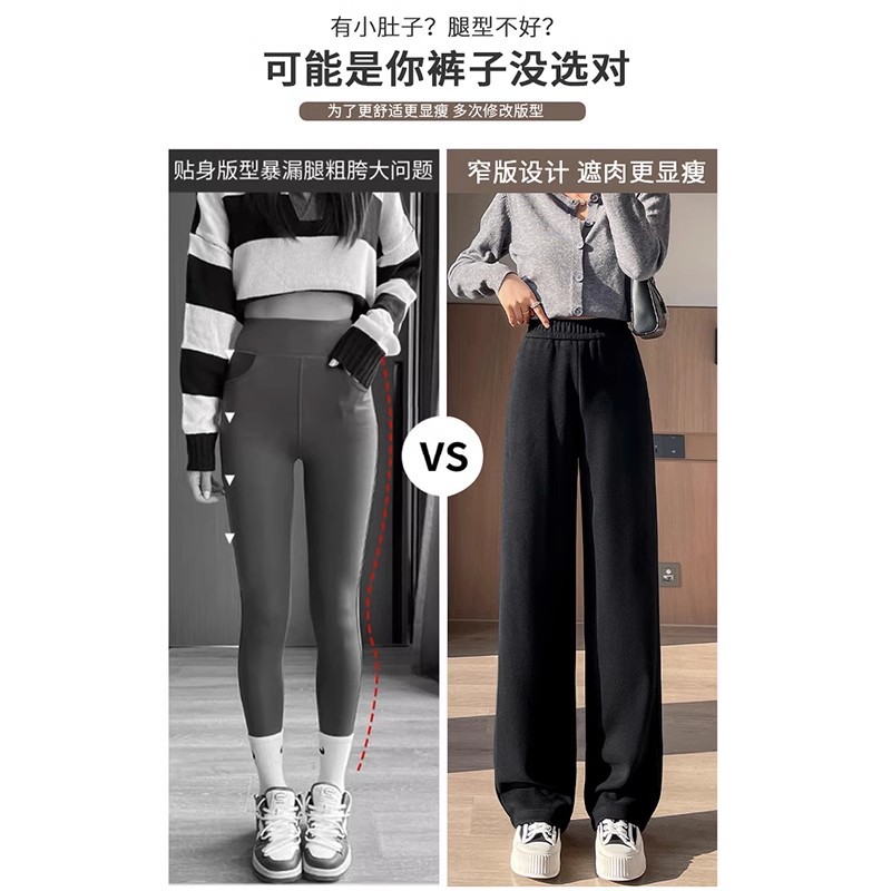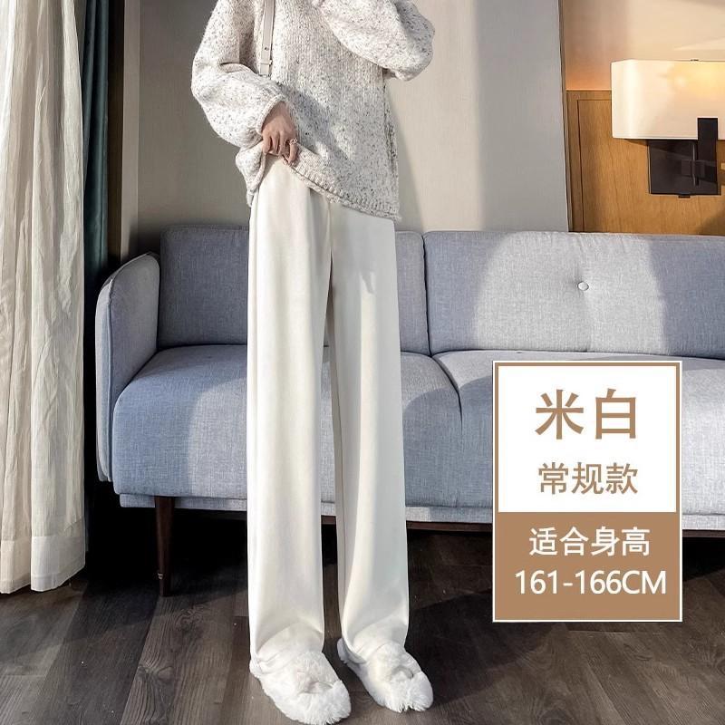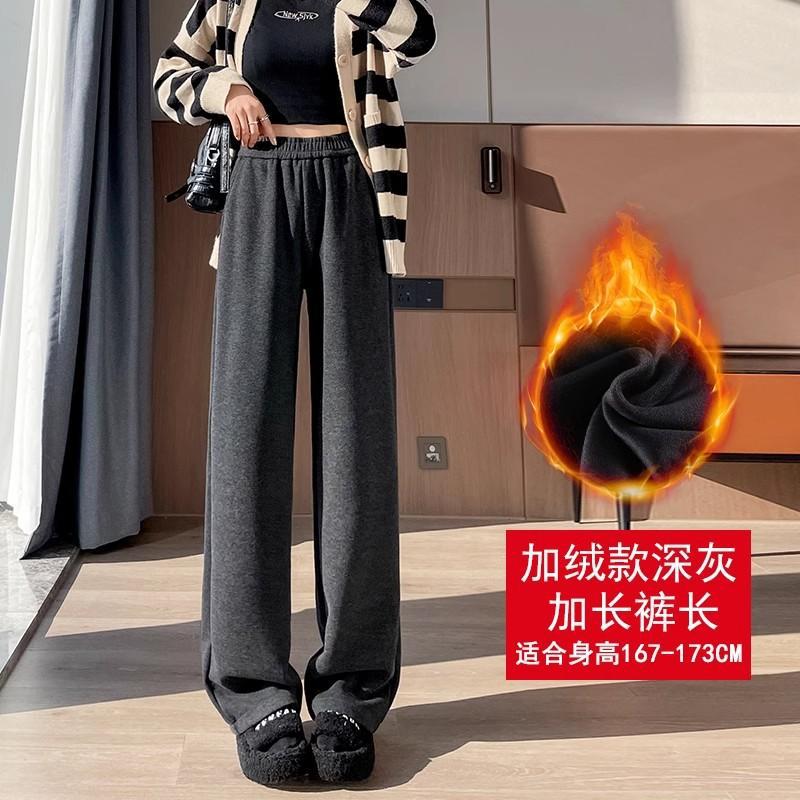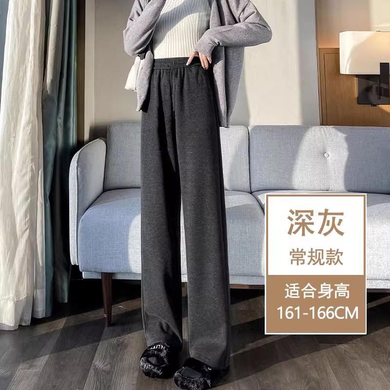 Серая узкая версия ацетат шерстяные широкие брюки женские толстые новые зимние бархатные прямые повседневные брюки липкий рис