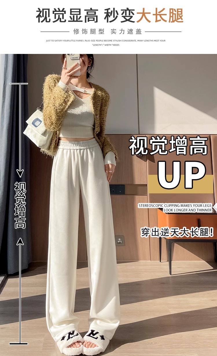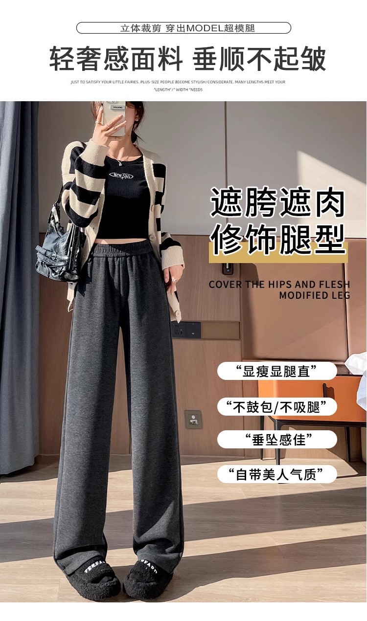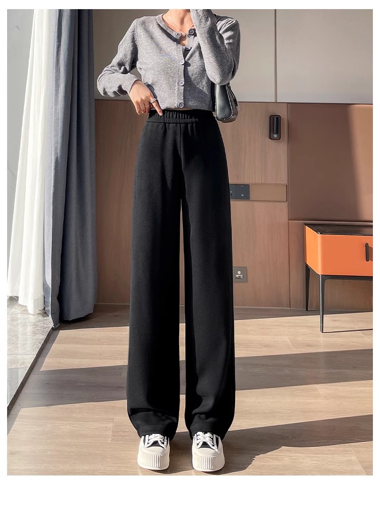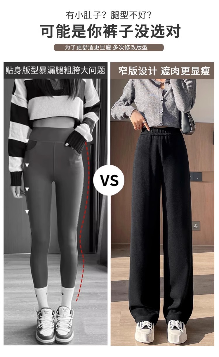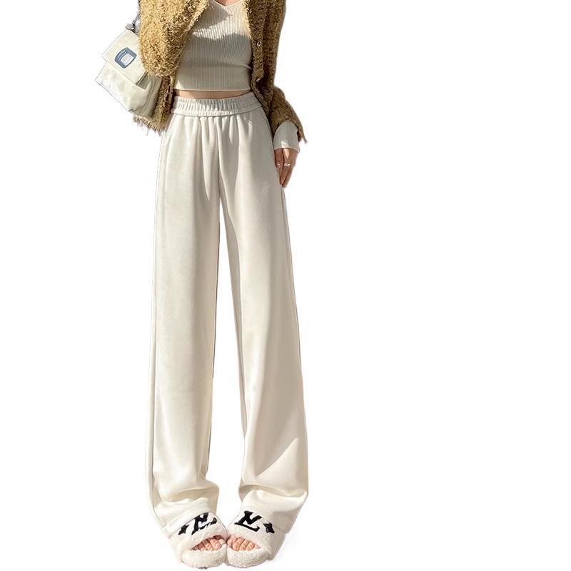 Серая узкая версия ацетат шерстяные широкие брюки женские толстые новые зимние бархатные прямые повседневные брюки липкий рис