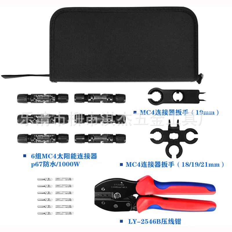 Популярный комплект MC4; Клещи для обжима 2546B (одна ручка); Ключ MC4 (поперечный + одно слово); Разъем MC4 (одинарный); Популярный комплект MC4 (с медной пряжкой); Плоскогубцы трубного типа 6–4 А (периодная горячая модель); 1200 шт. клемма для труб + плоскогубцы для труб