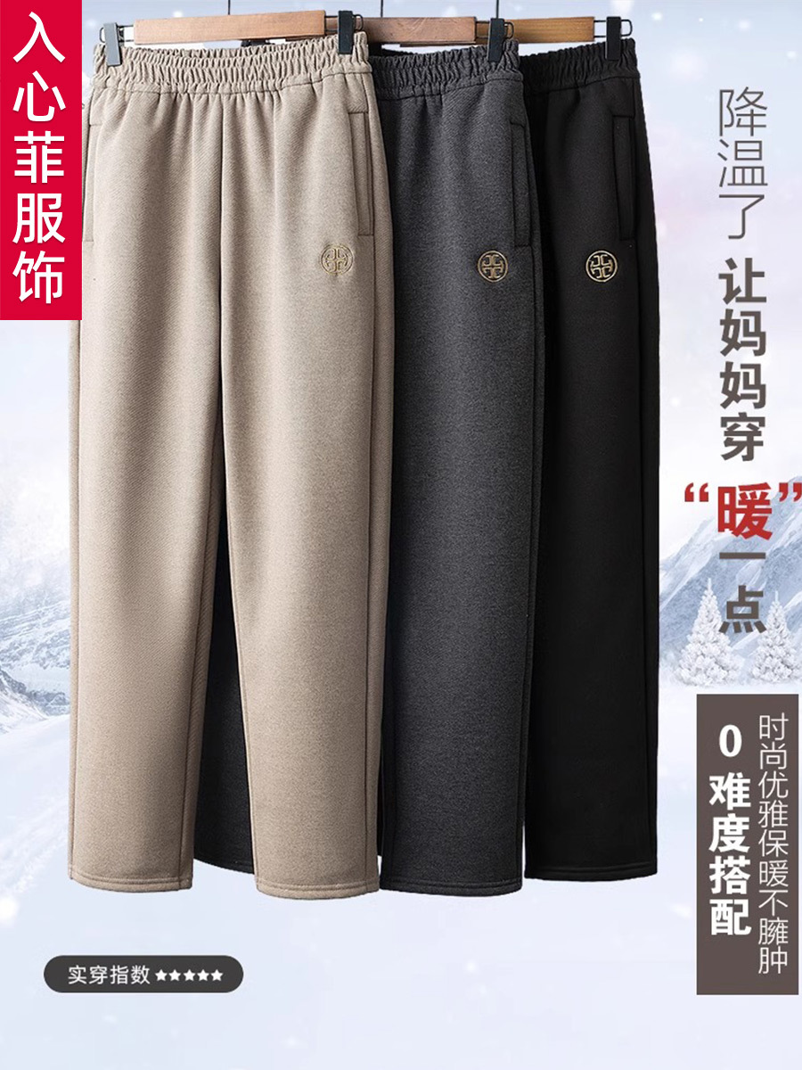 Мама среднего возраста осенние брюки женские иностранные бабушки повседневные брюки пожилые осенние и зимние бархатные брюки эласткая талия прямо