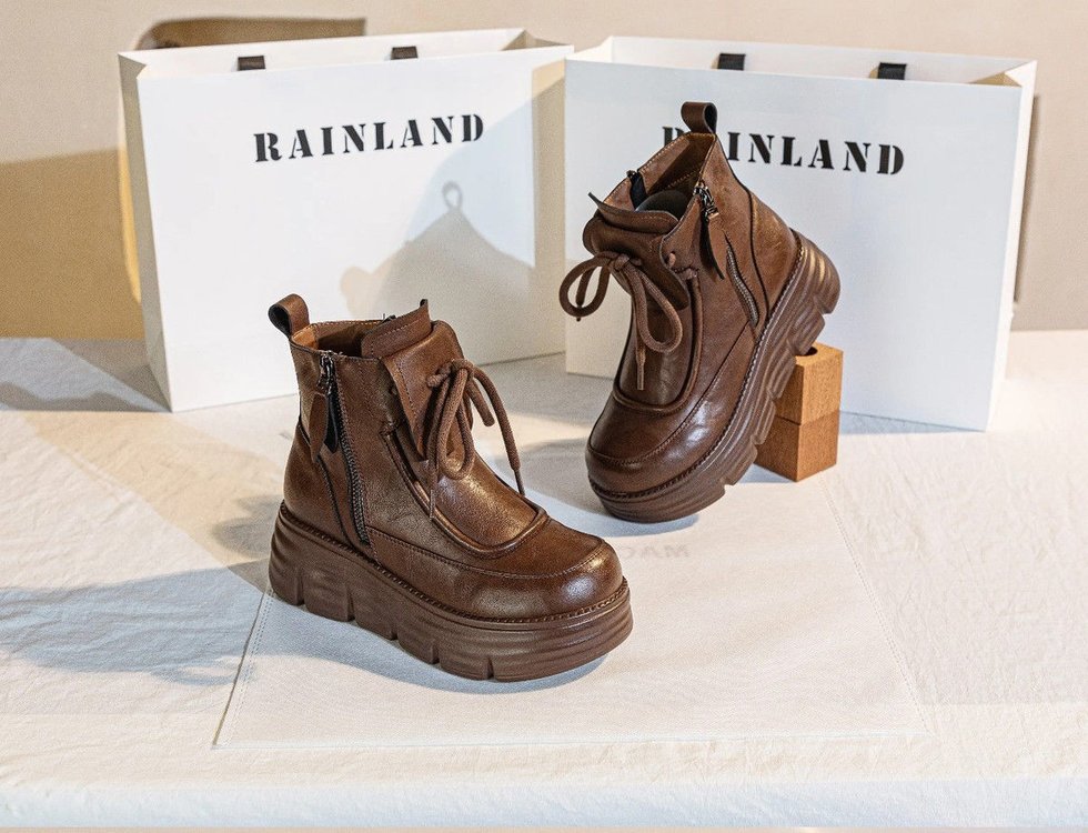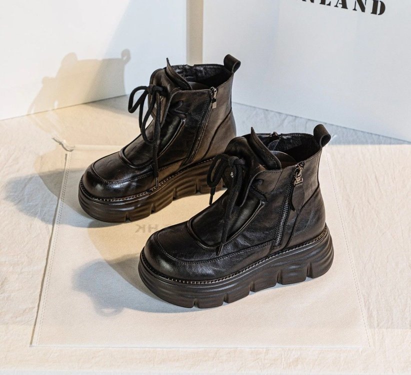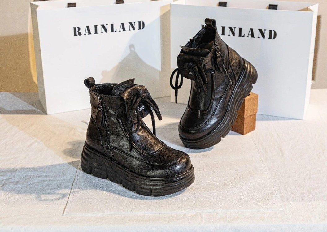 Толстая подошва увеличила короткие сапоги женщины 2024 новый британский стиль осень и зима