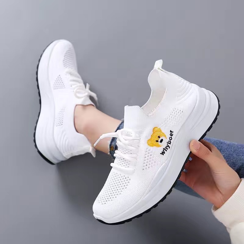 Новая летающая спортивная обувь женская весна и лето дышащая сетка беговая обувь для внешней торговли оптом корейская версия светлая кокосовая обувь