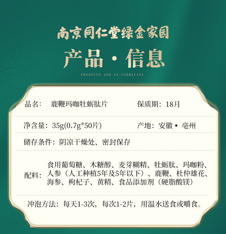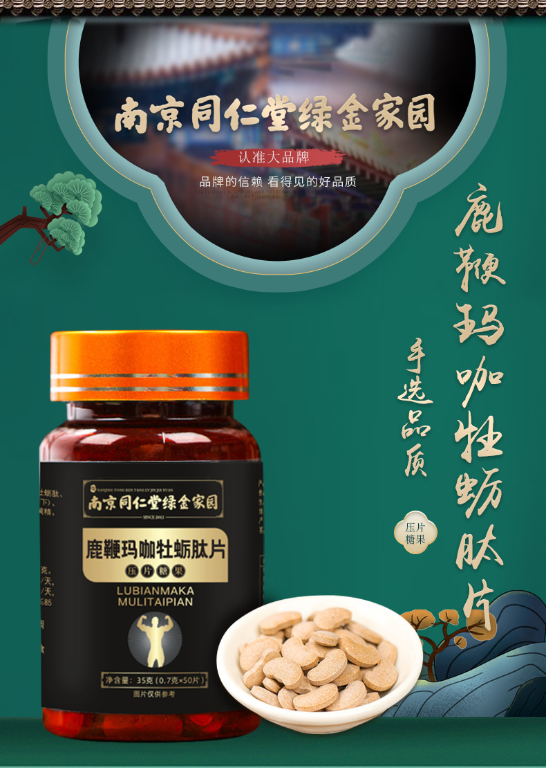 Нанкин Тонгрентанг зеленый золотой дом оленей кнут мака устрицы пептид таблетки женьшень мака желтый экстракт