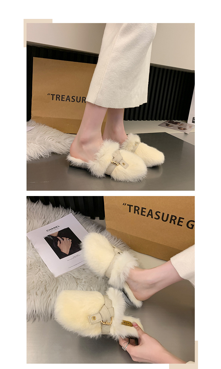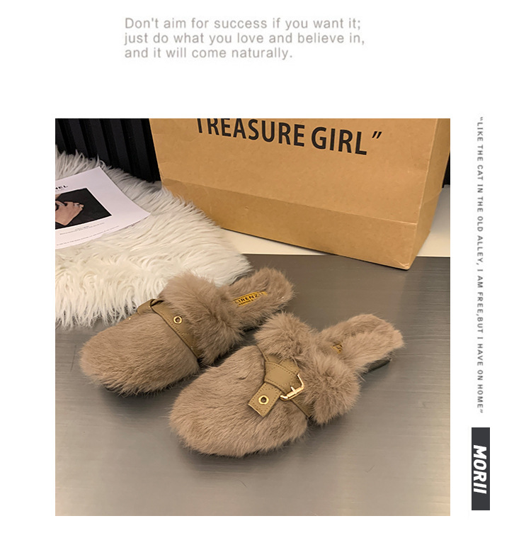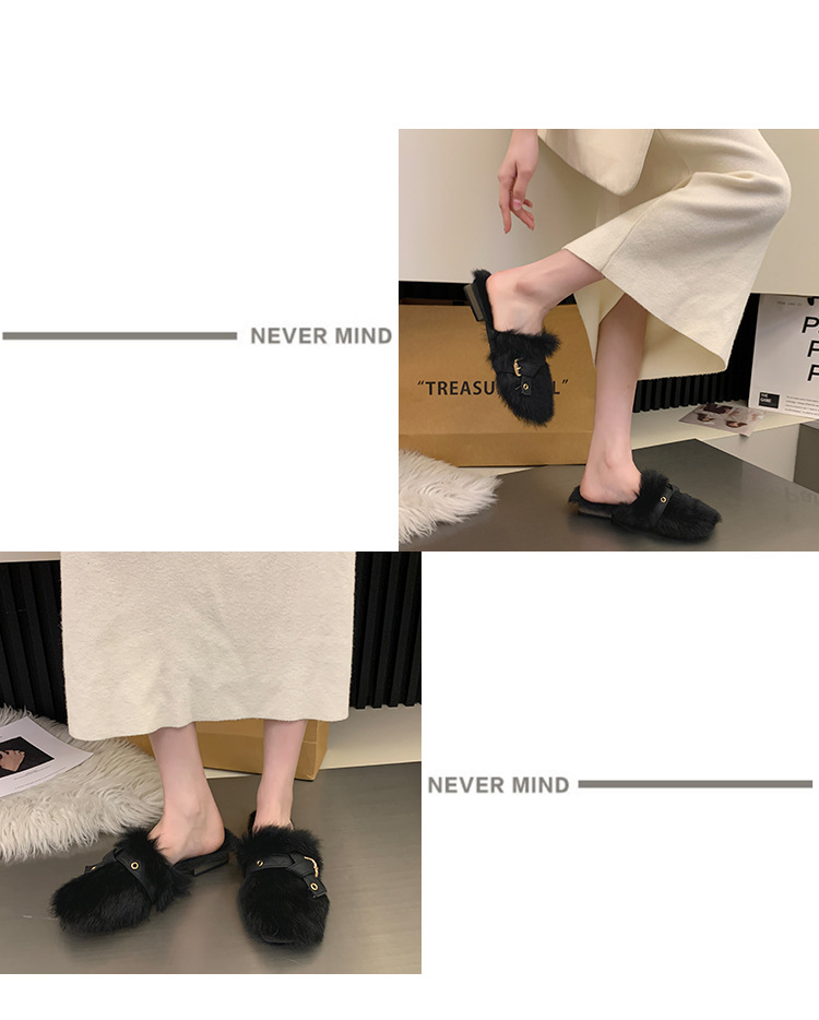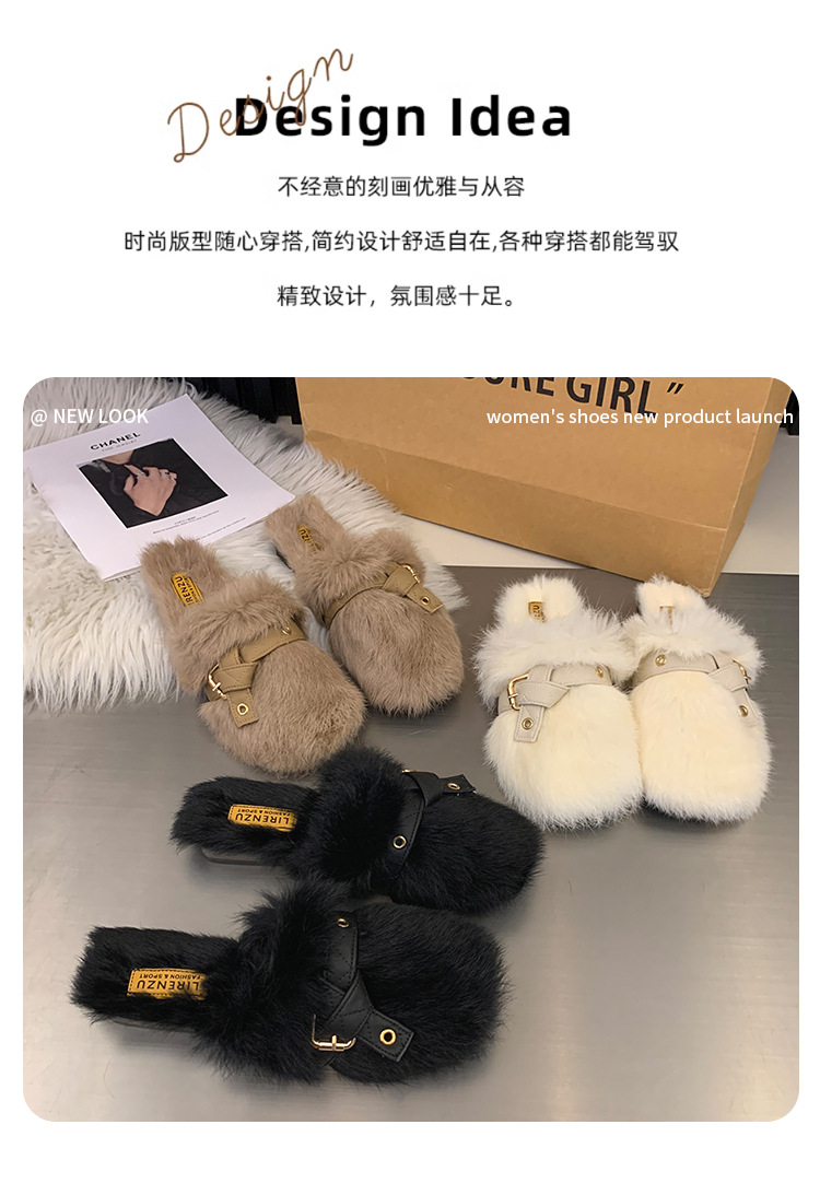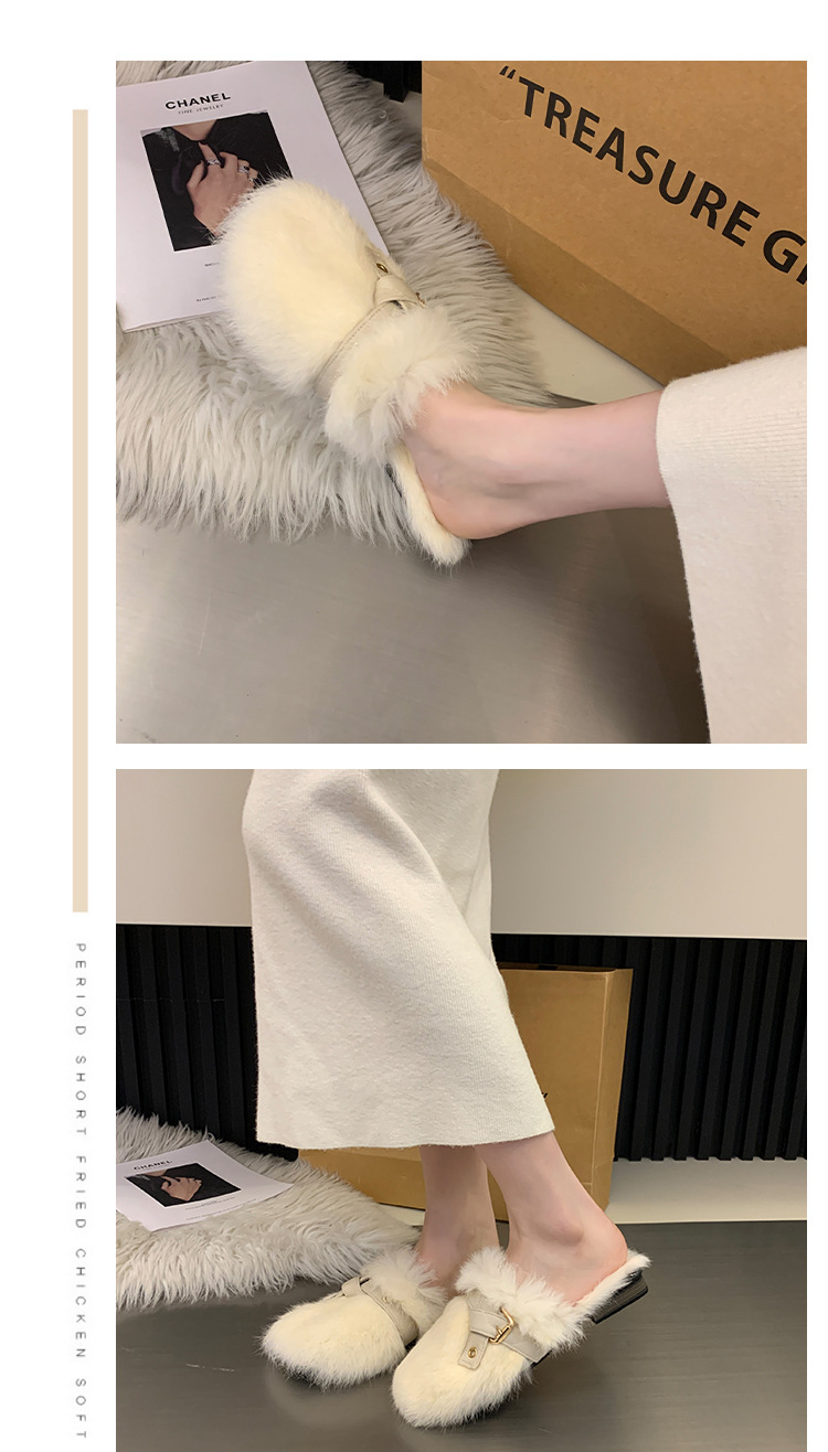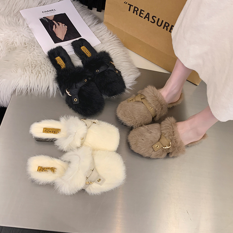 Little Xiangfeng плоский шерстяной пол-тапочки женская внешняя одежда 2024 осень и зима новая маленькая мода Baotou универсальный тапочки