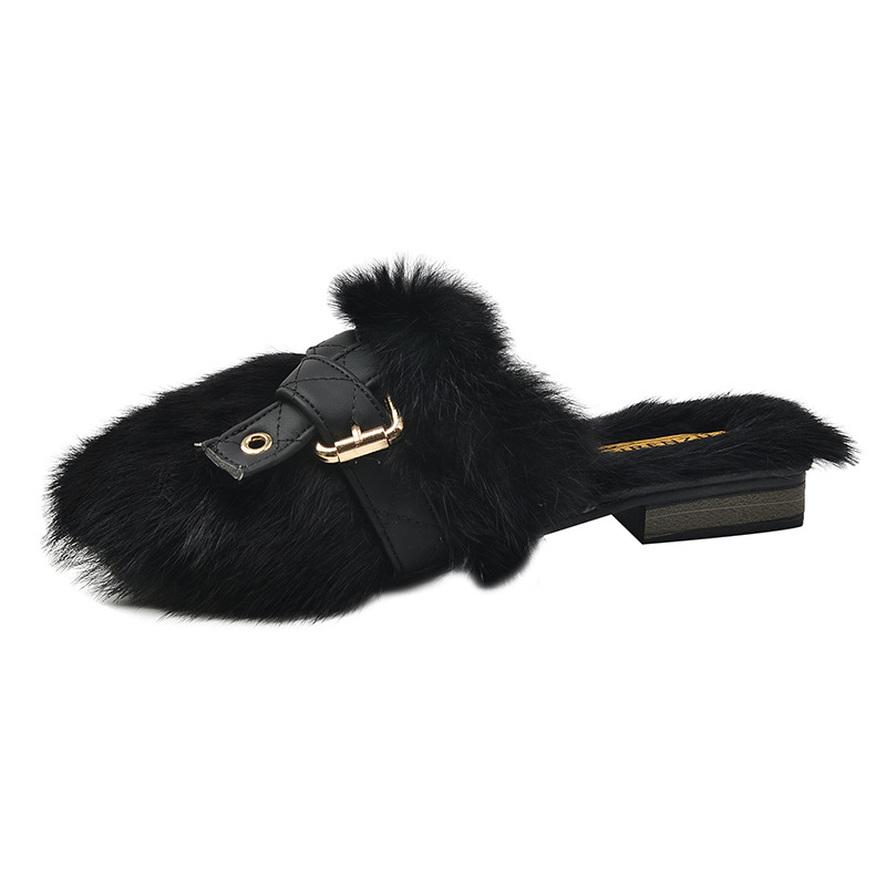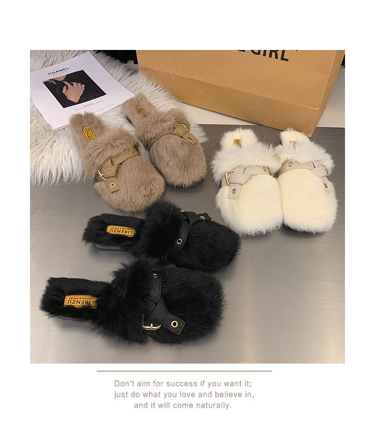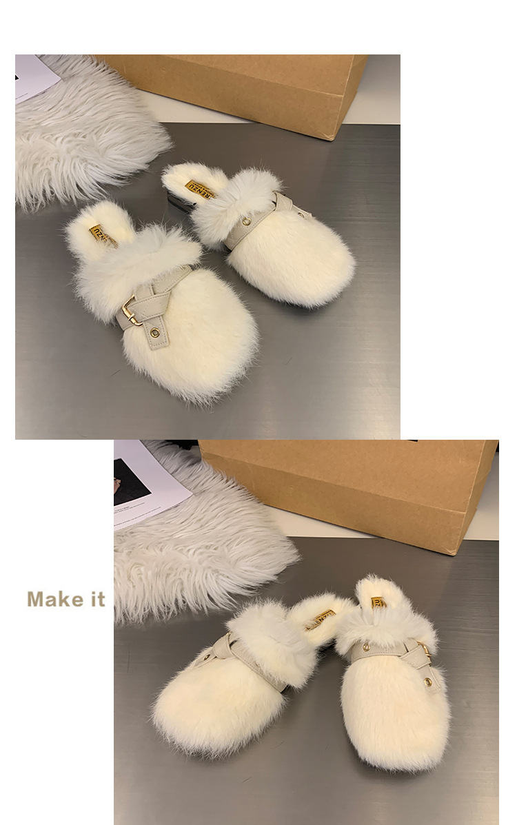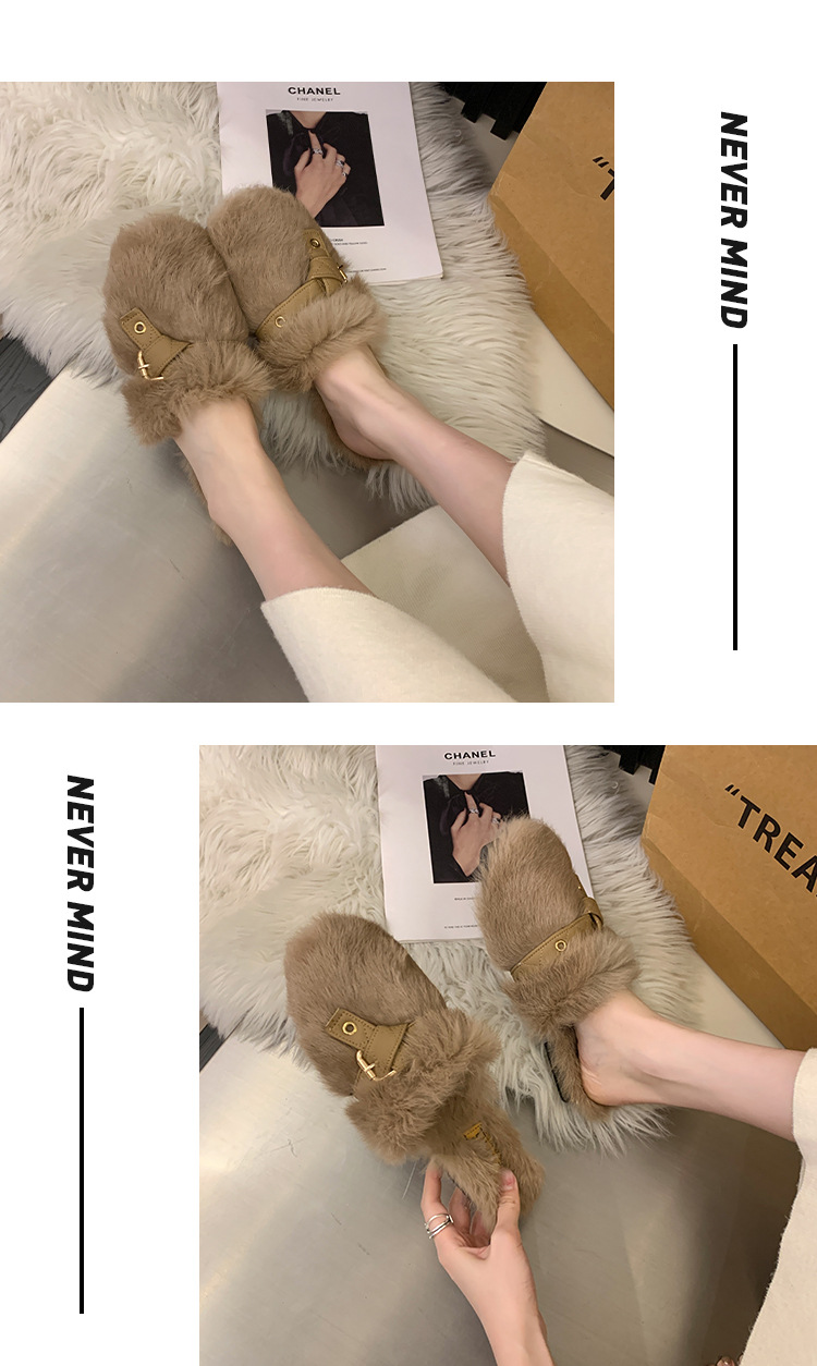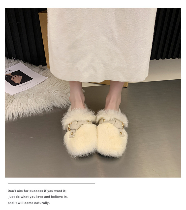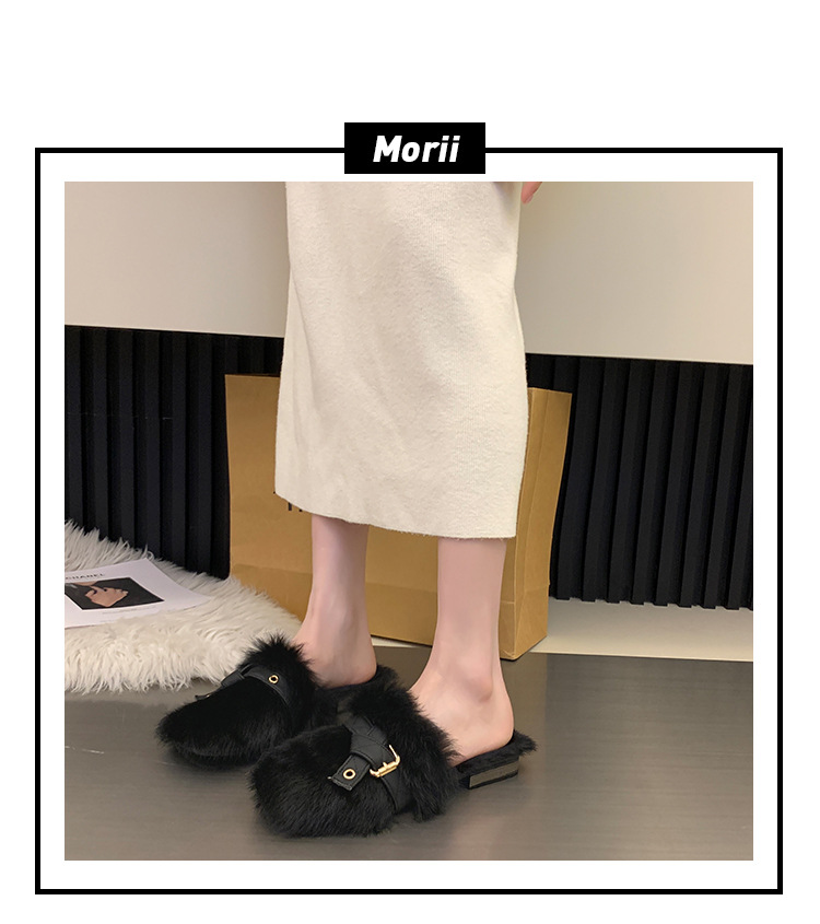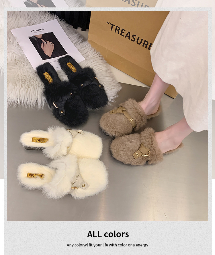 Little Xiangfeng плоский шерстяной пол-тапочки женская внешняя одежда 2024 осень и зима новая маленькая мода Baotou универсальный тапочки