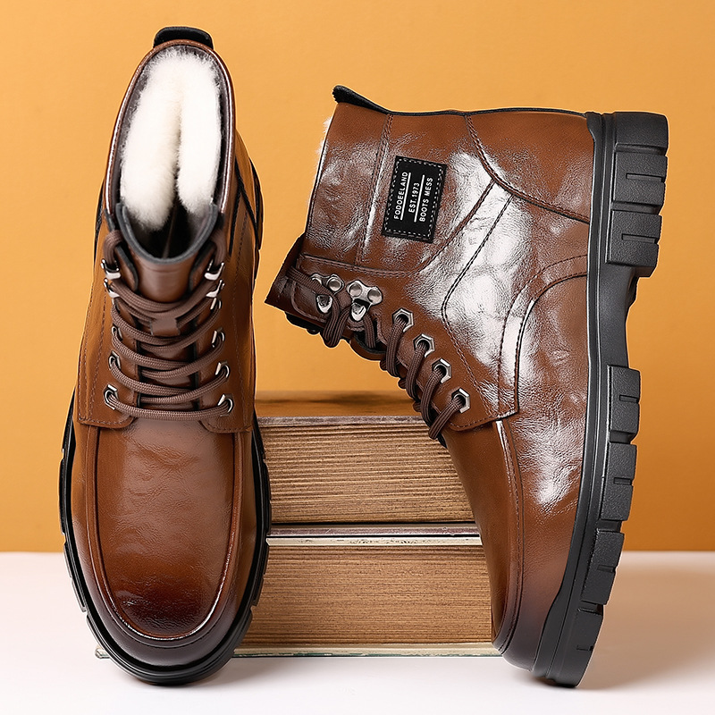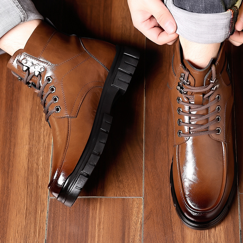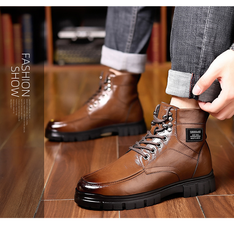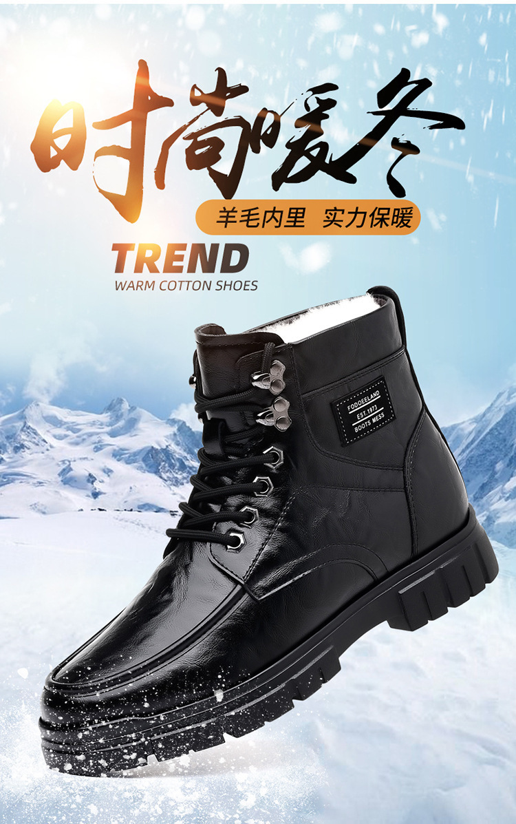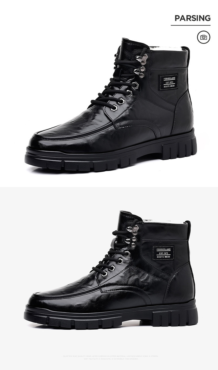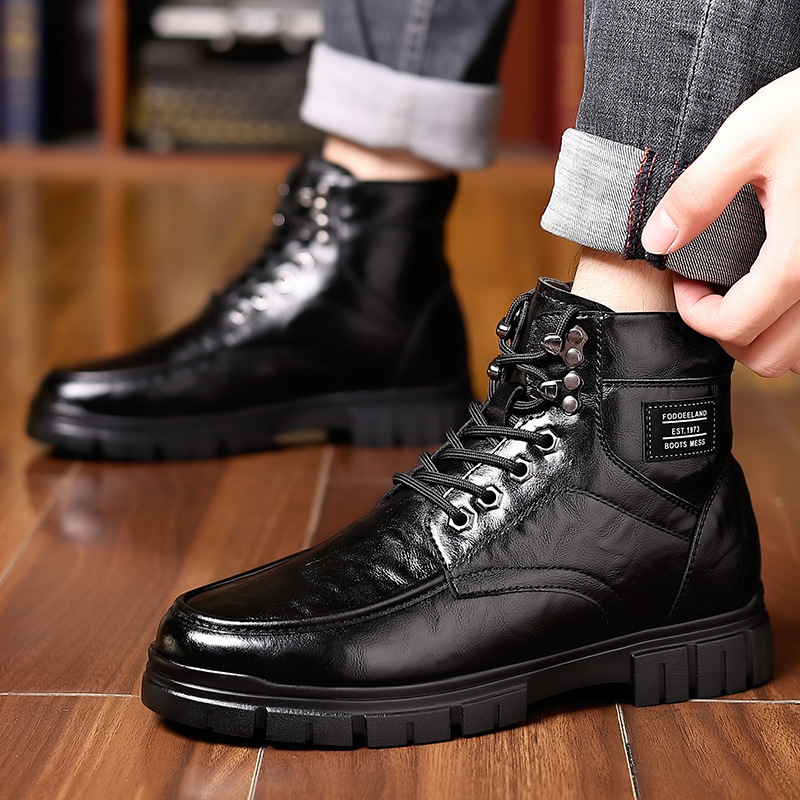 Мужская обувь зимой утолщена теплая хлопчатобумажная обувь мужская одежда повседневная нескользящая водонепроницаемая мягкая кожа хлопчатобумажная обувь высокая голова обувь