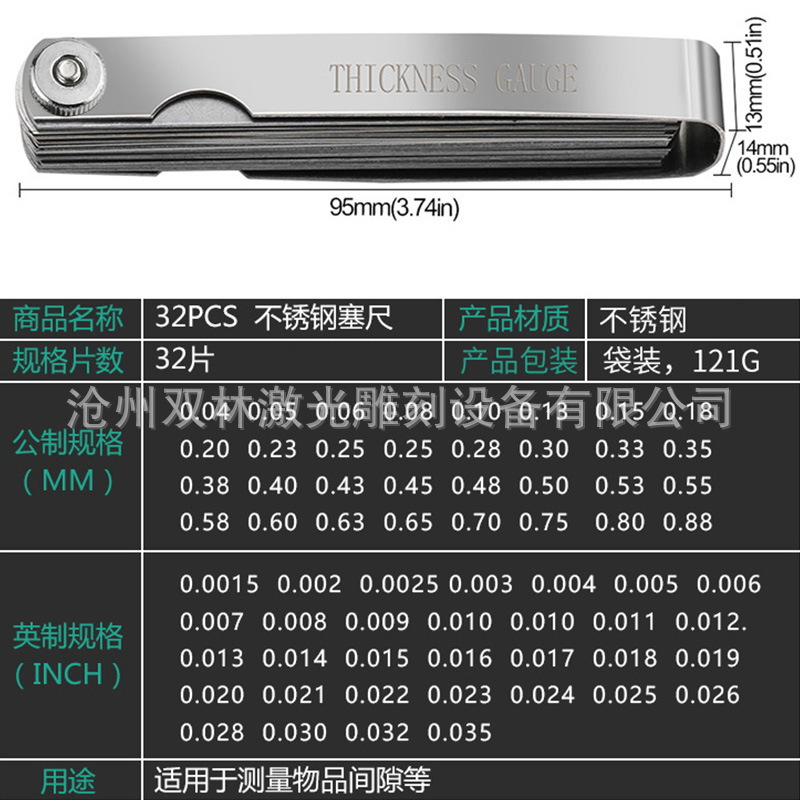 Несколько спецификаций нержавеющая сталь Высокая точность пробки линейка 0,01-1 мм.