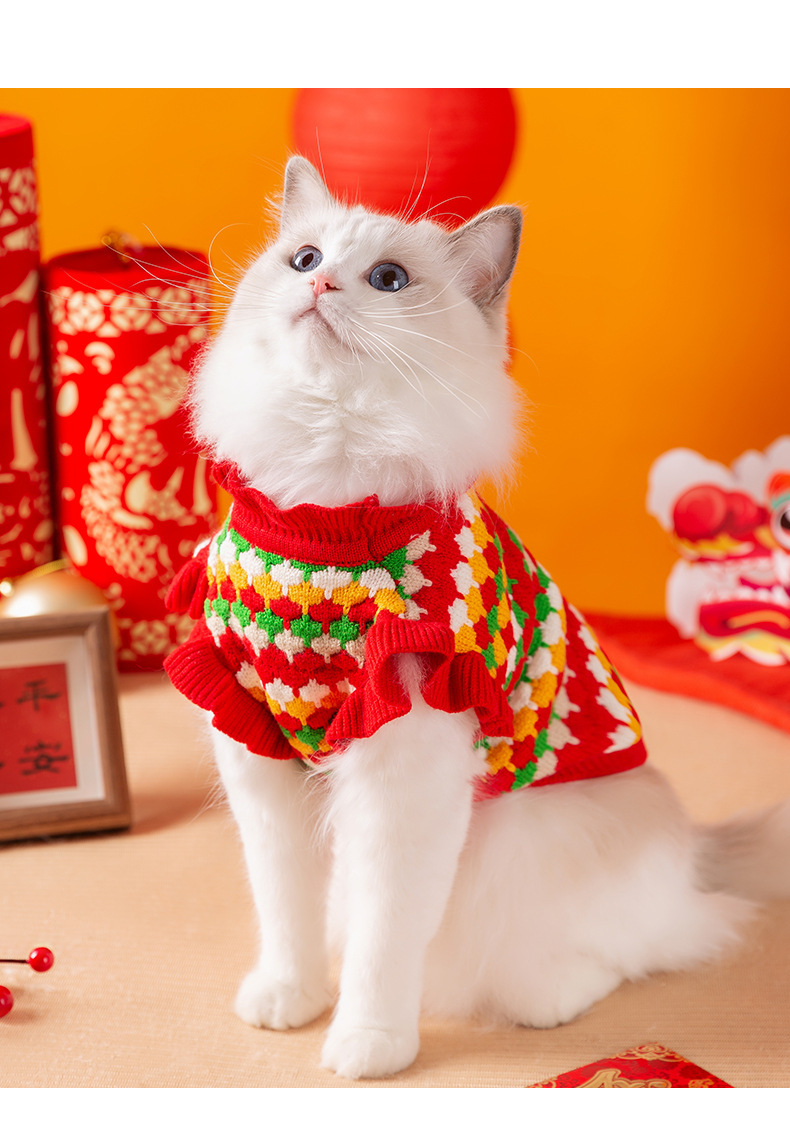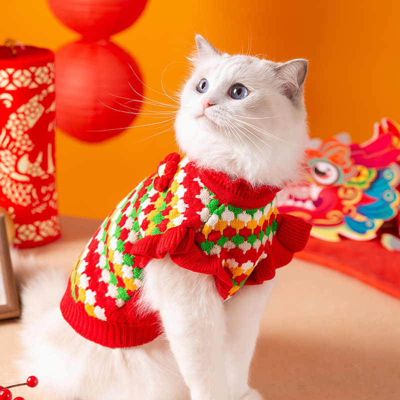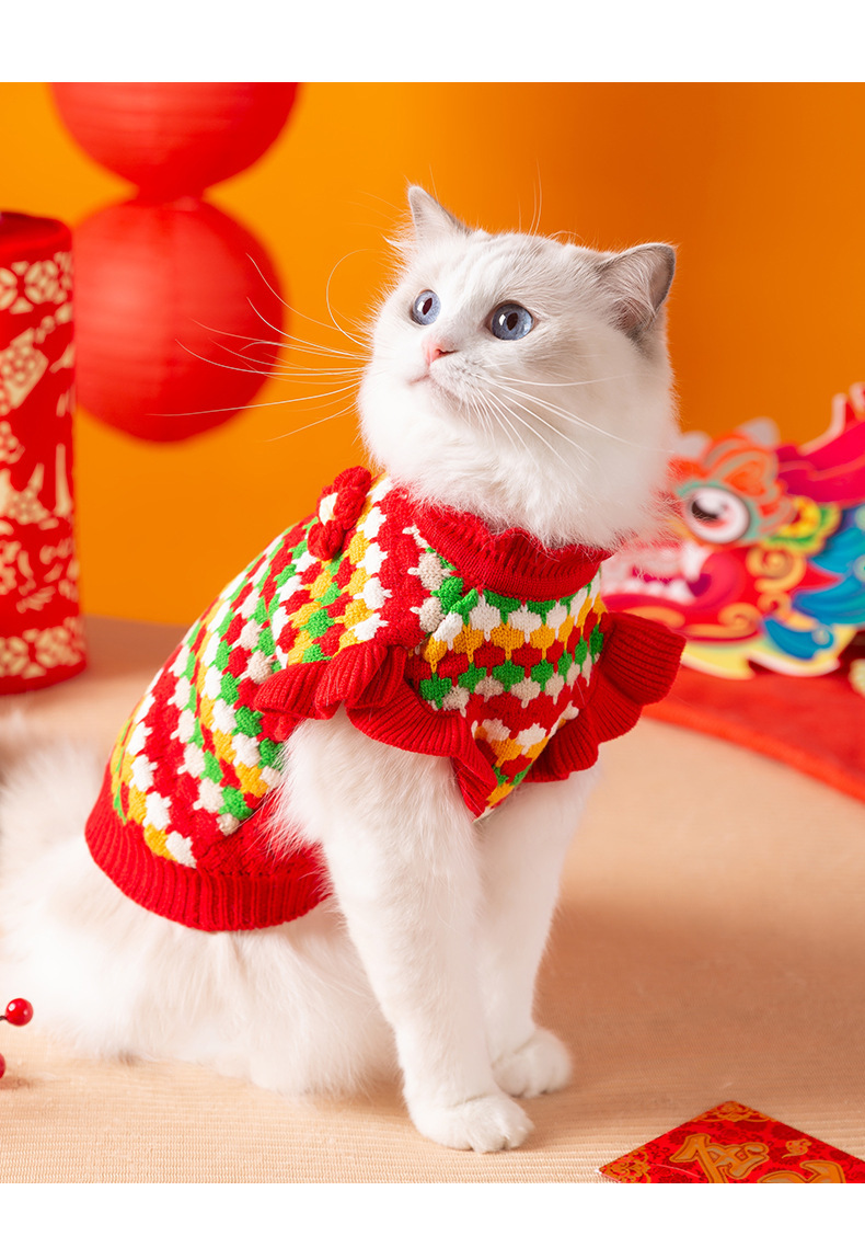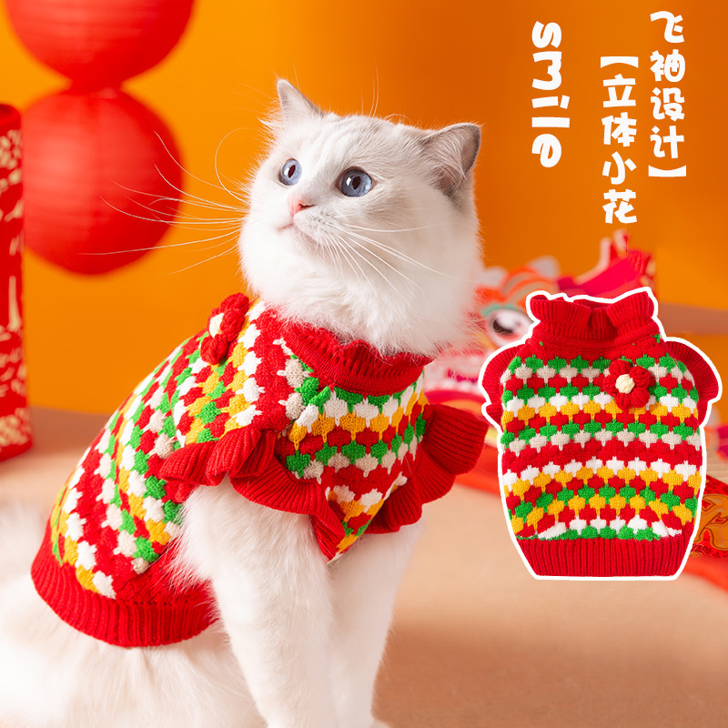 Осенняя и зимняя кошачья одежда трехмерный маленький цветочный свитер