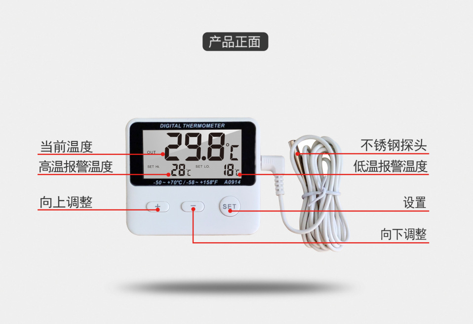 A0914 холодильник термометр двойной температуры дисплей внешний зонд с функцией сигнализации температуры мигает с магнитом