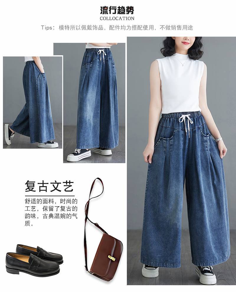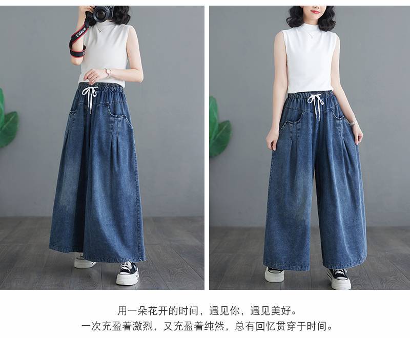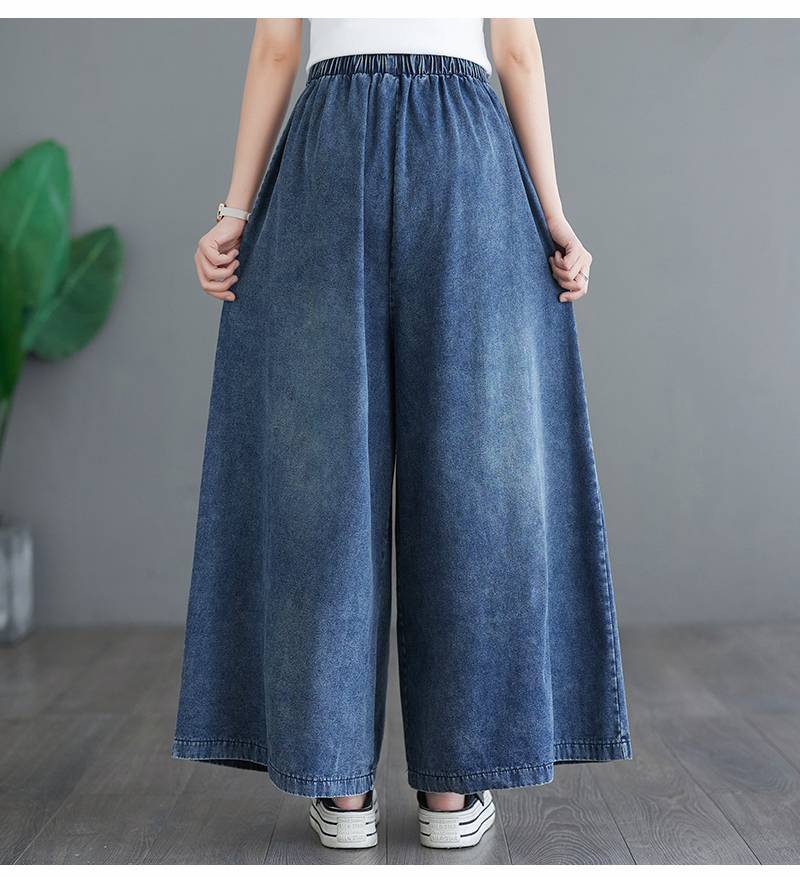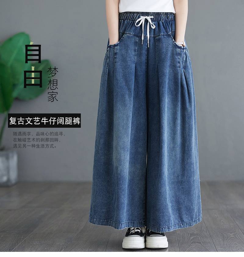 Реальная стрельба ретро жареные джинсовые широкие брюки женские новые высокие талии свободные тонкие повседневные брюки большого размера