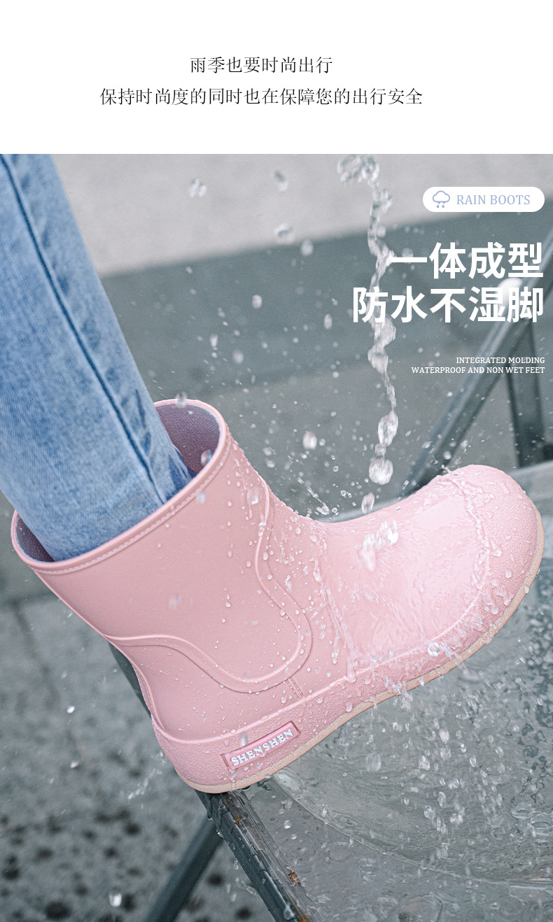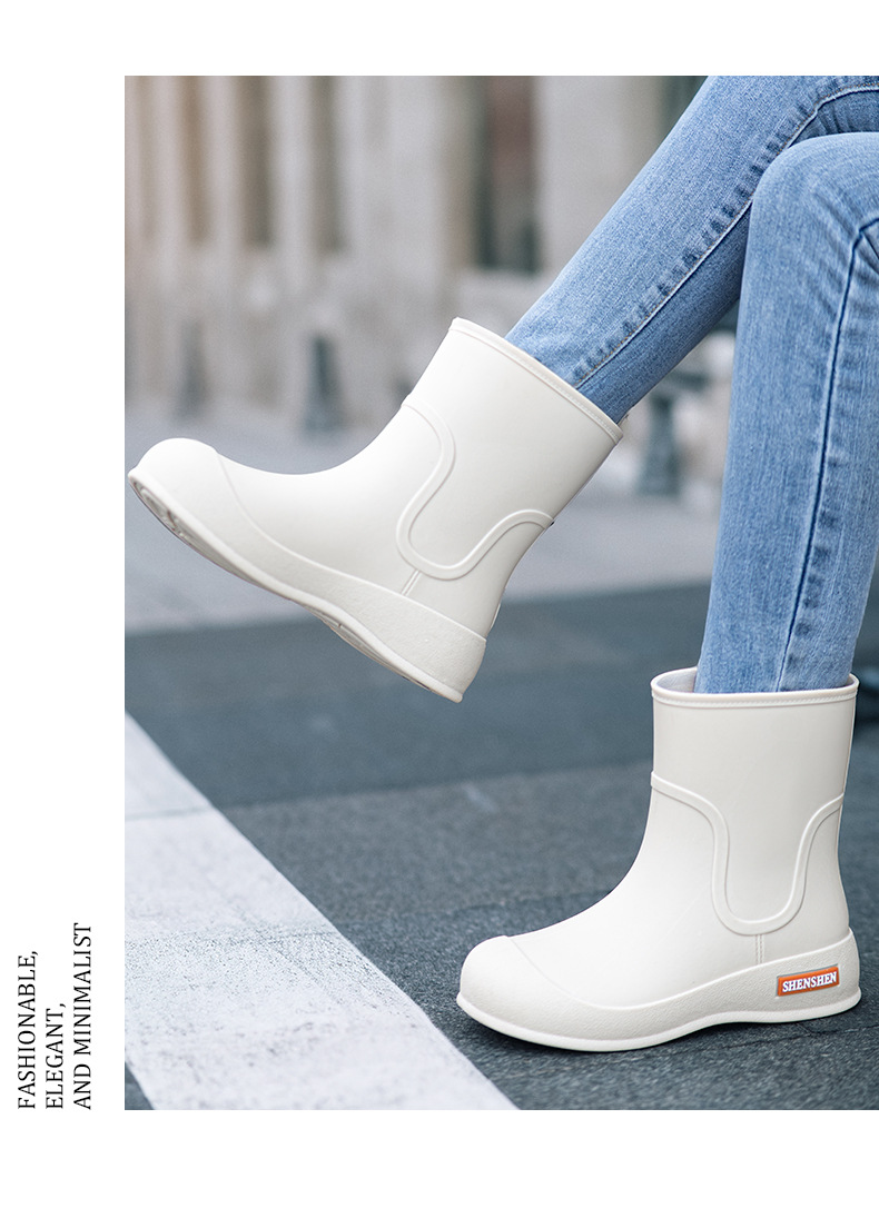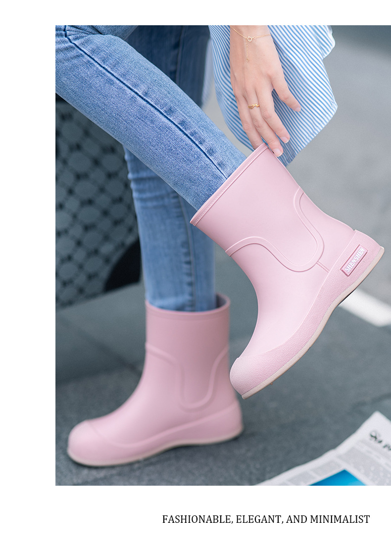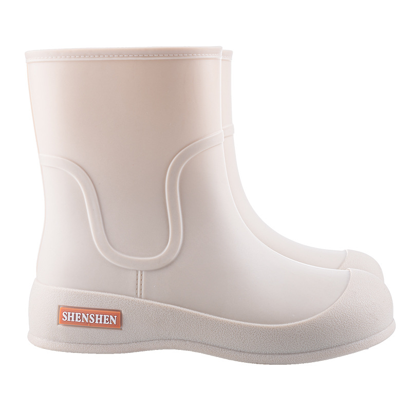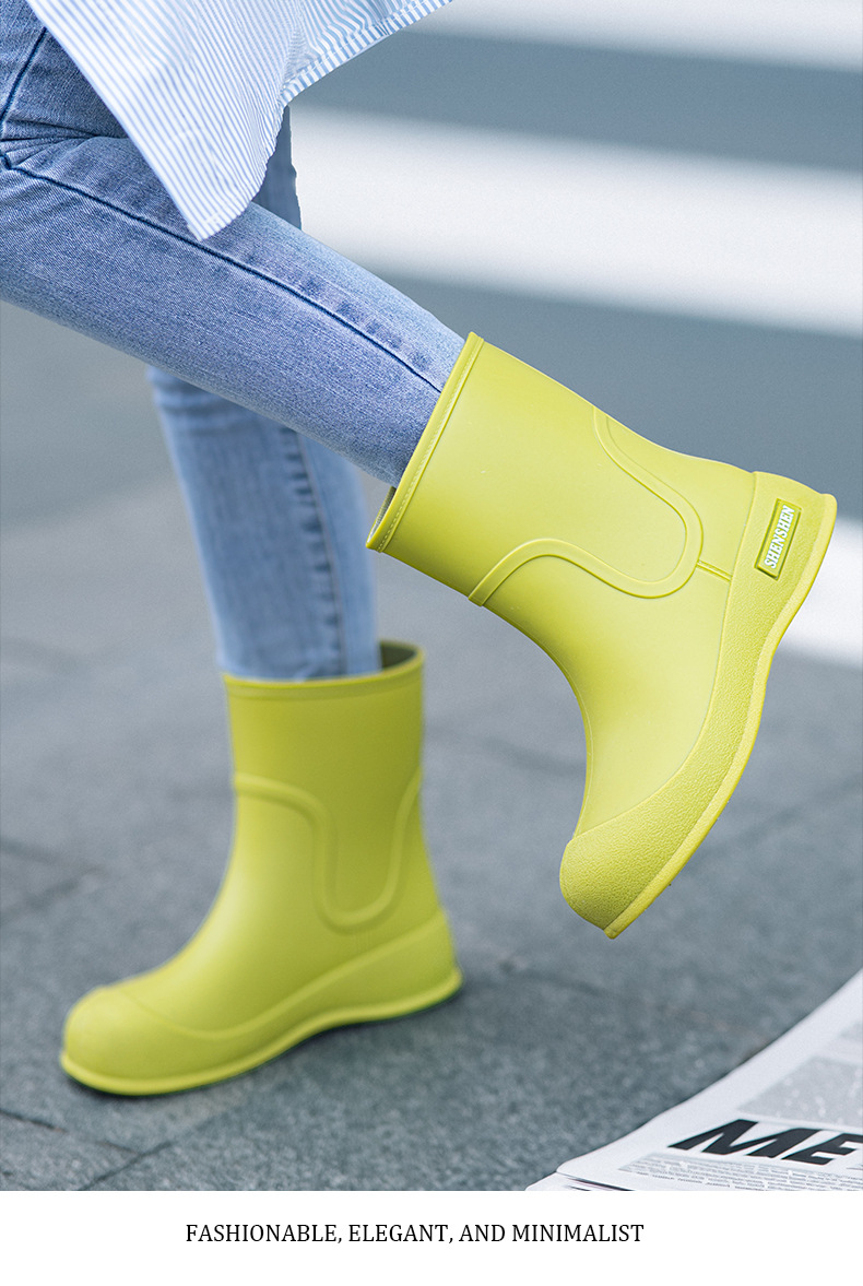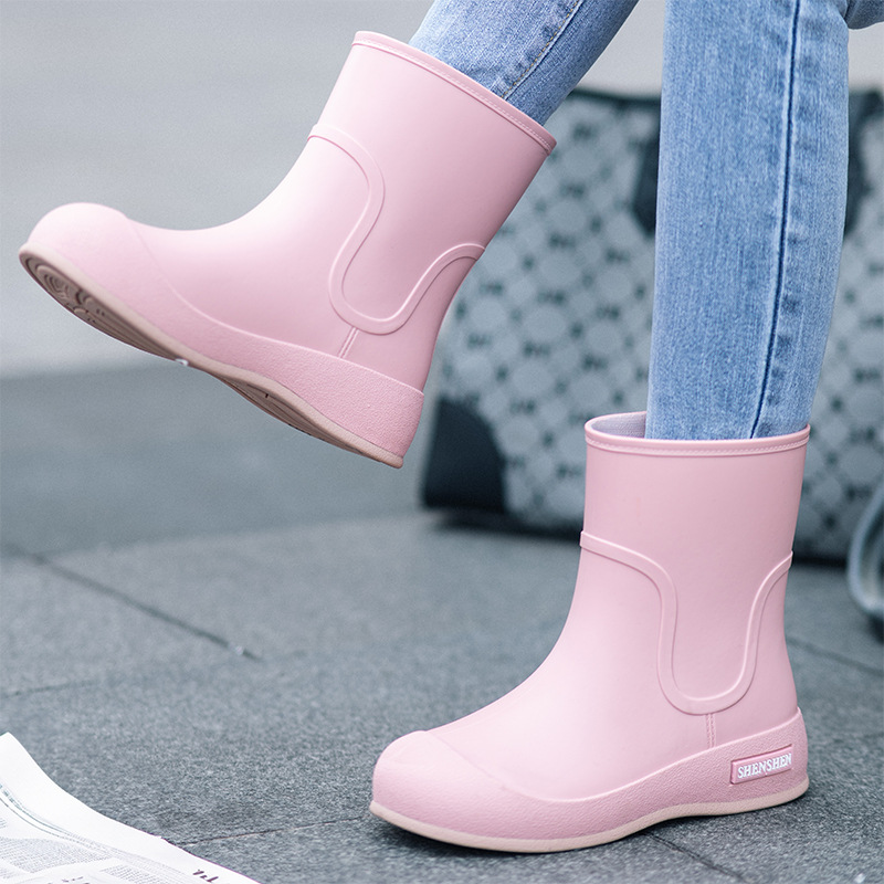 Новая водонепроницаемая обувь толстые дождевые сапоги женские дождевые сапоги студенческие резиновые туфли средняя корейская мода нескользящие и износостойкие короткие трубки