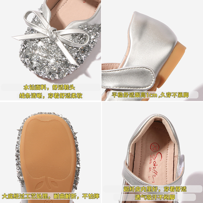 Хрустальные туфли для девочек 2024 весна и осень новые туфли принцессы Аиши маленькие кожаные туфли для детей мягкая подошва маленькая принцесса одиночные туфли