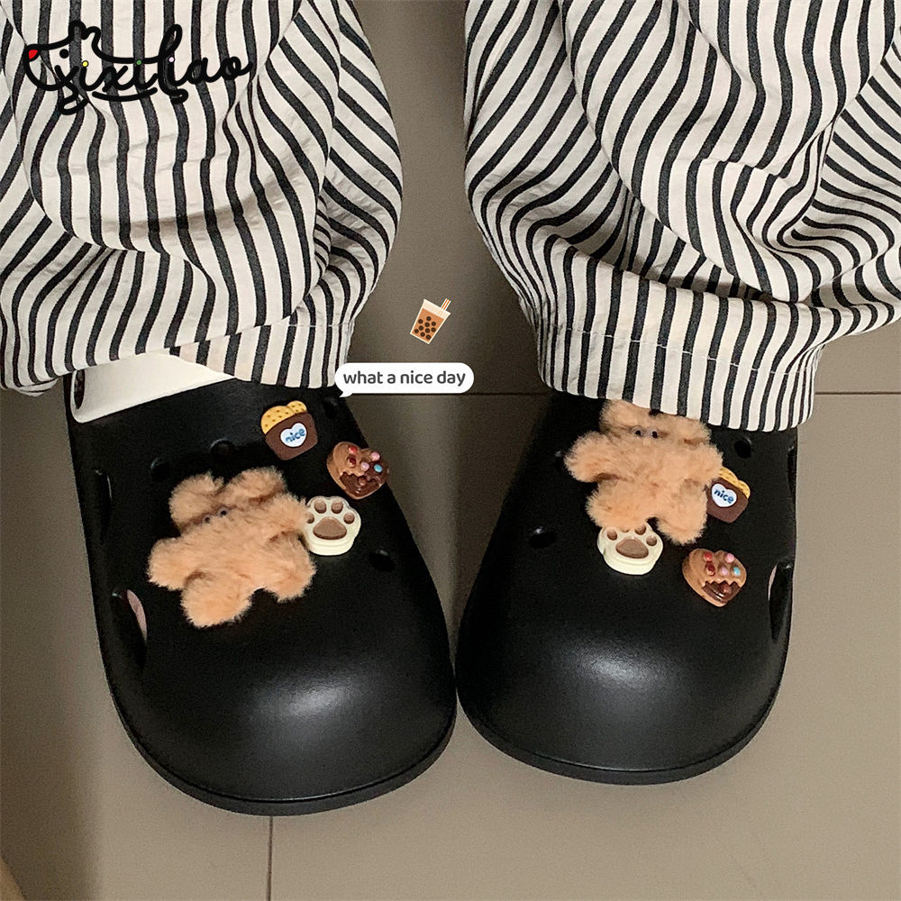 Веселые ins коричневые кроличьи пещерные туфли на открытом воздухе модные повседневные персонализированные удобные пляжные туфли летние сандалии леди