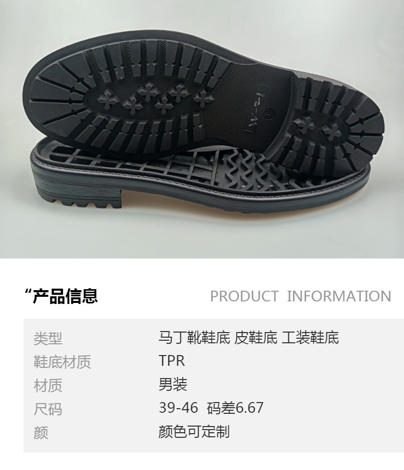 Dongguan сила обувная подошва фабрика производит оптовую продажу ботинок TPR Martin повседневная кожаная подошва модная бизнес-подошва