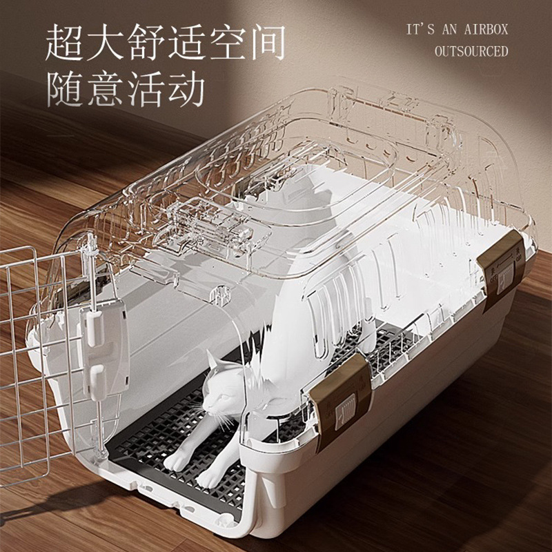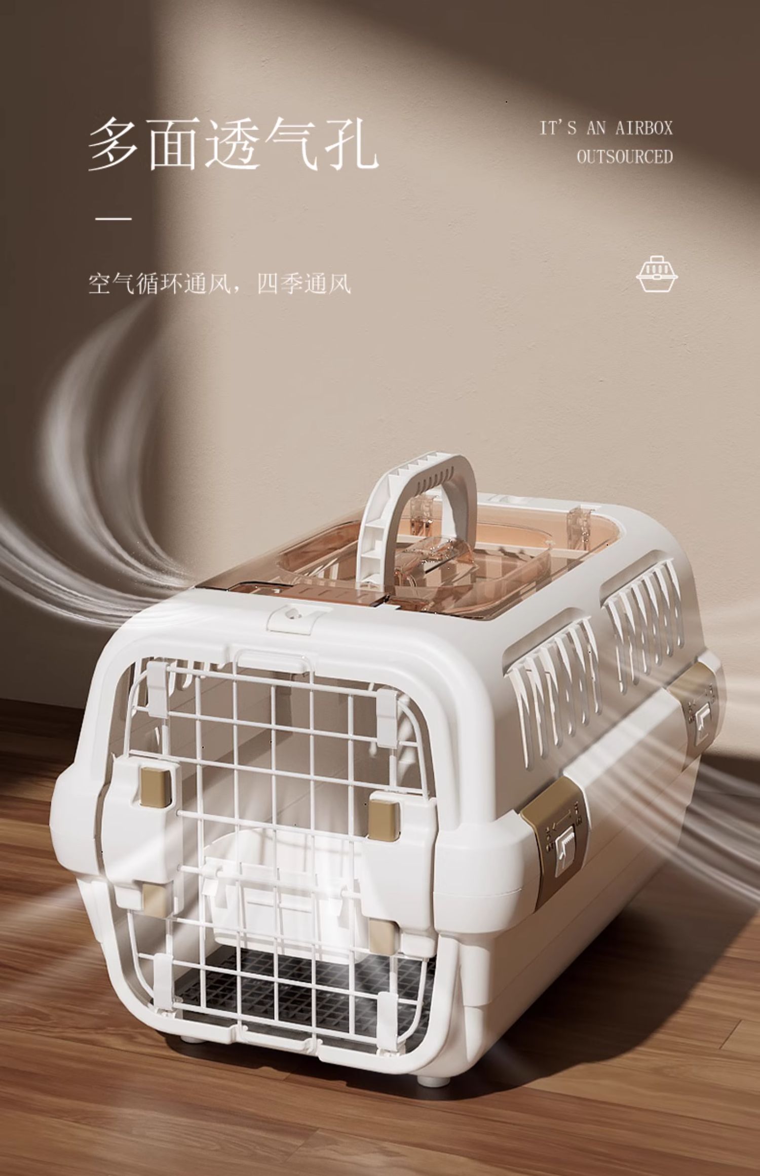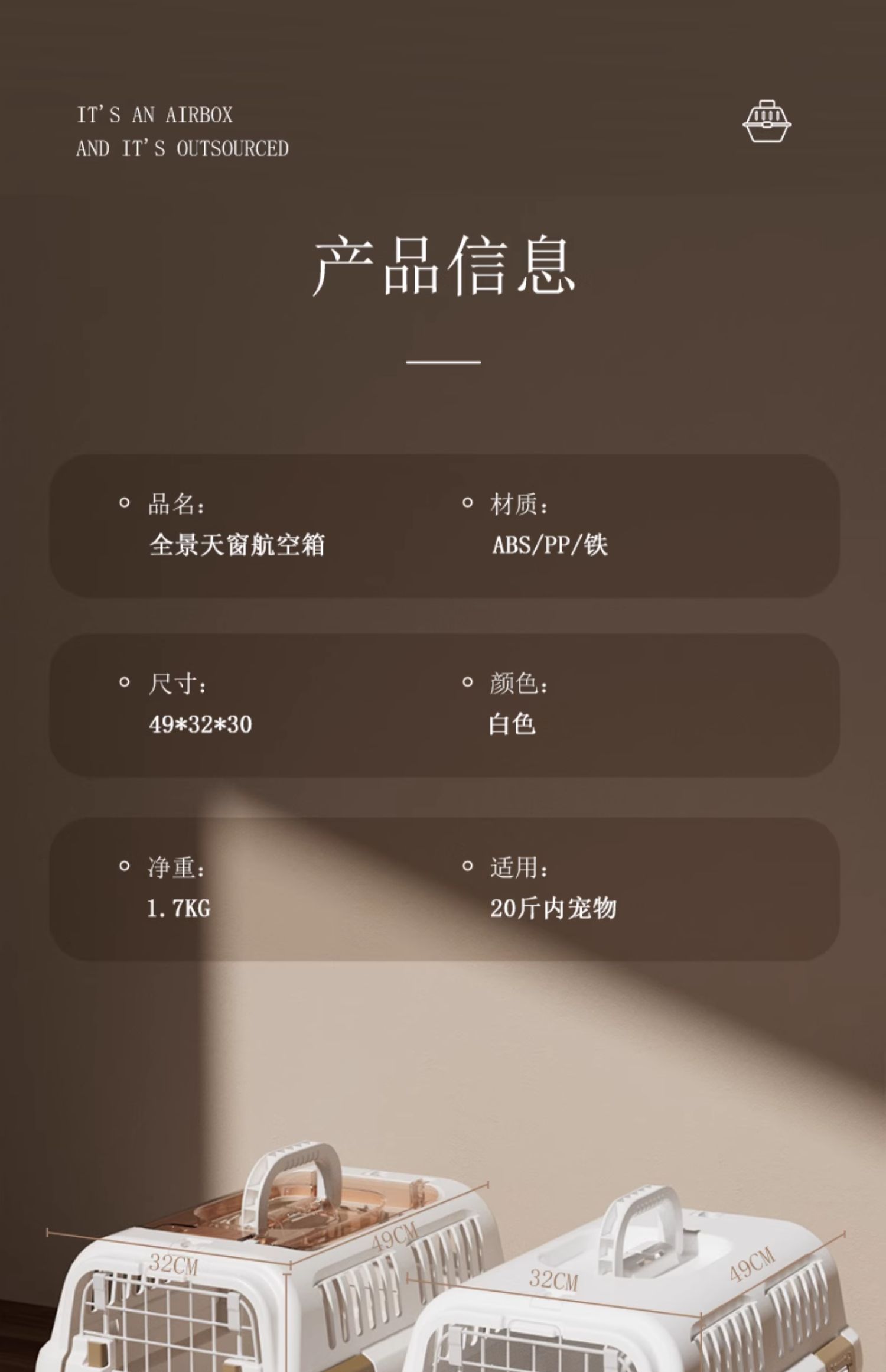【品名】:HOOPET奶白色宠物航空箱(天窗版/普通版)/奶白色宠物航空箱大号(天窗版)