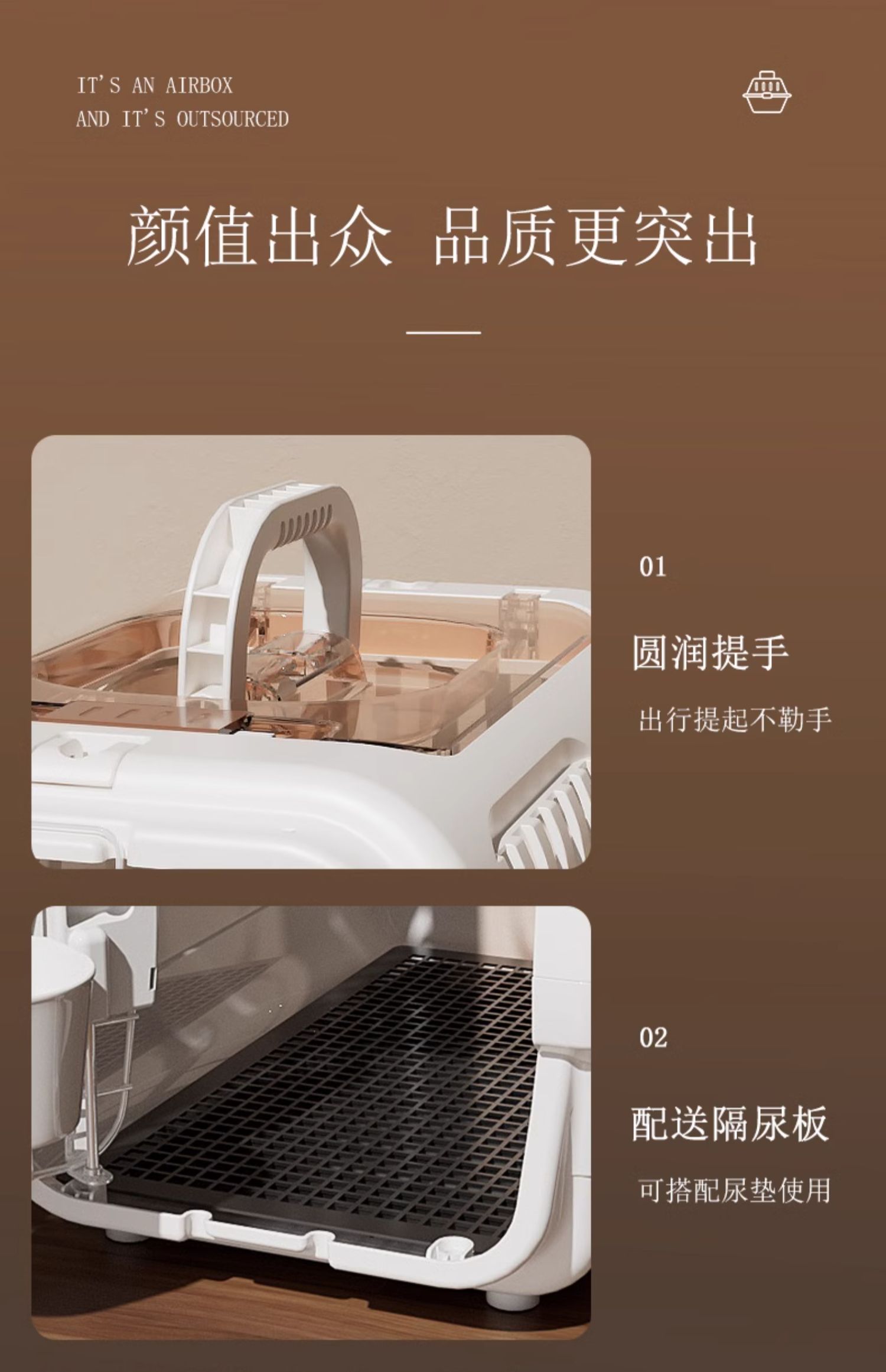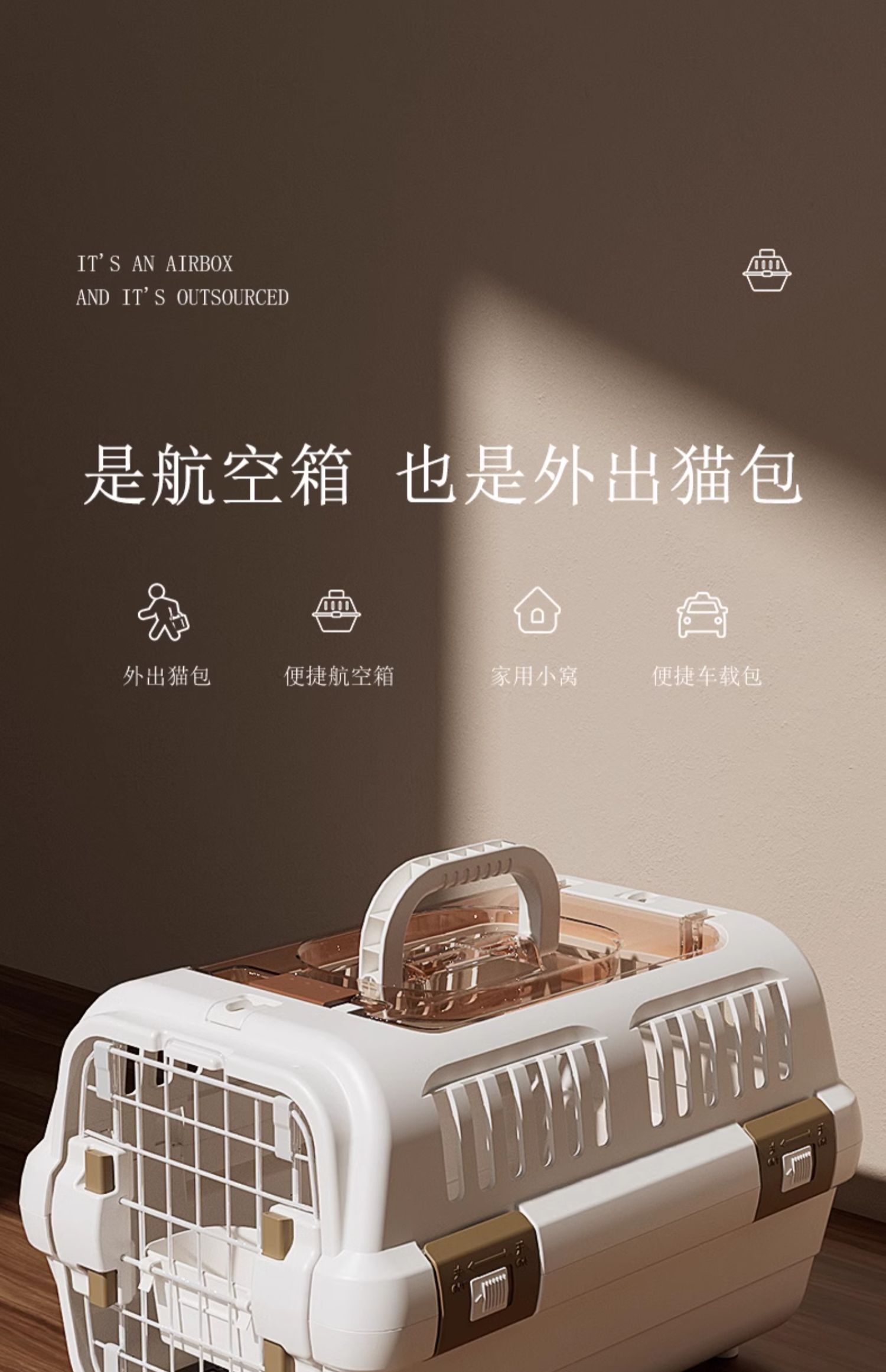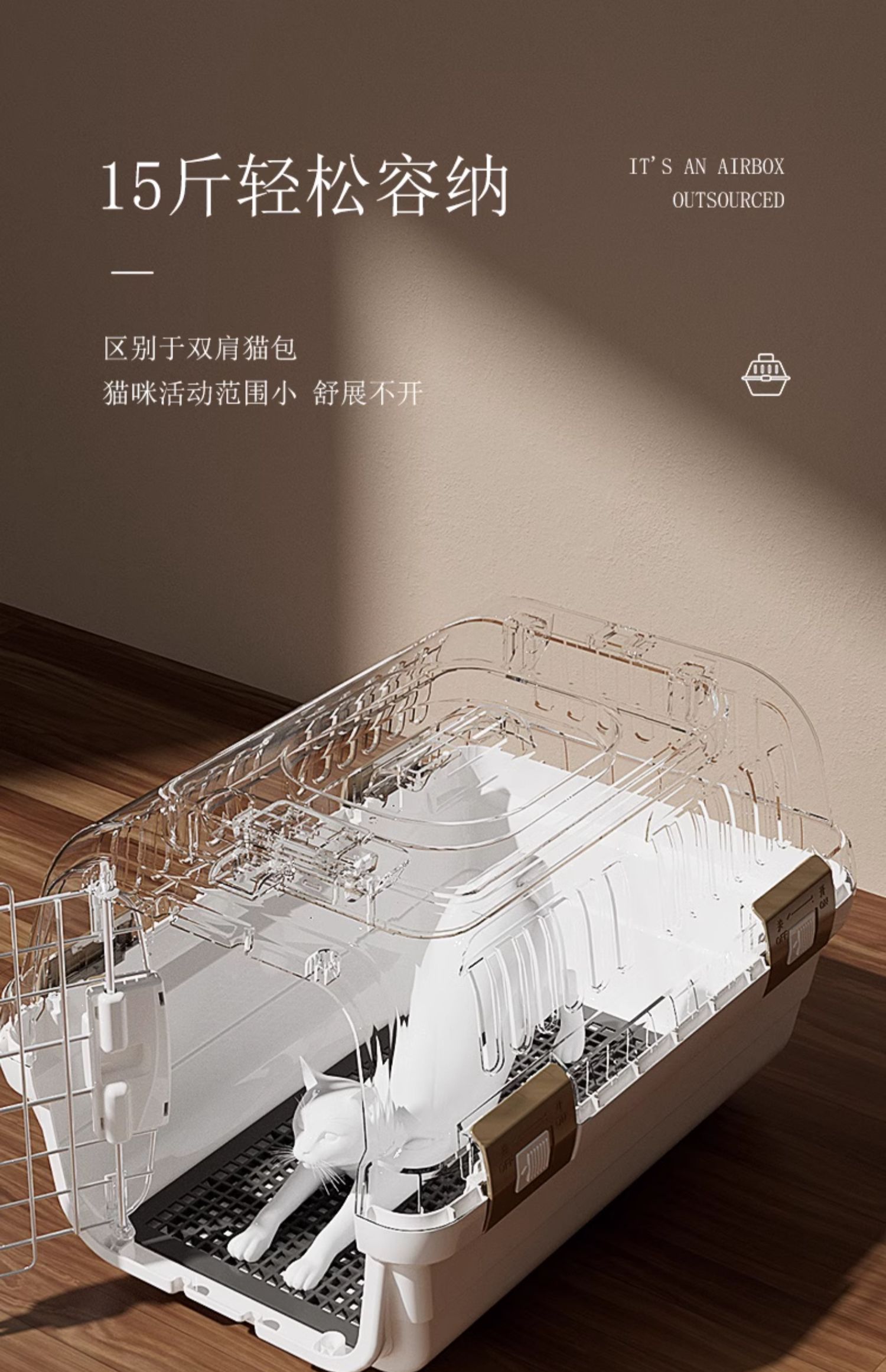 【品名】:HOOPET奶白色宠物航空箱(天窗版/普通版)/奶白色宠物航空箱大号(天窗版)