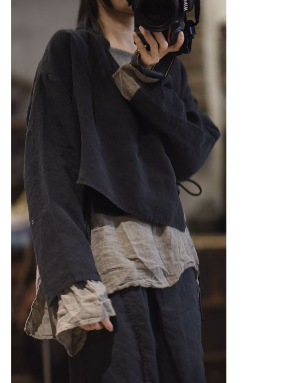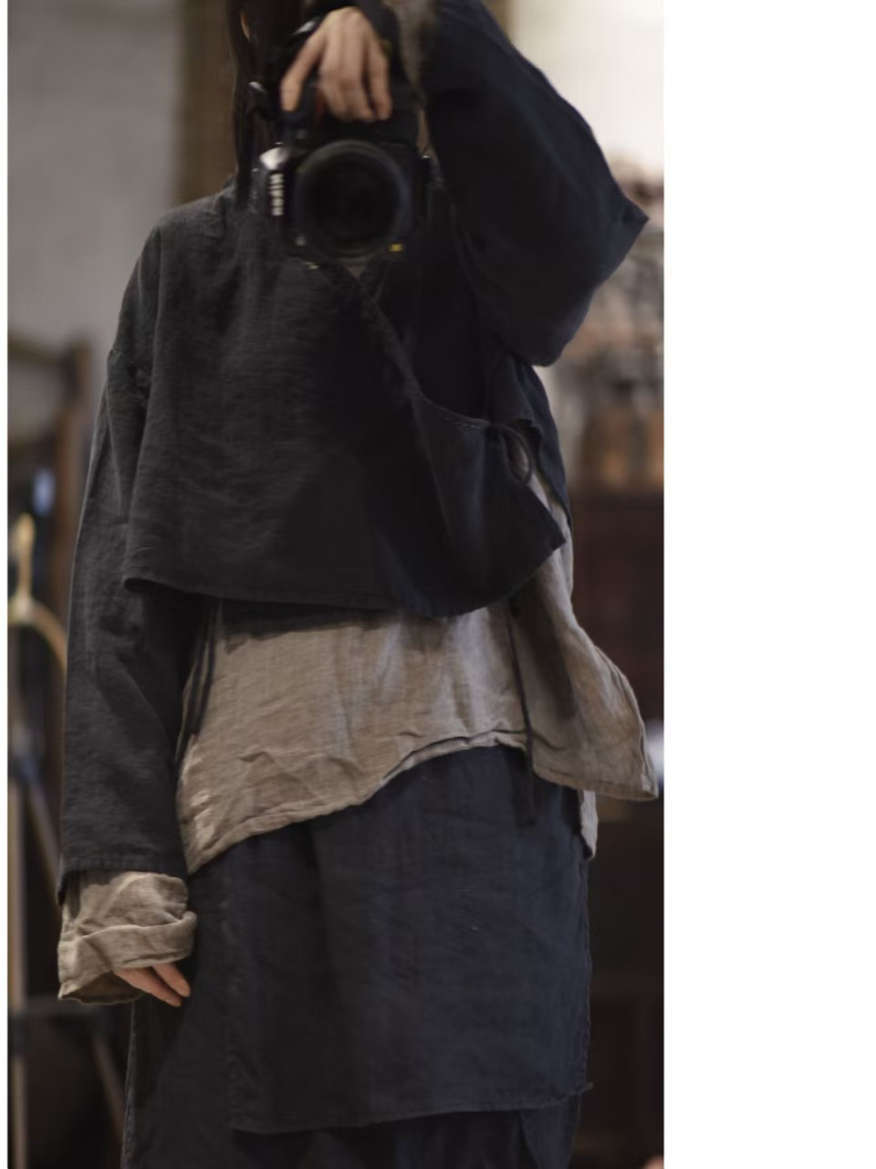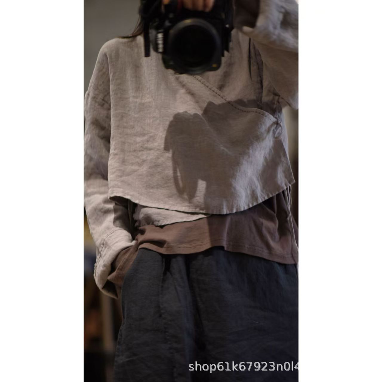 22/7 Sangzi Ранняя осень, ретро, льняный воротник, вертикальный сшнуровка