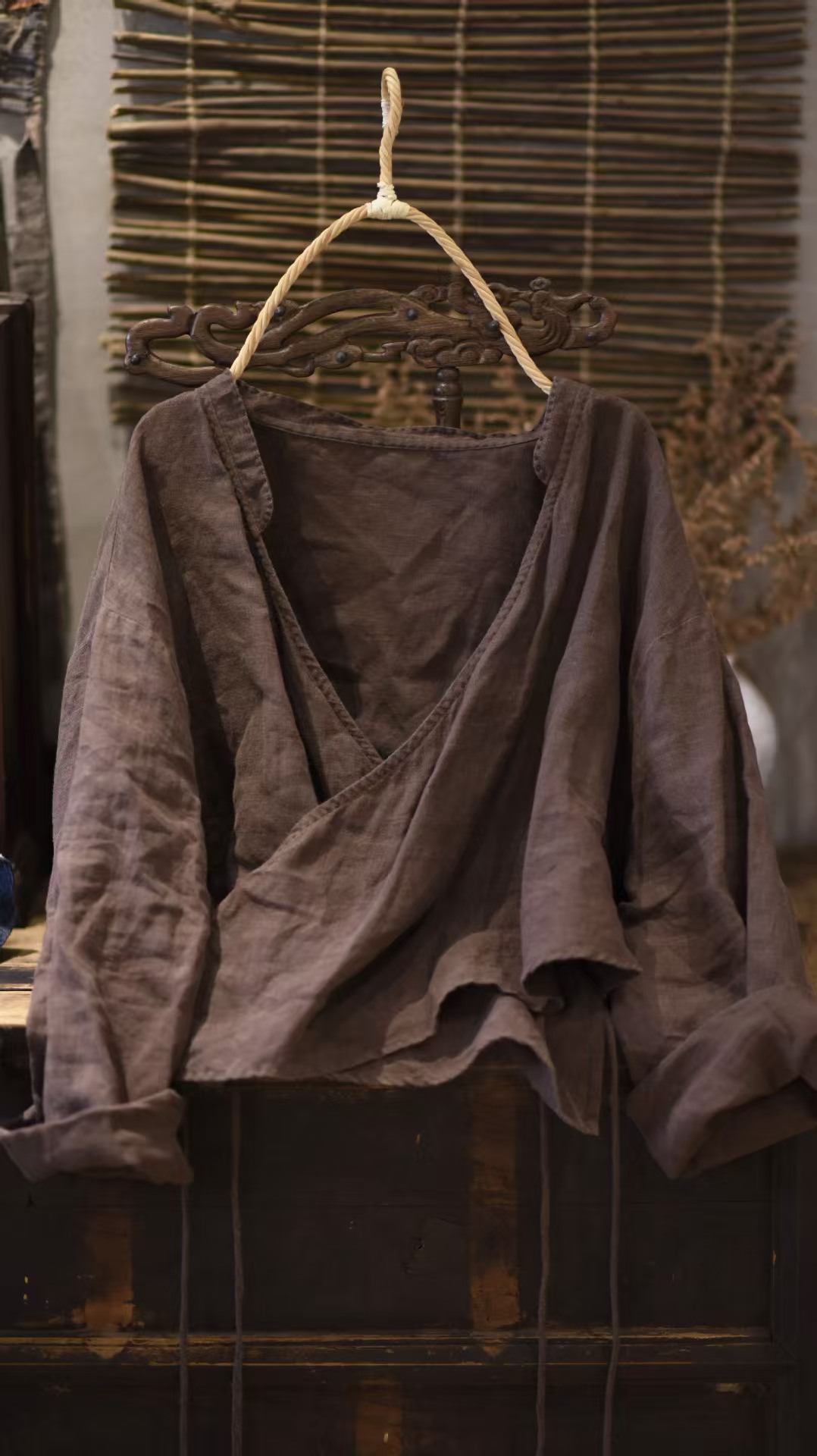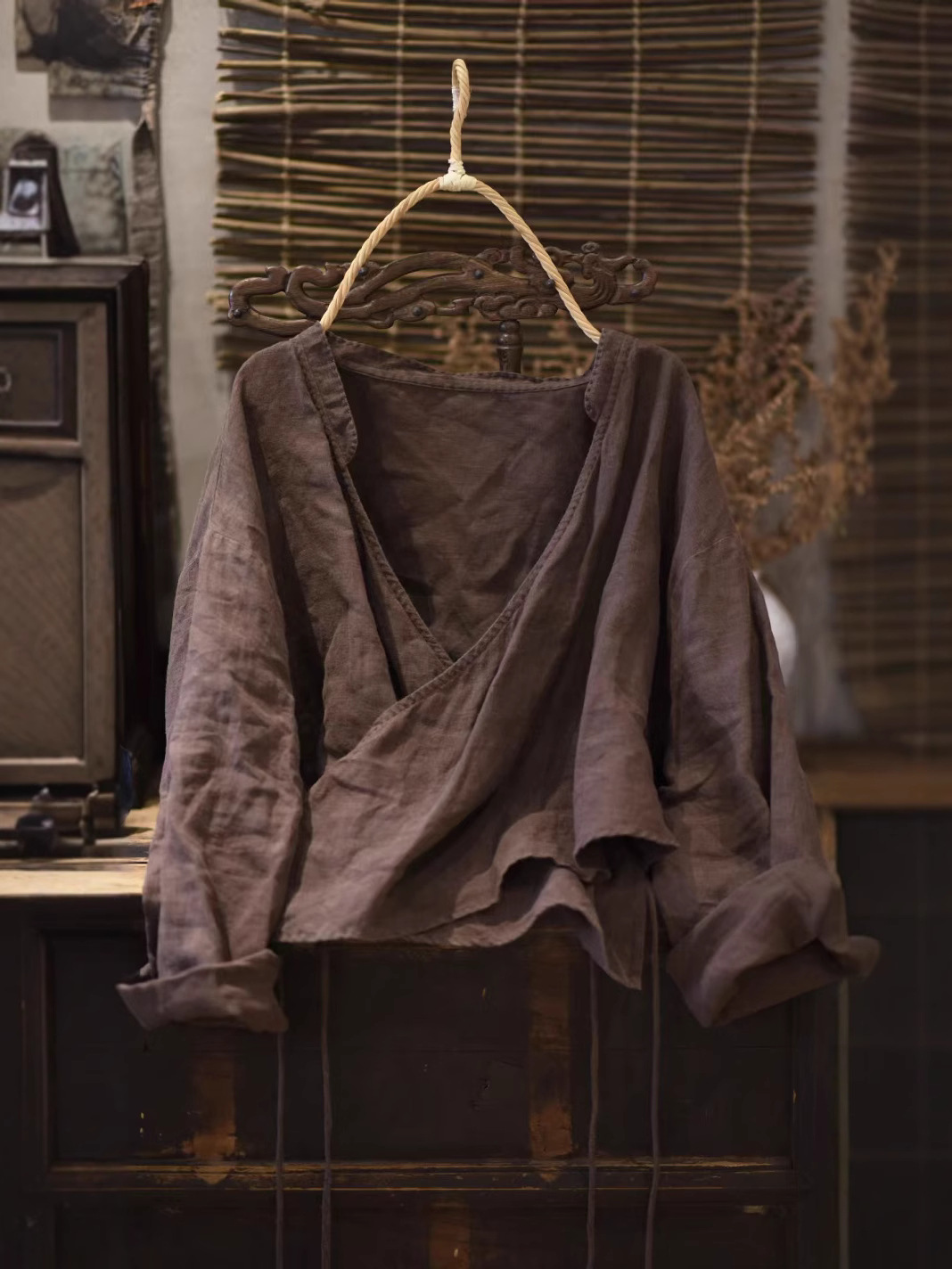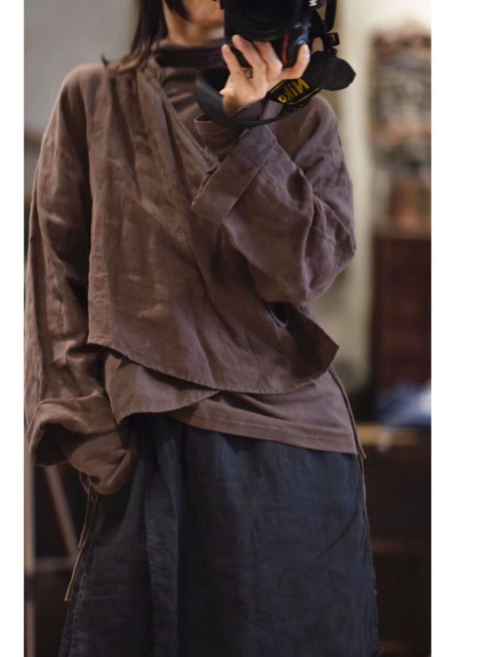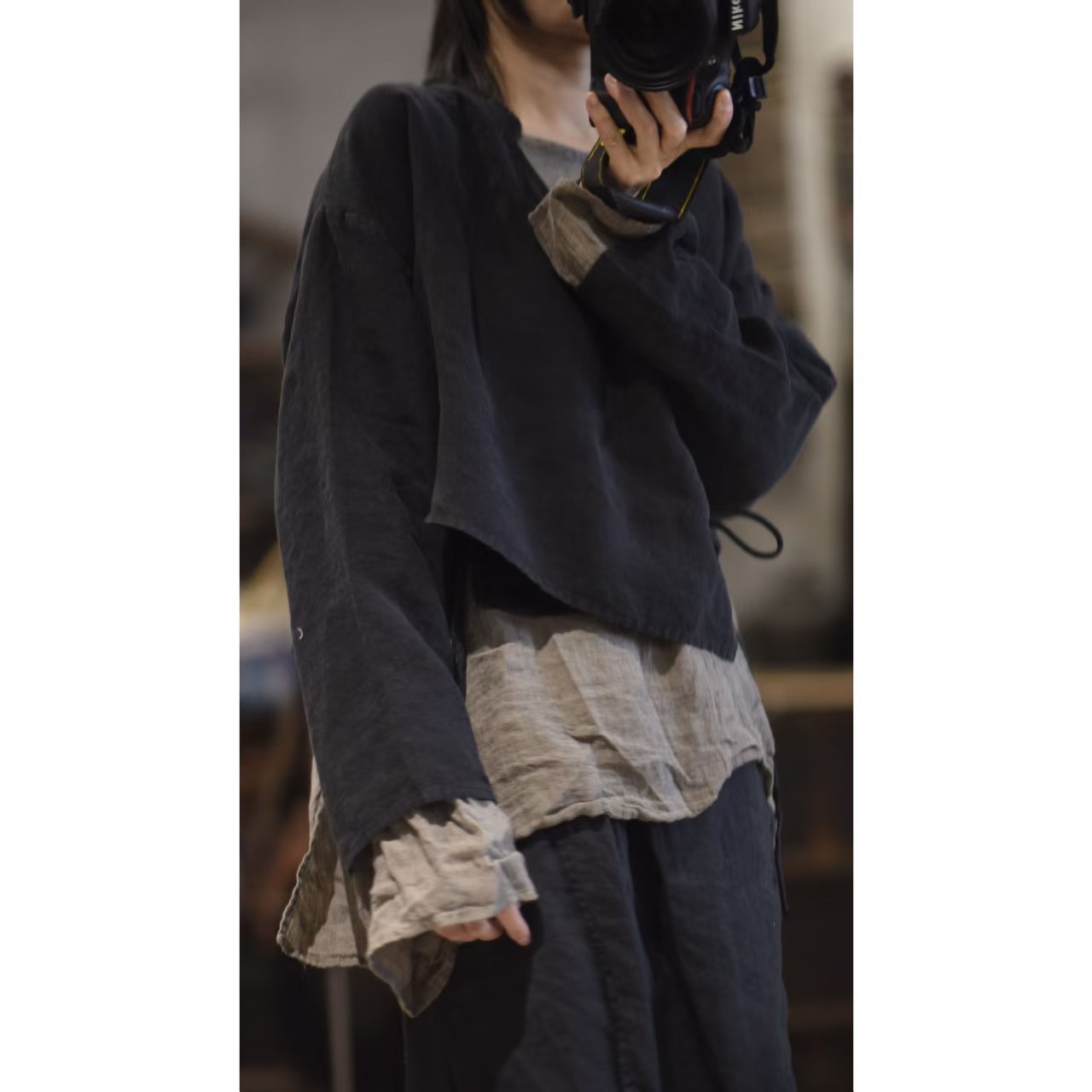 22/7 Sangzi Ранняя осень, ретро, льняный воротник, вертикальный сшнуровка