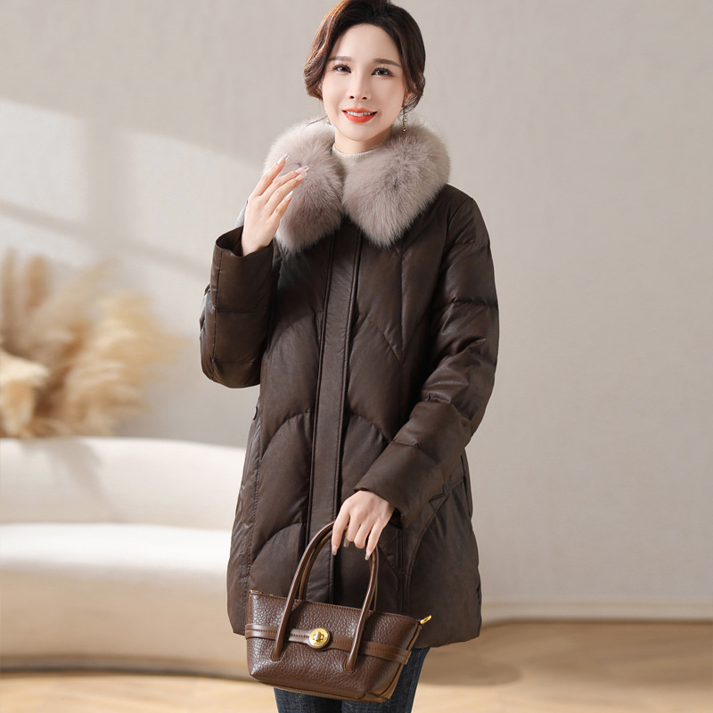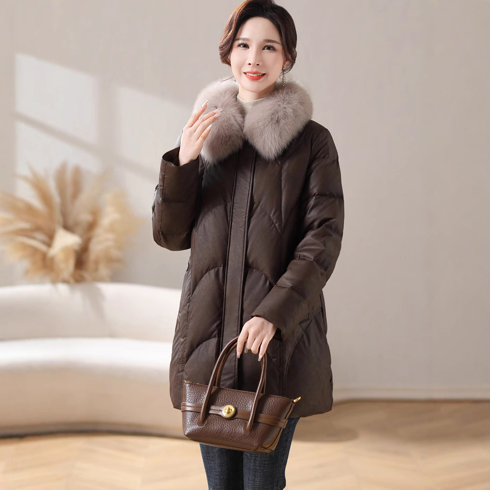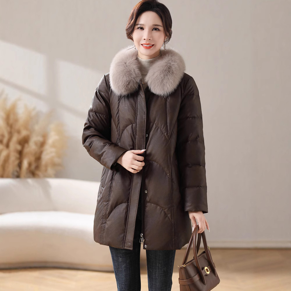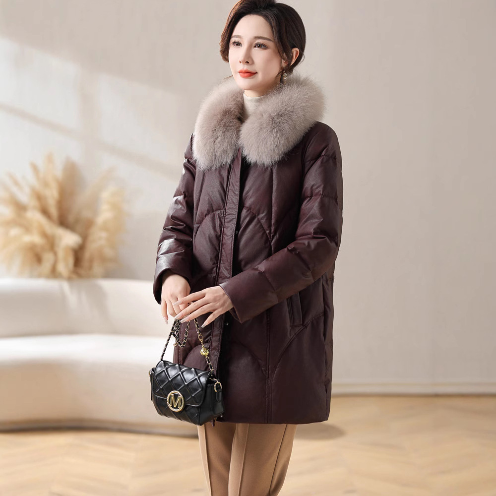 Мама высококачественный пуховик средней и длинной зимней кожаной куртки