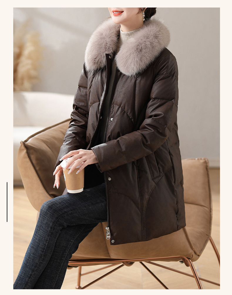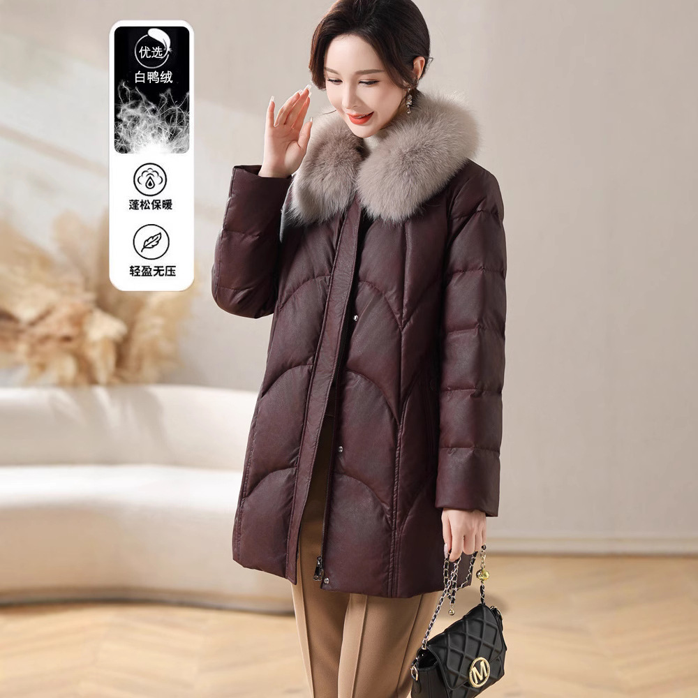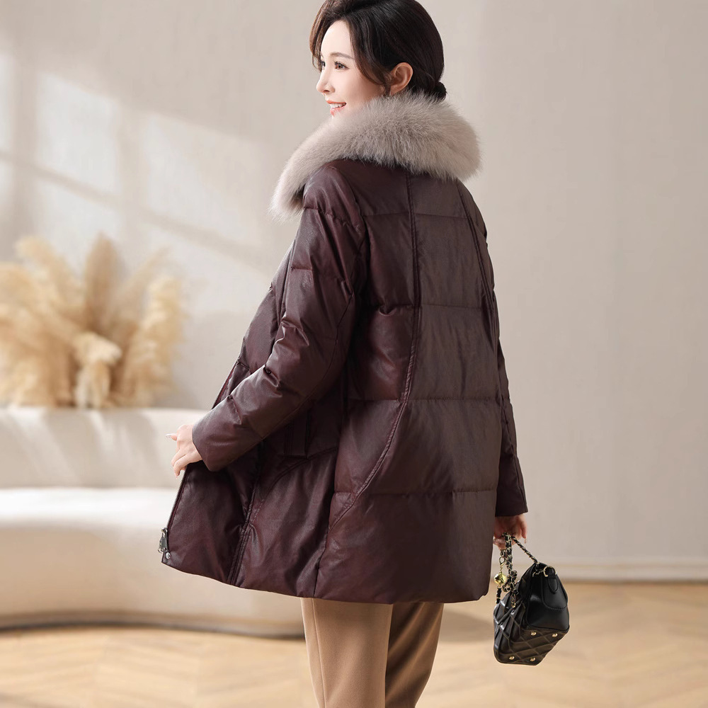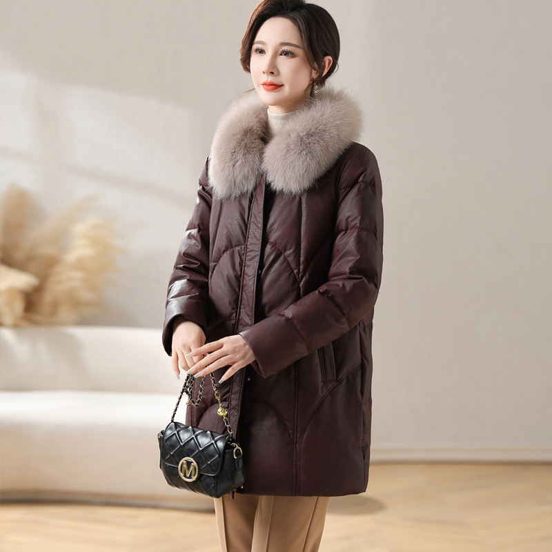 Мама высококачественный пуховик средней и длинной зимней кожаной куртки