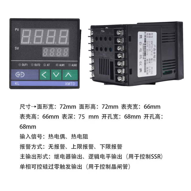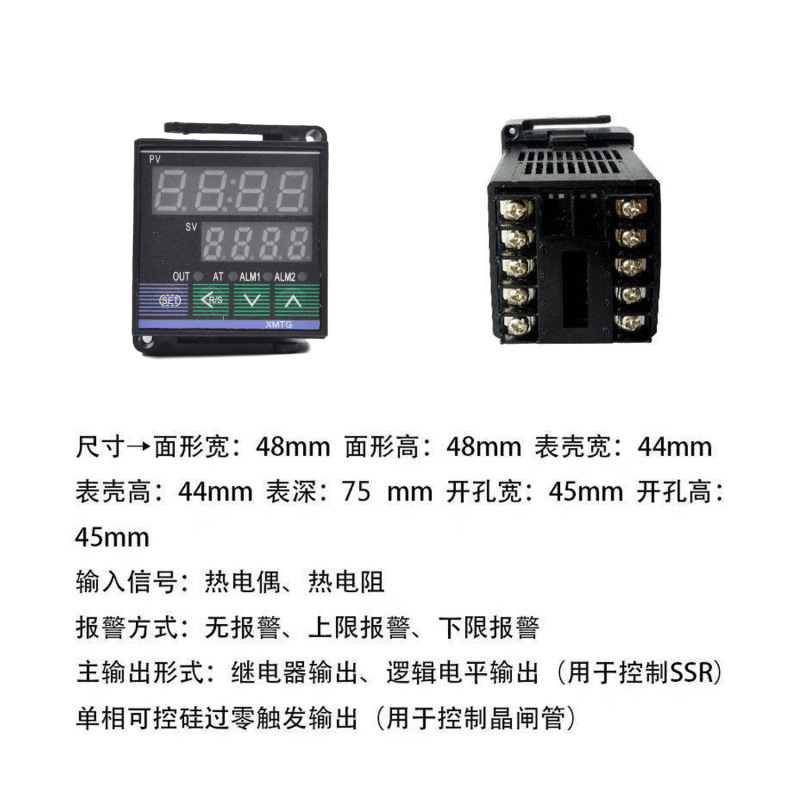 功能:主控输出为(继电器)和(固态直流12V)双输出,也就是可以用固态输出,也可以用继电器开关量输出,带PID控制模式,