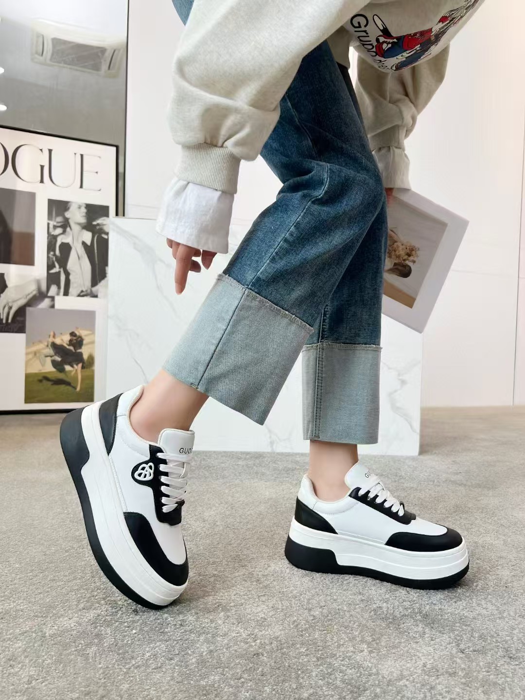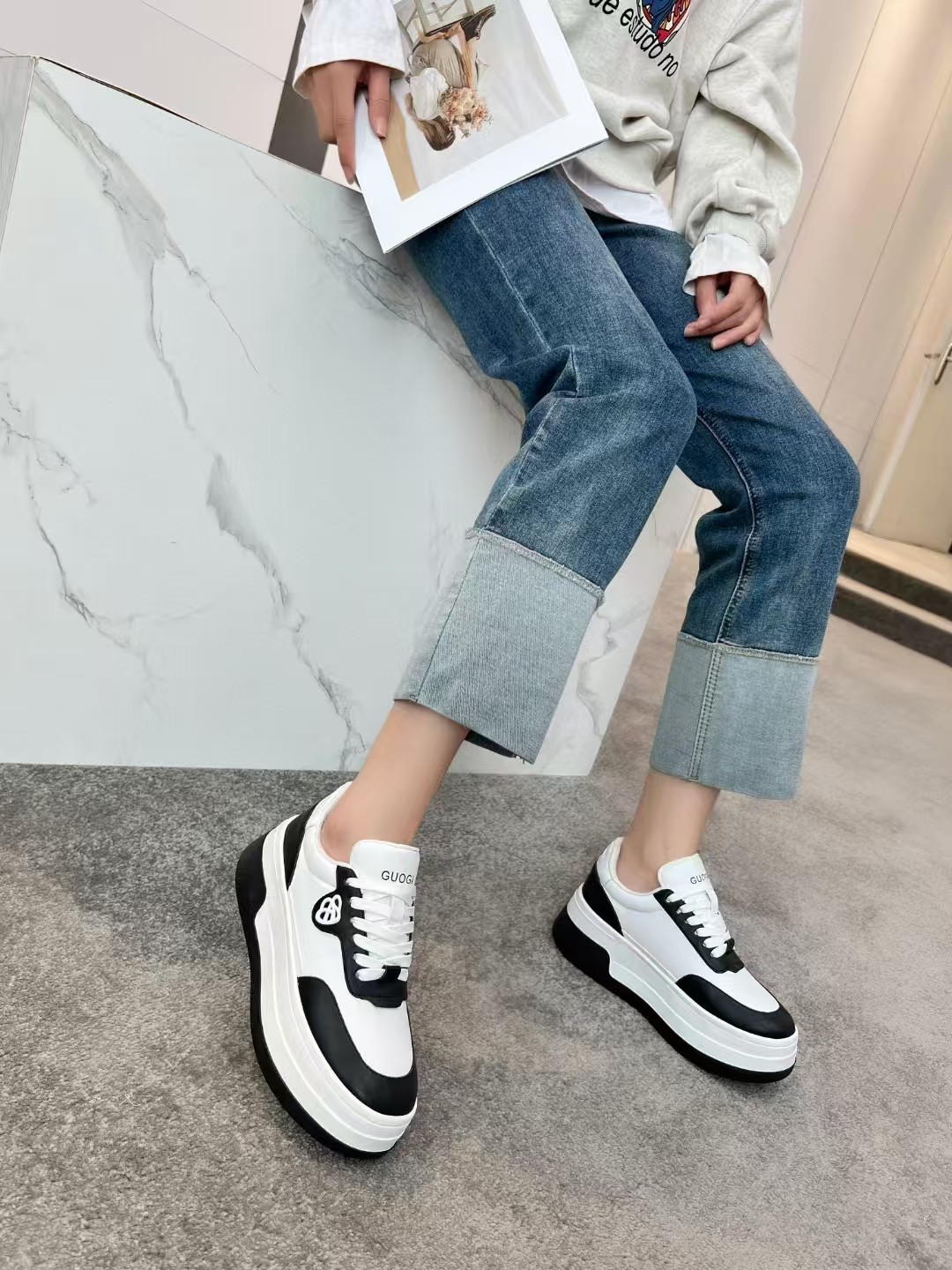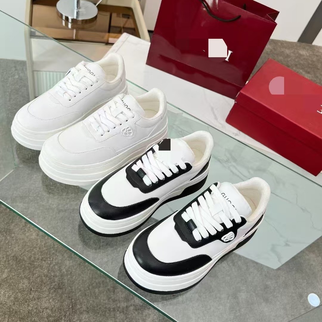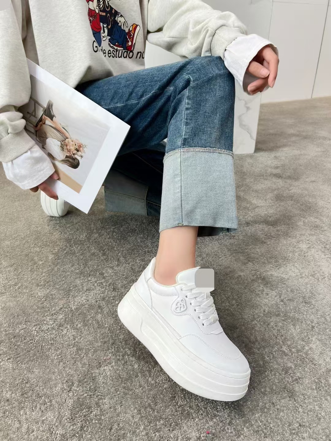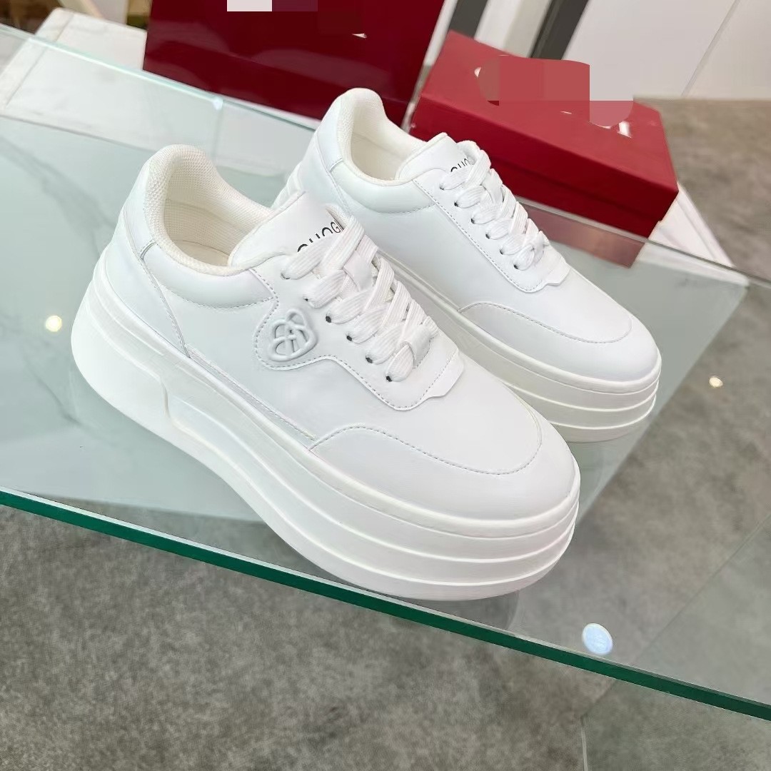 G Xiao White Shoes Женская Чжао Луси Та же модель толстой подошвы из натуральной кожи