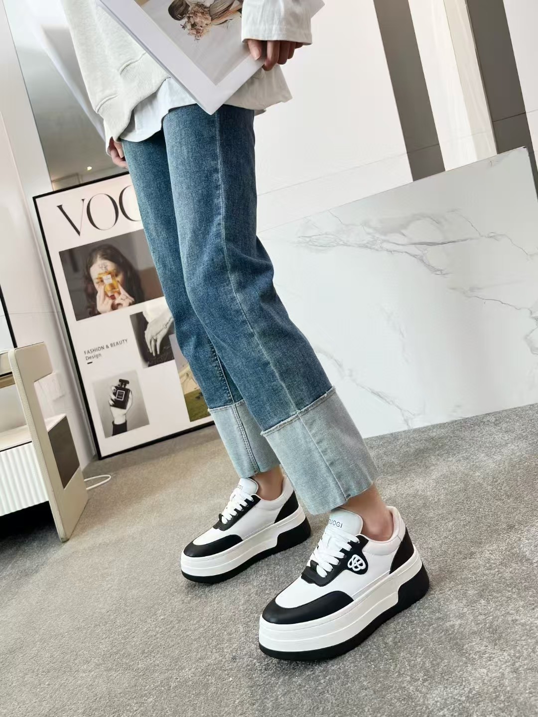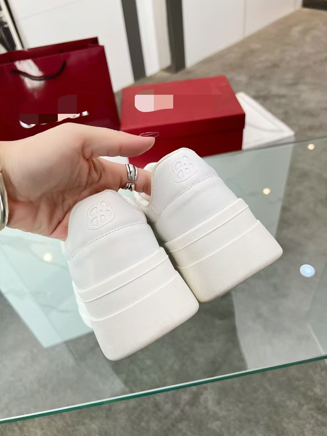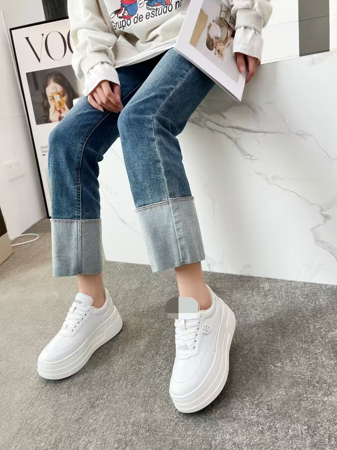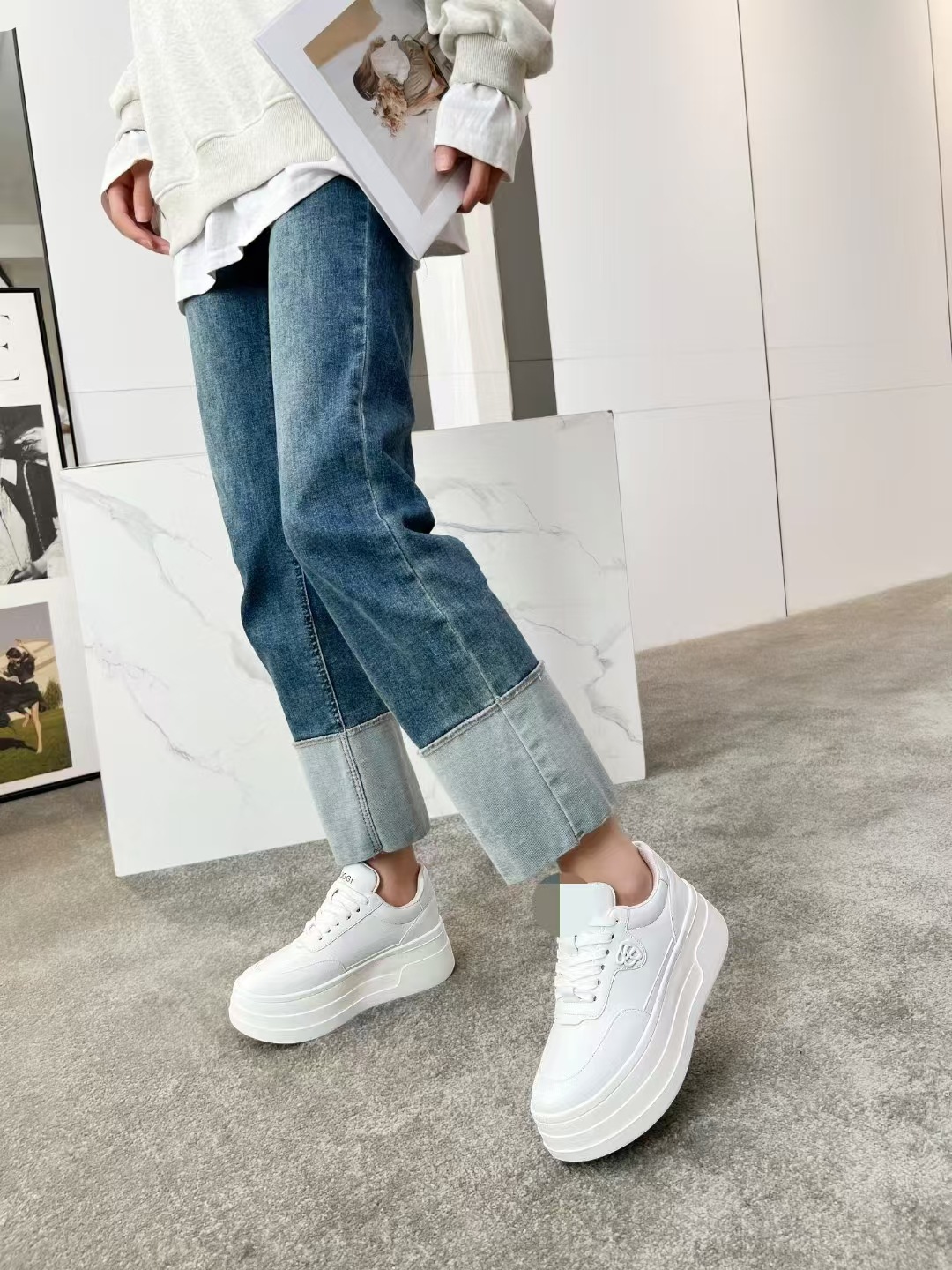 G Xiao White Shoes Женская Чжао Луси Та же модель толстой подошвы из натуральной кожи