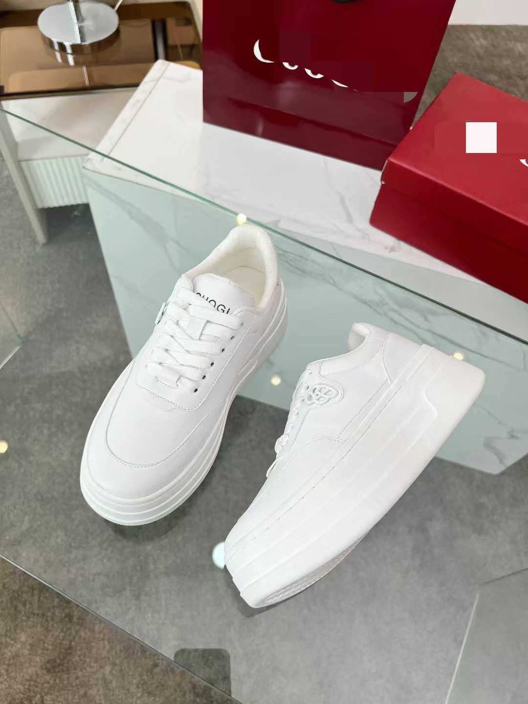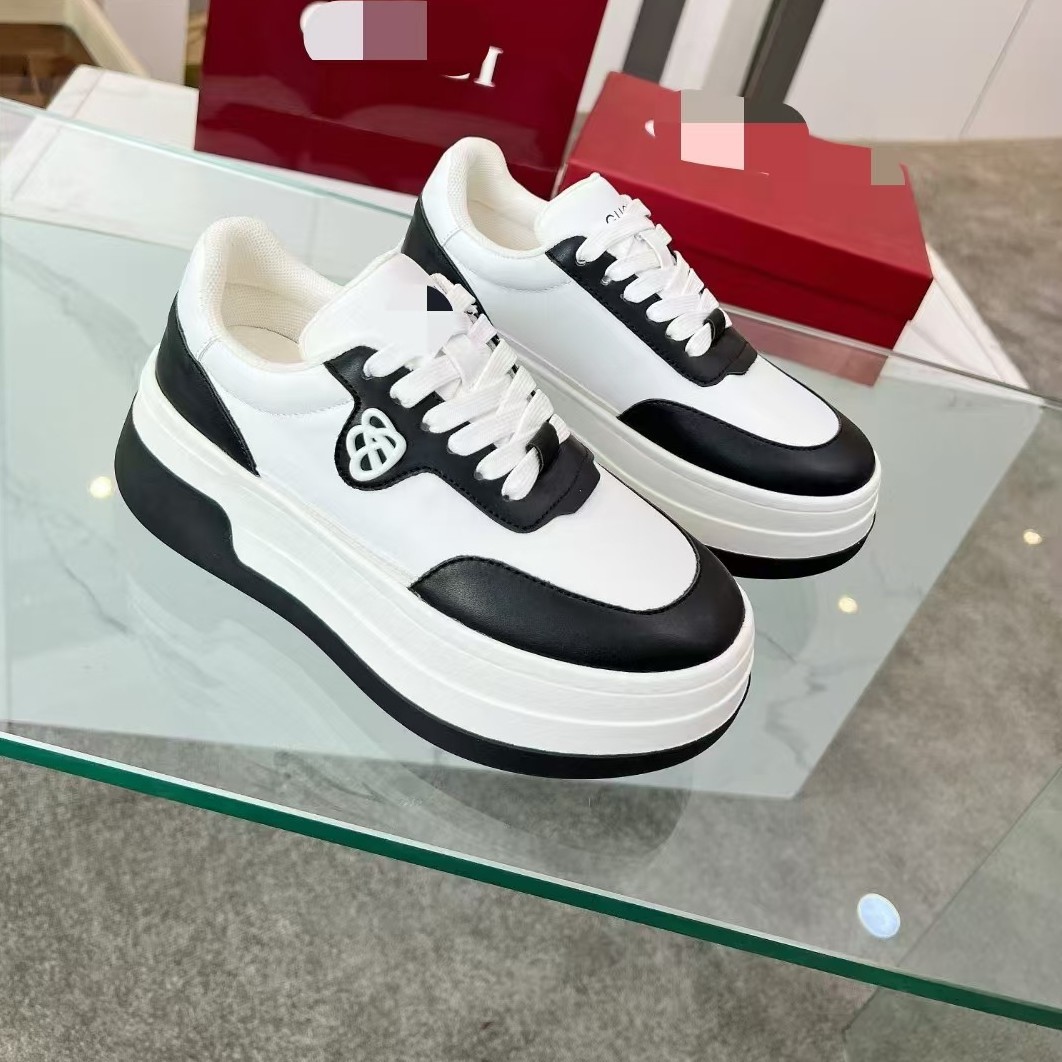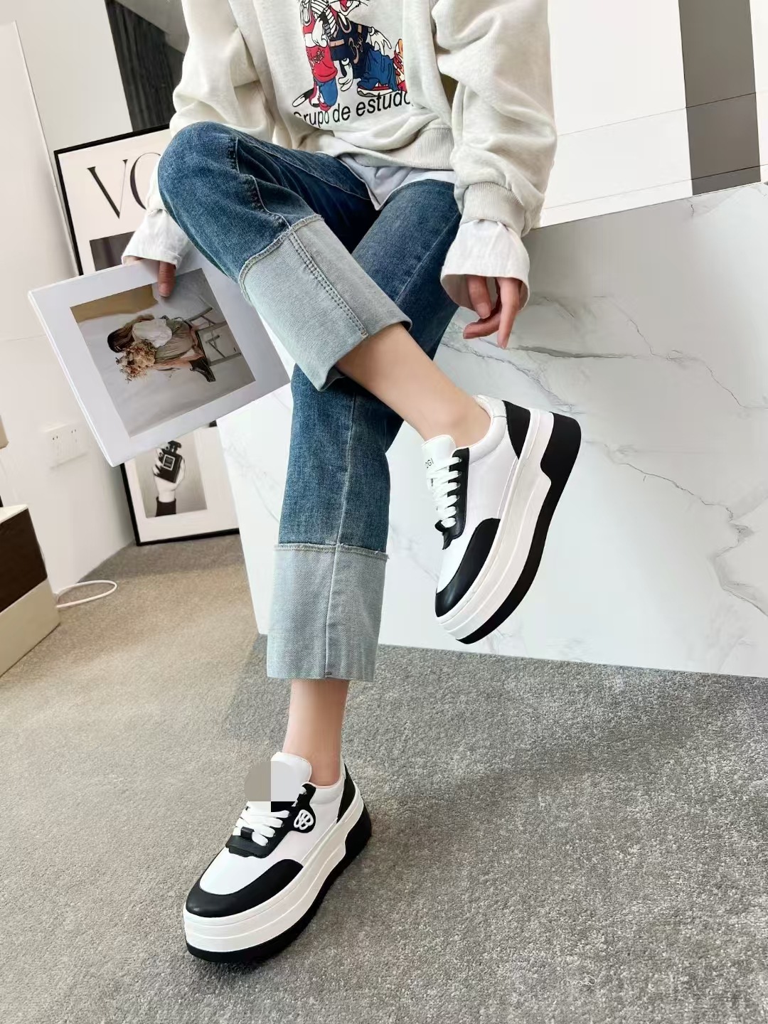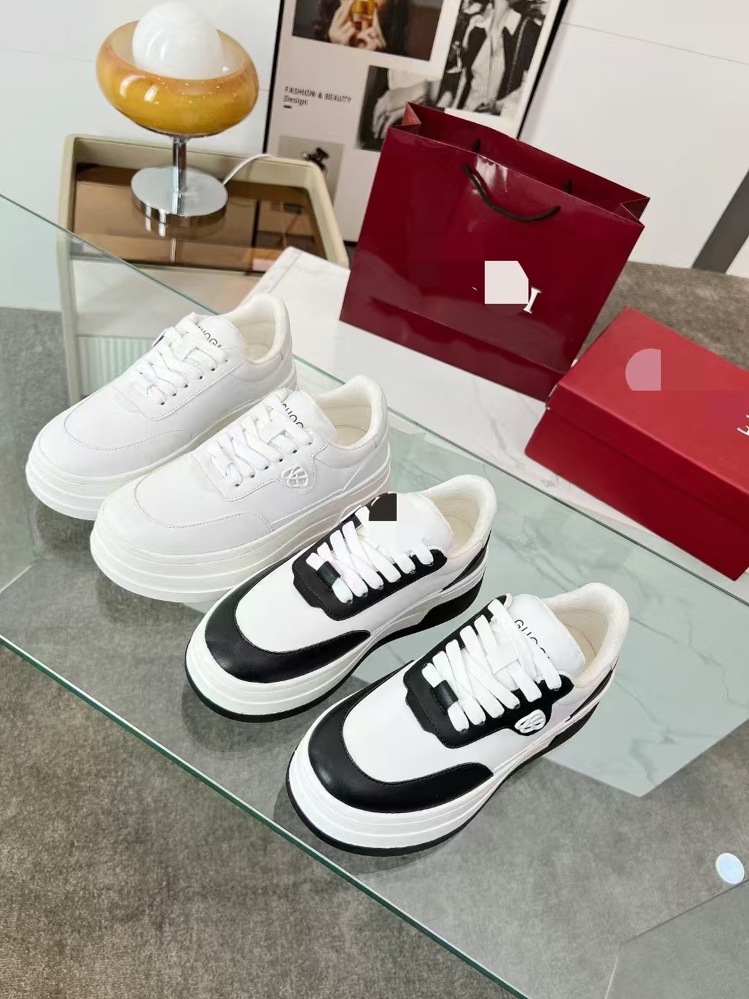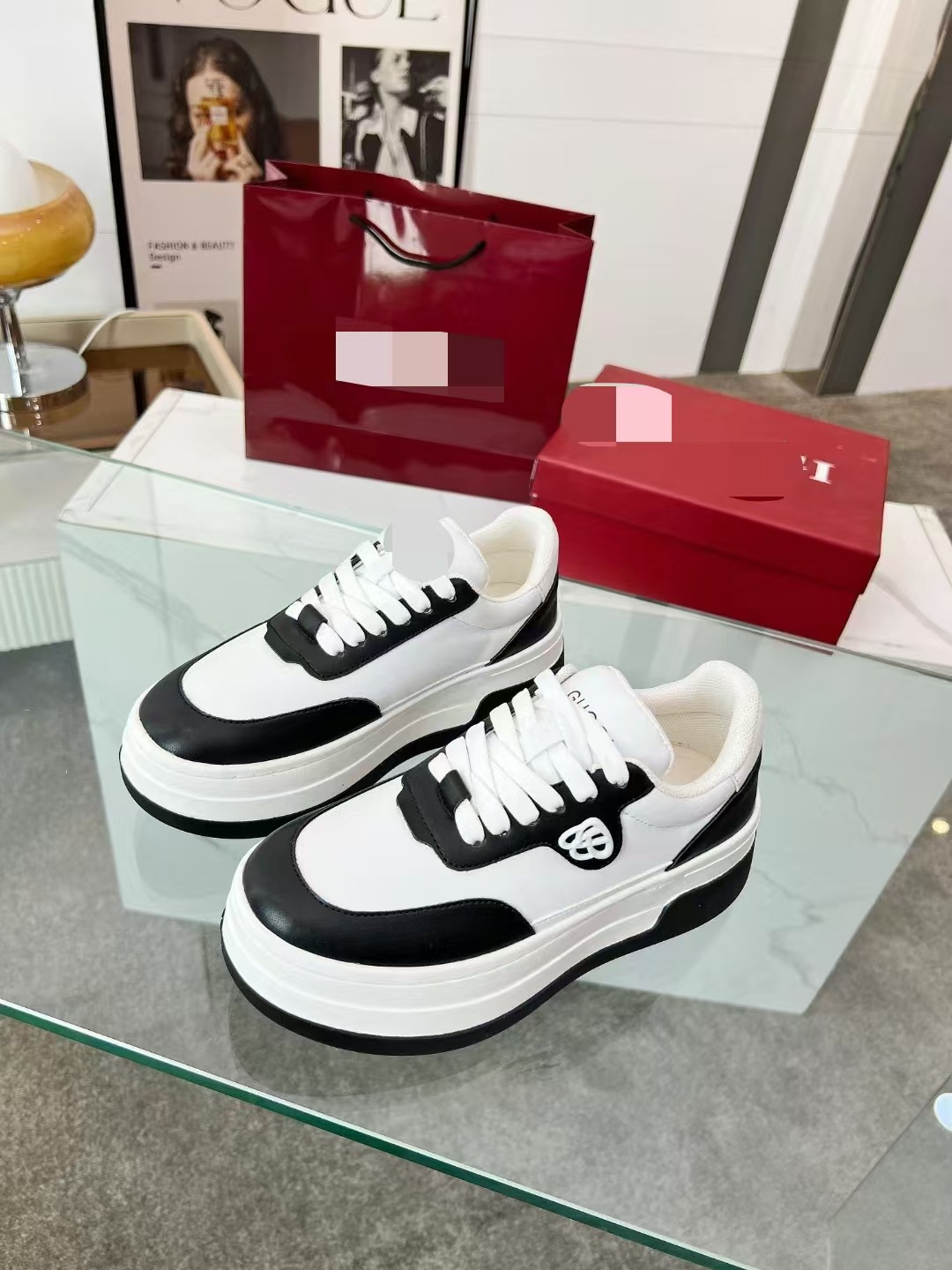 G Xiao White Shoes Женская Чжао Луси Та же модель толстой подошвы из натуральной кожи