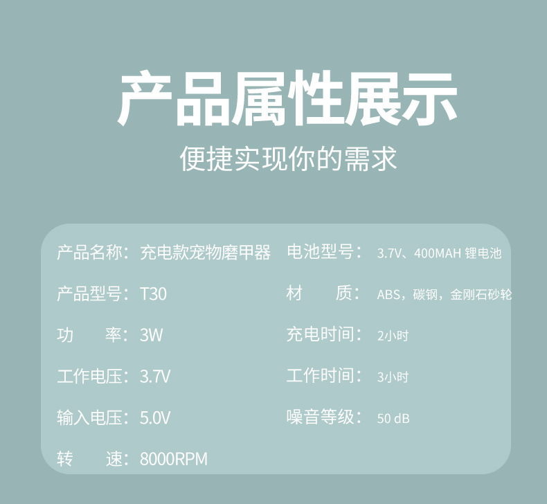 Полировщик для ногтей T30 для домашних животных (в комплект входит USB-кабель + чистящая щетка)