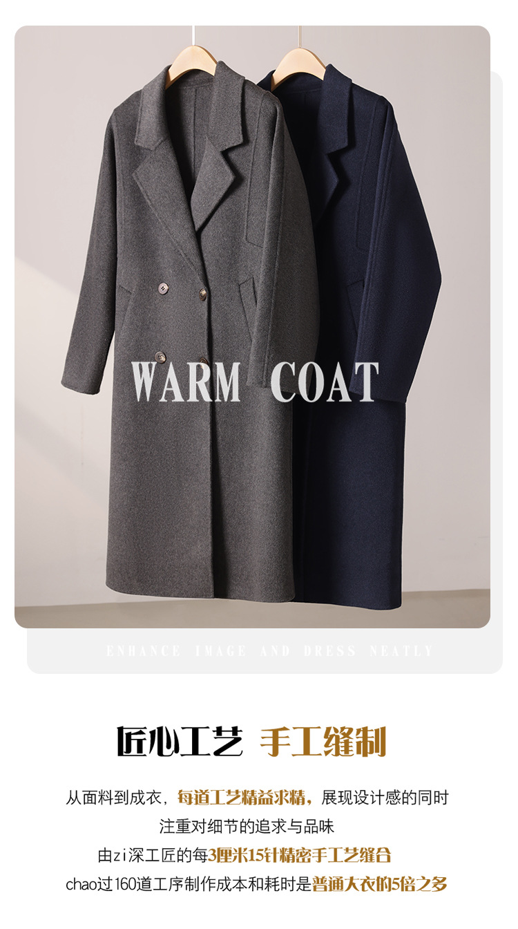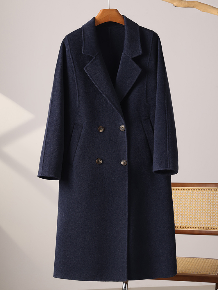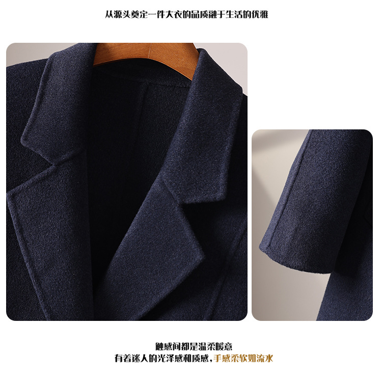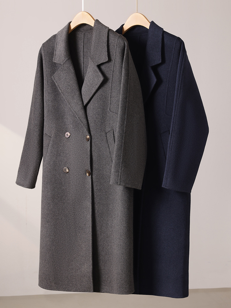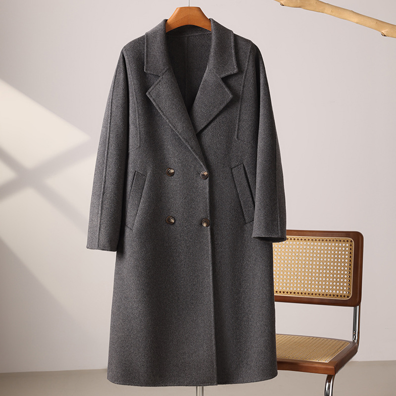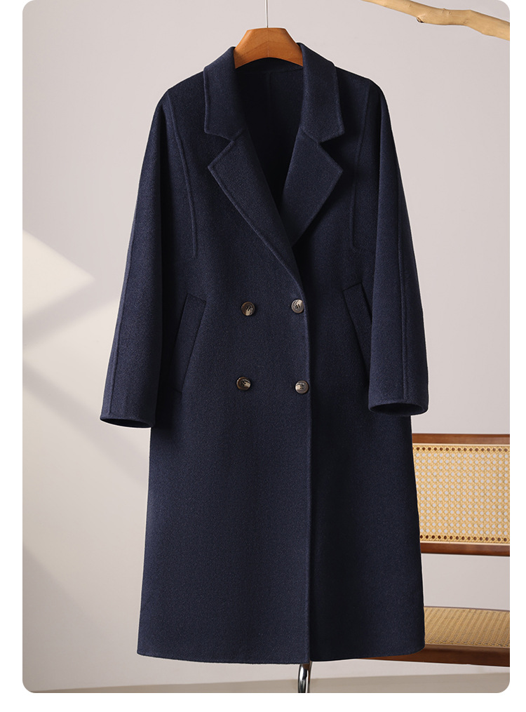 Осень и зима 10% кашемир + 90% шерстяной шерсти ручной работы двухсторонний длинный кашемировый пальто двубортный
