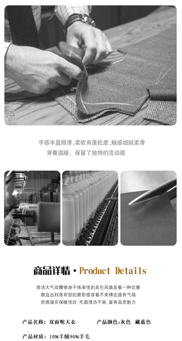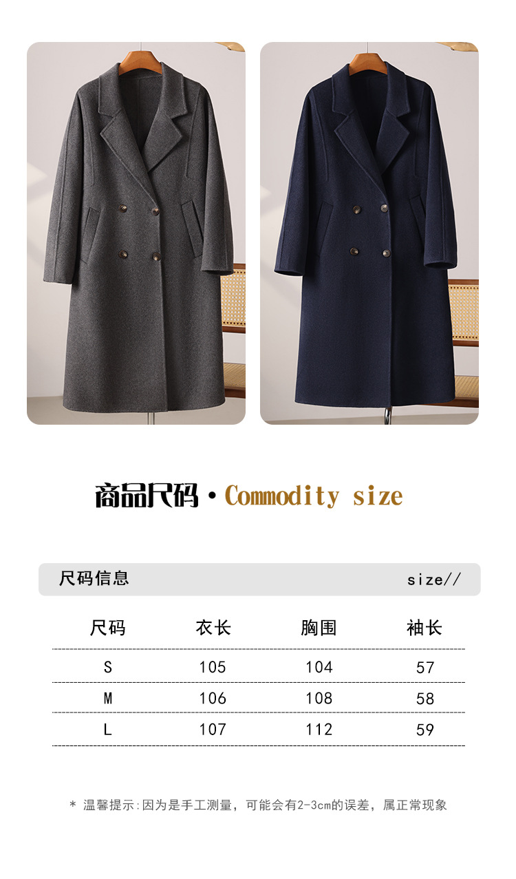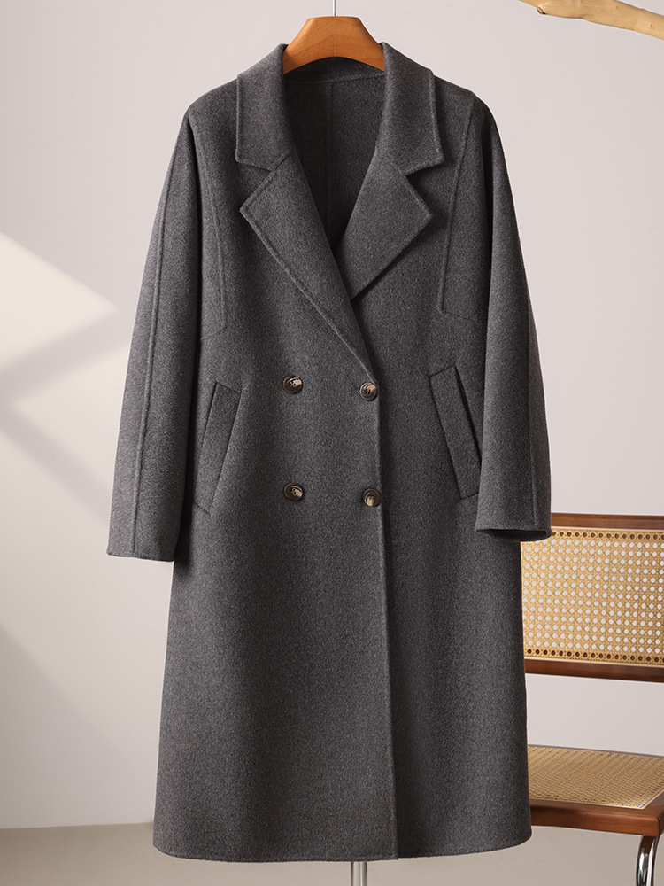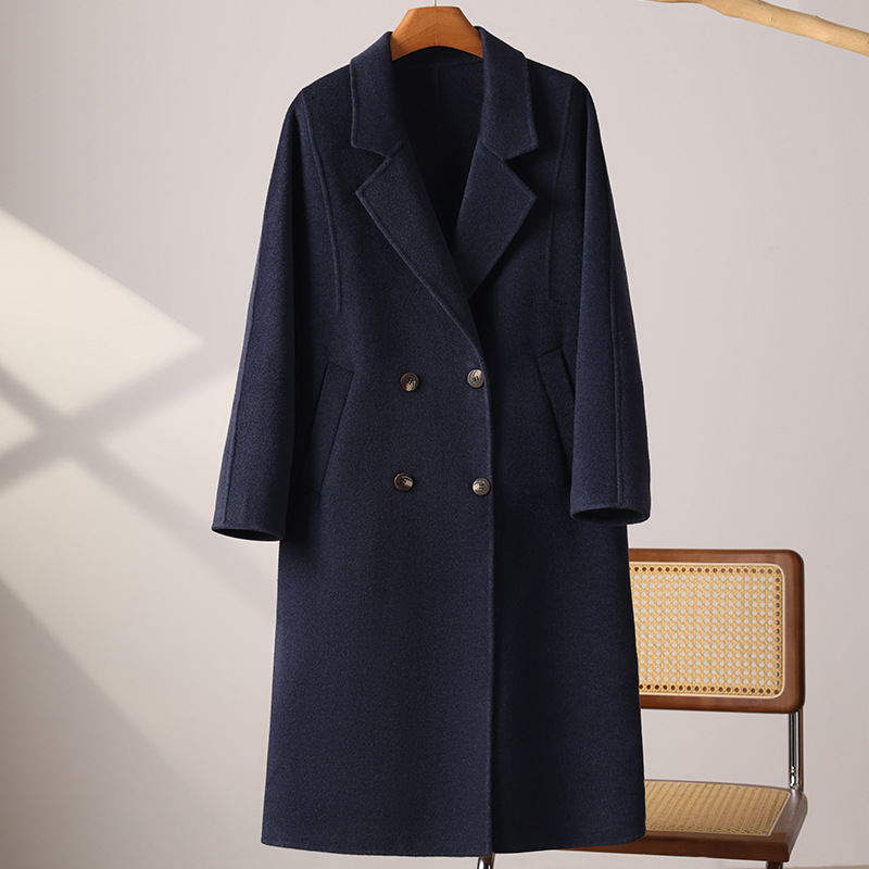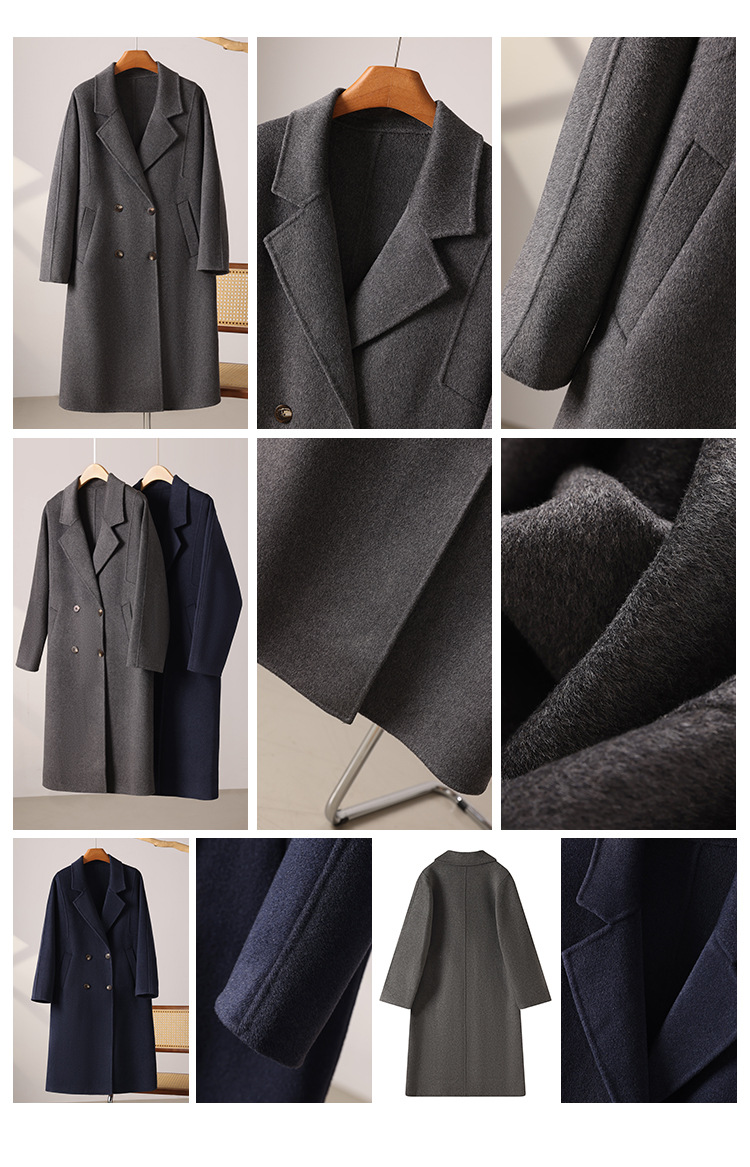 Осень и зима 10% кашемир + 90% шерстяной шерсти ручной работы двухсторонний длинный кашемировый пальто двубортный