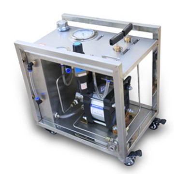气动脱模液压泵站的动力机:气动液压泵,是一种新型往复式气动泵,采用先导式气控配气换向装置。使气缸中的活塞作往复运动。气缸活塞的面积比液压缸中柱塞面积大,因此使油液增压。高压油经高压过滤器,进入手动换向阀。***通过快速接头与脱模液压油缸连接实现脱模工作。