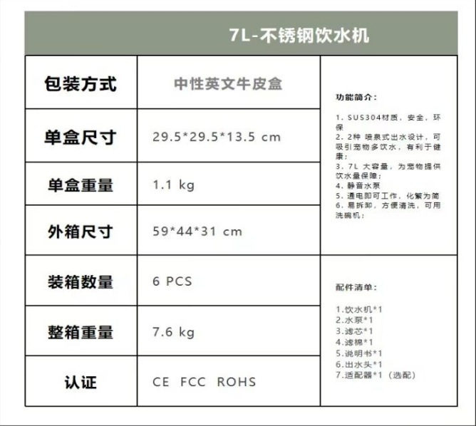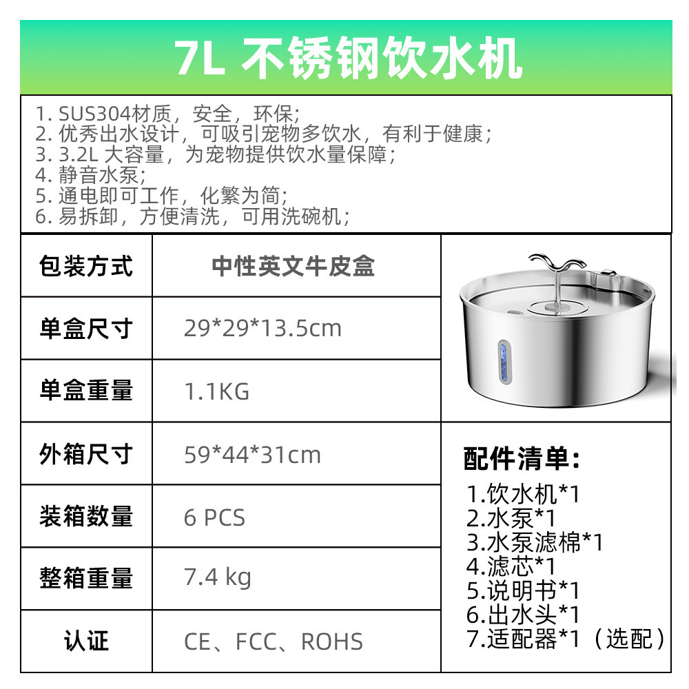 7L питатель воды для домашних животных из нержавеющей стали кормушка для кошек собаки поилка для воды Amazon