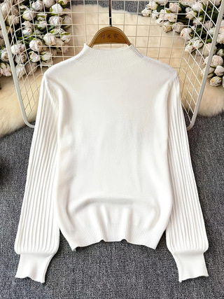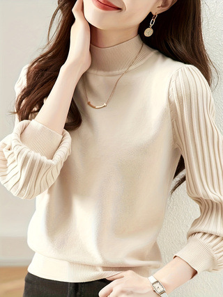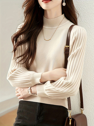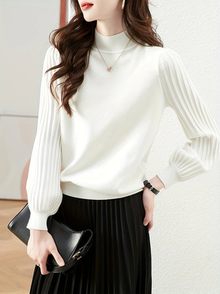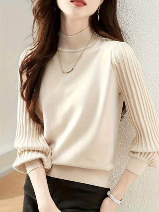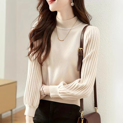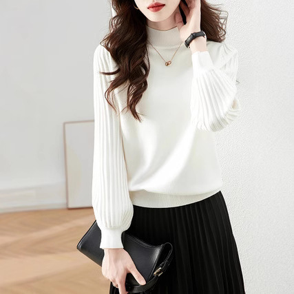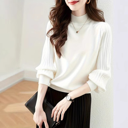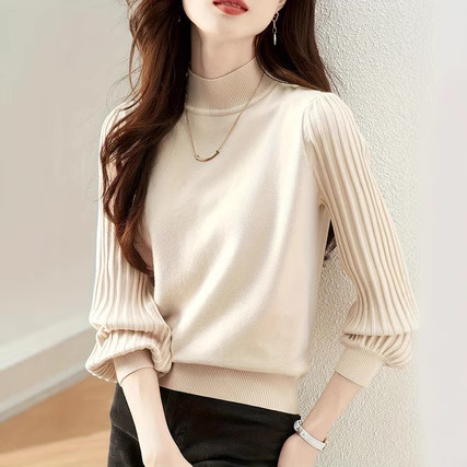 2024 новый полувысокий воротник темпераментный свитер женский осенний и зимний сшивание высокого уровня чувство свободного чехла с вязаной нижней рубашкой