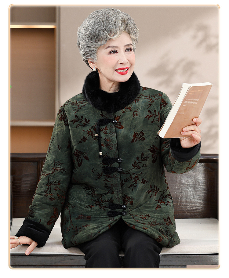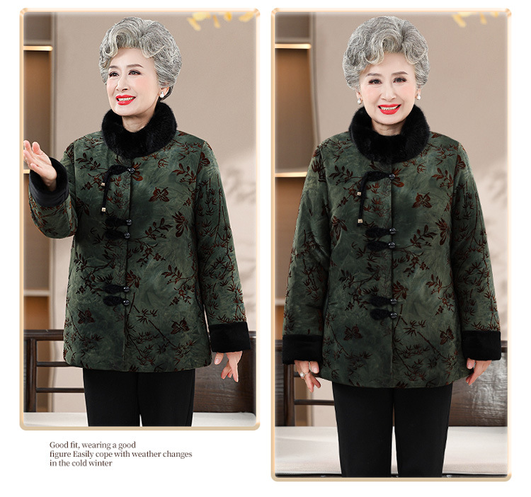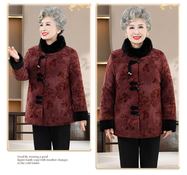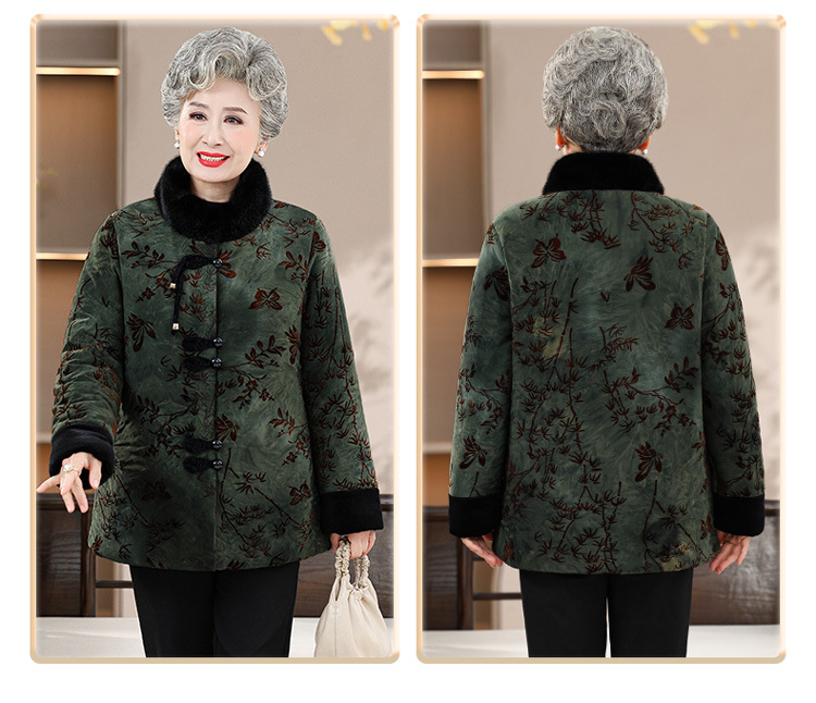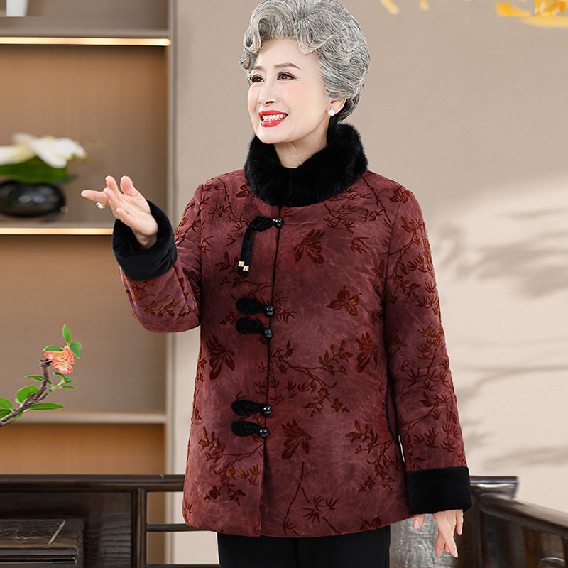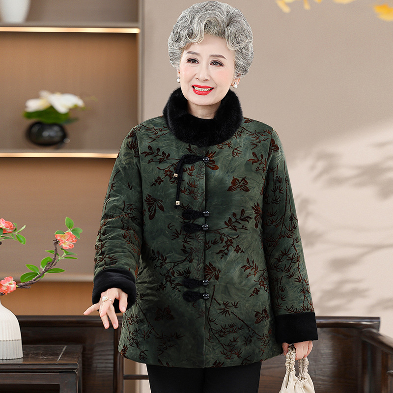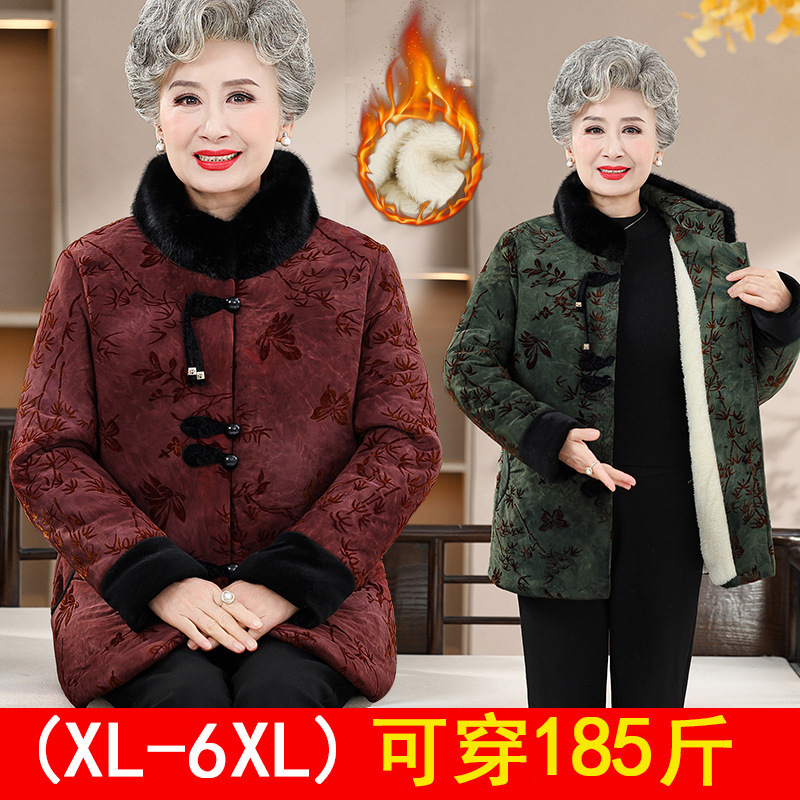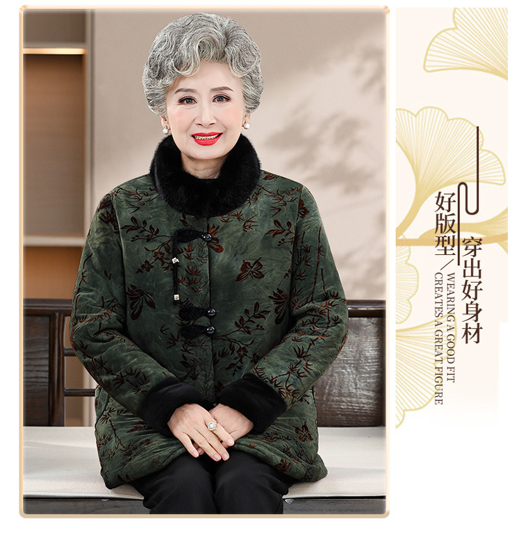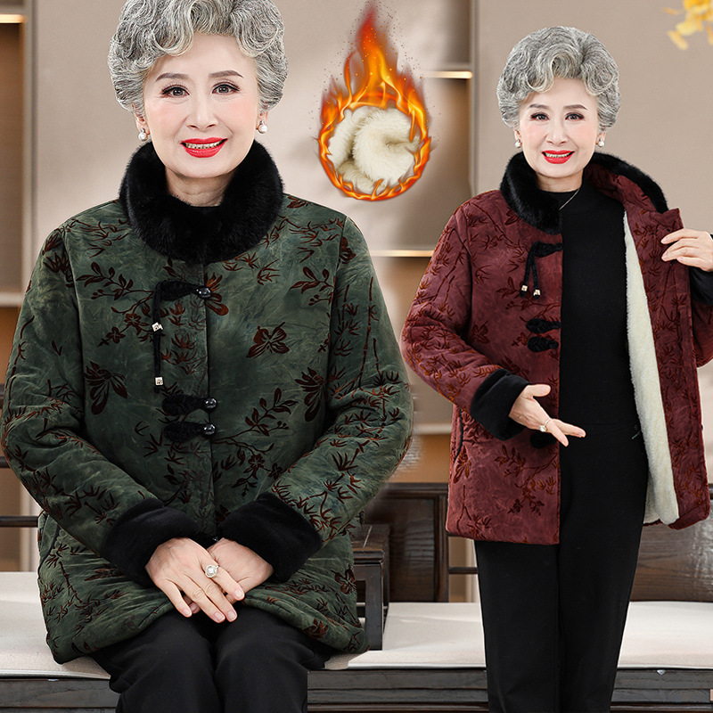 Среднее и старое зимнее платье бабушки хлопчатобумажная куртка плюс бархатная хлопчатобумажная куртка новая пожилая мама Тан толстая хлопковая куртка большого размера
